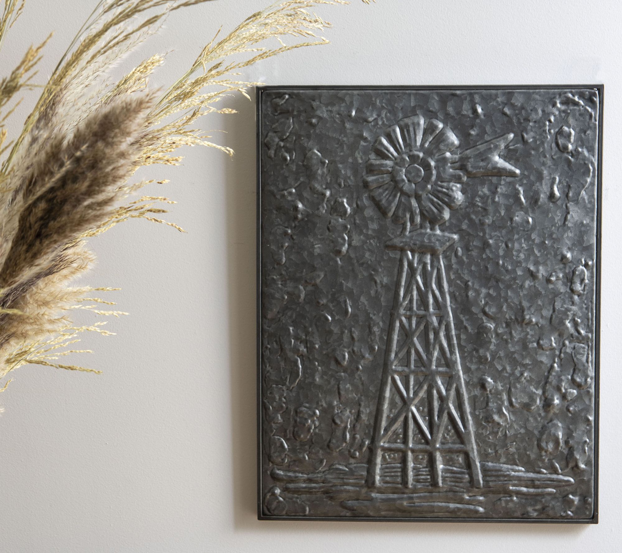 Add a rustic element to your wall display with this galvanized wall art designed to pop against light-colored walls. From Foreside Home & Garden.