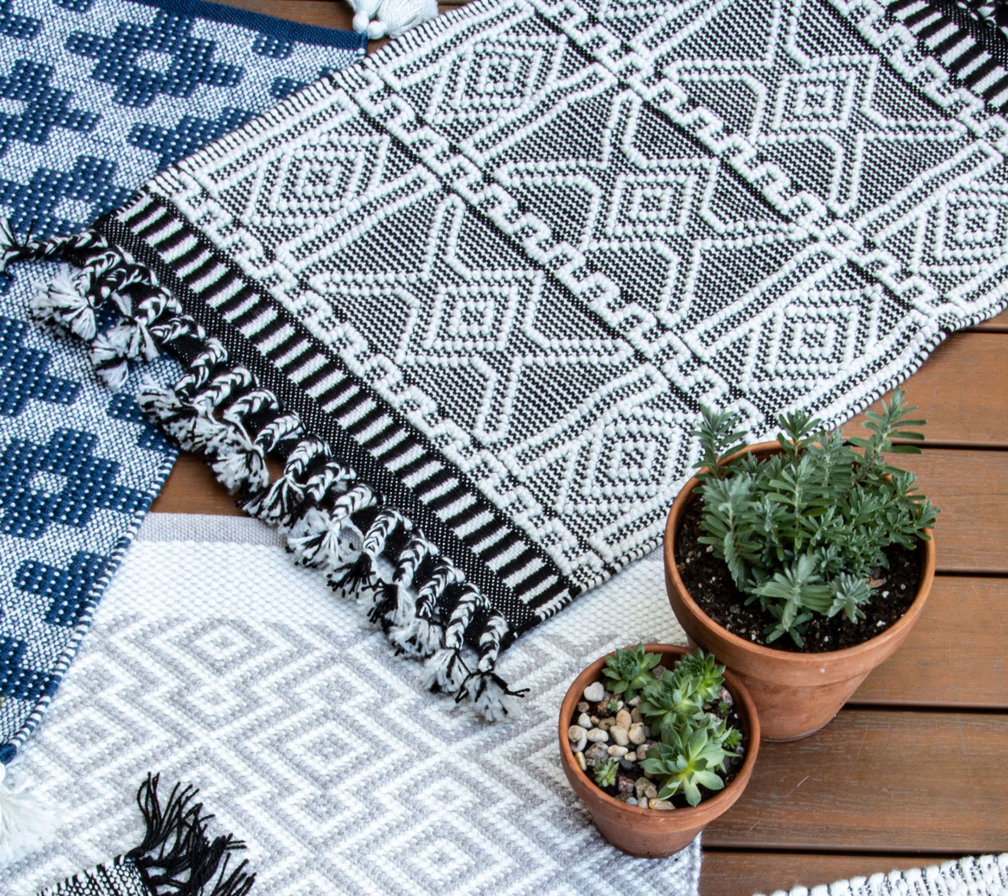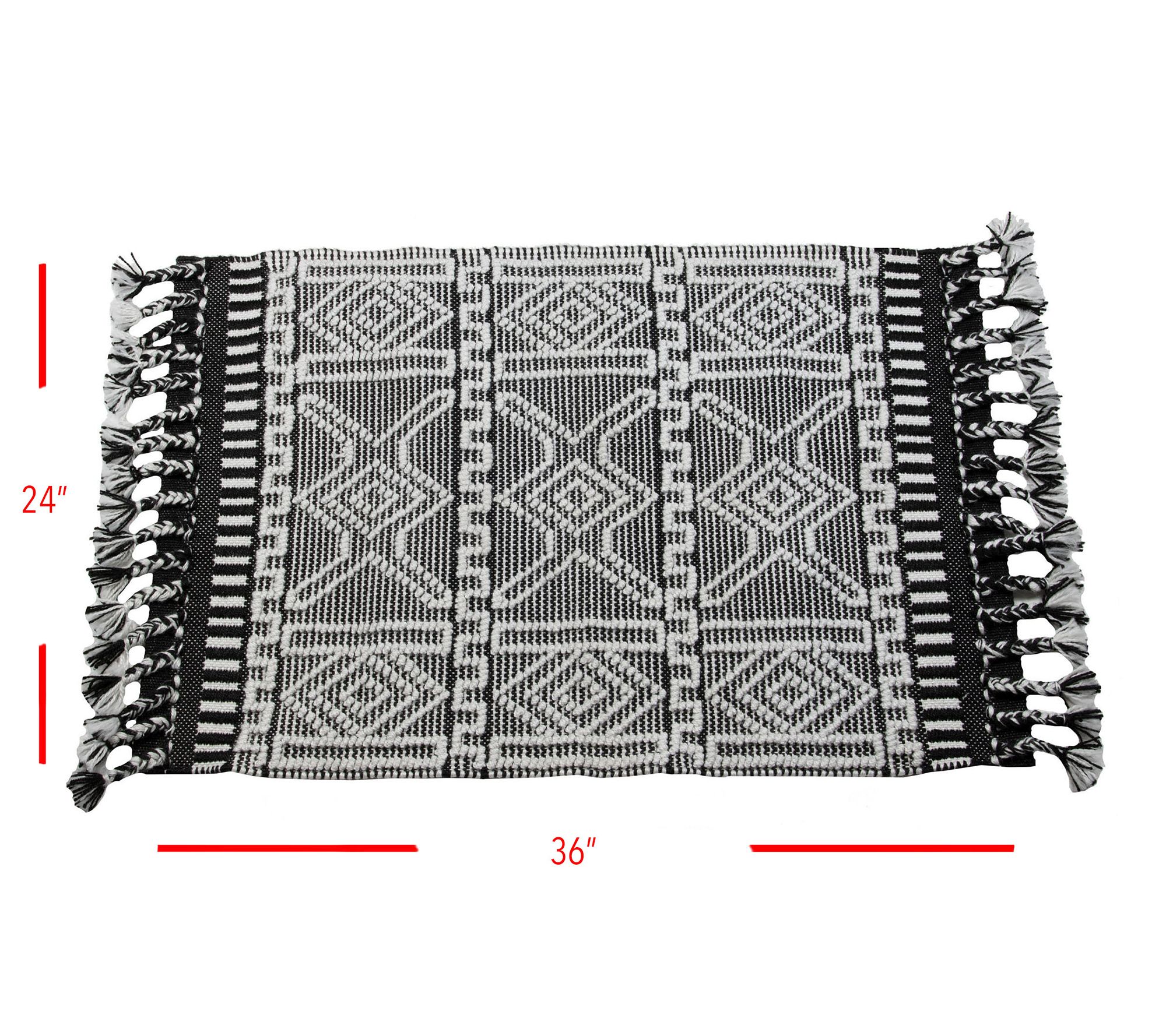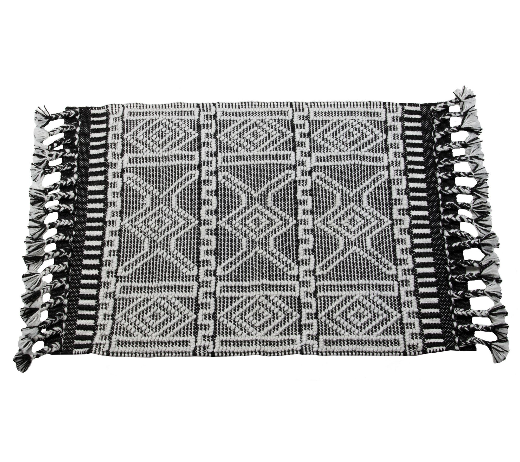 Invite modern appeal to your home with this boldly-designed Rocco rug. It features a raised woven pattern inspired by Kilim style and braided tassels for added interest and texture. From Foreside Home & Garden.