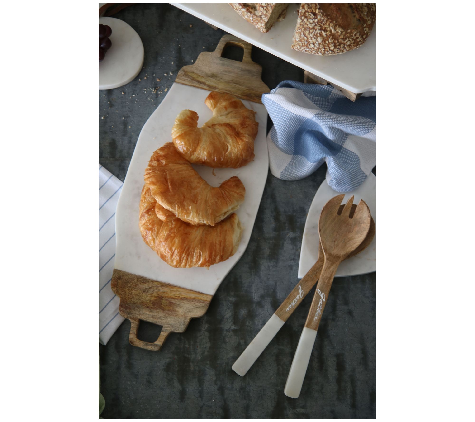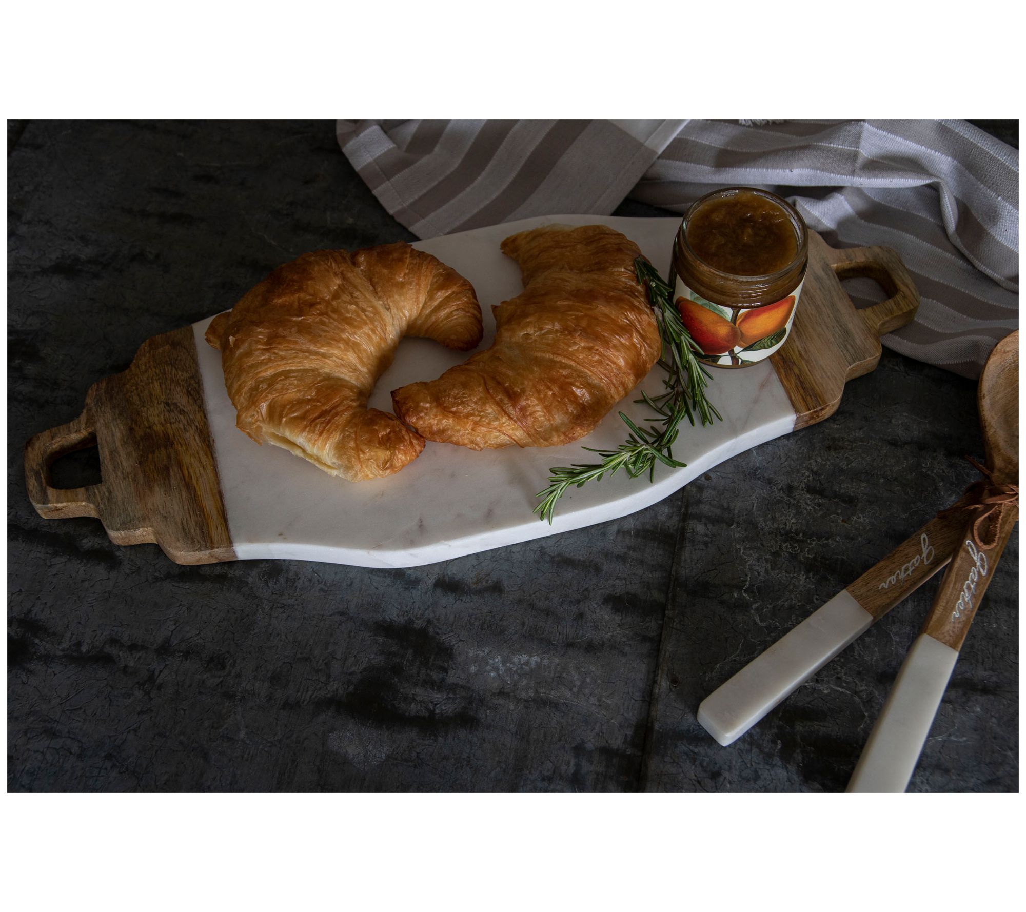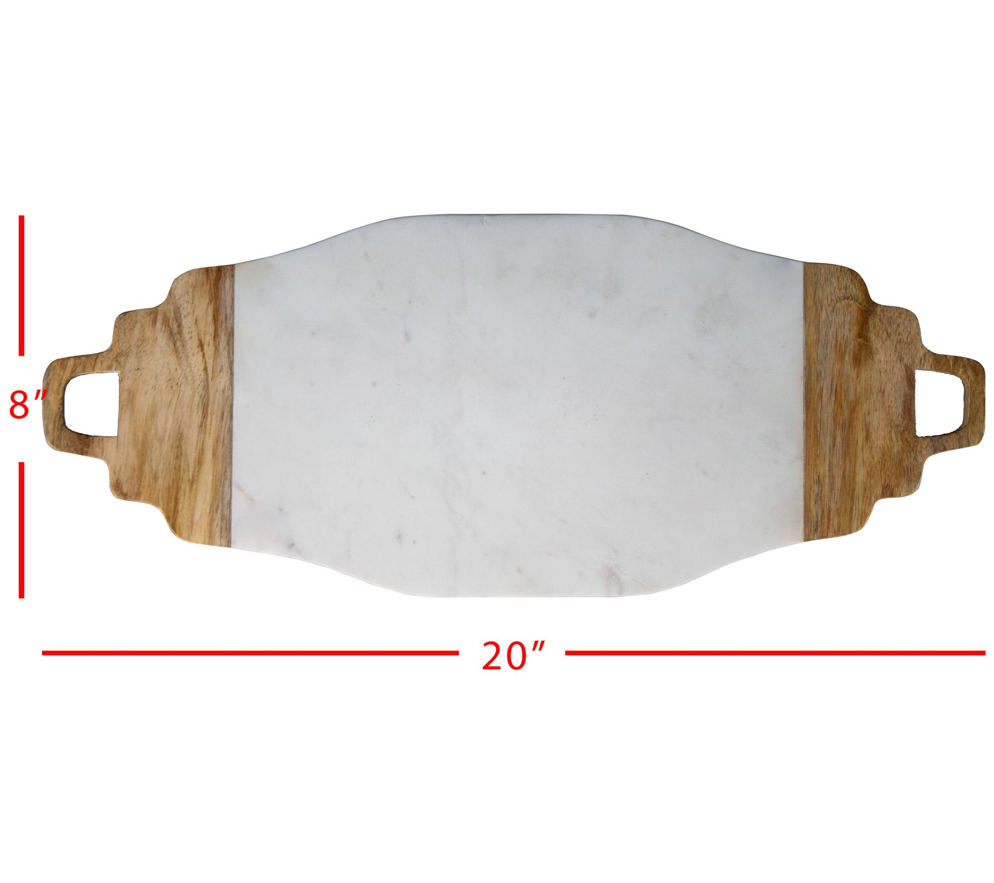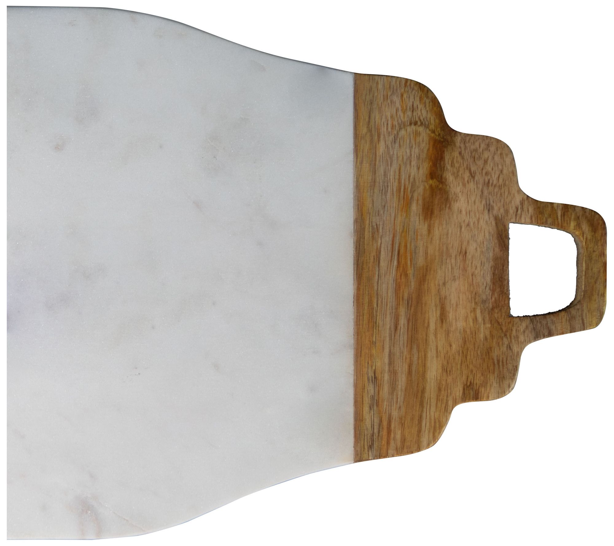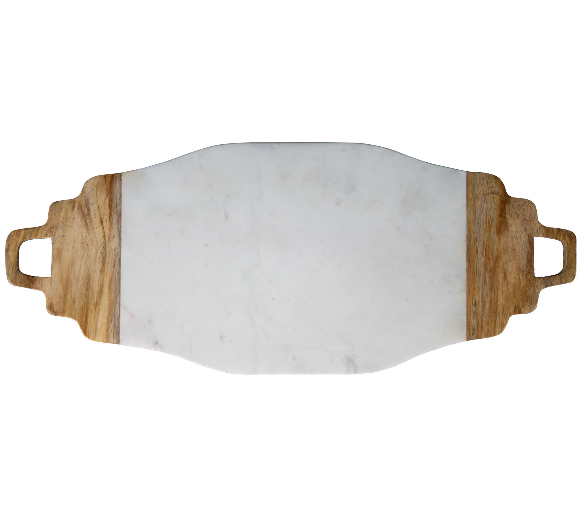 The perfect combination of functional and beautiful, this marble and mango wood serving board is an elegant piece that will enhance your table setting. From Foreside.