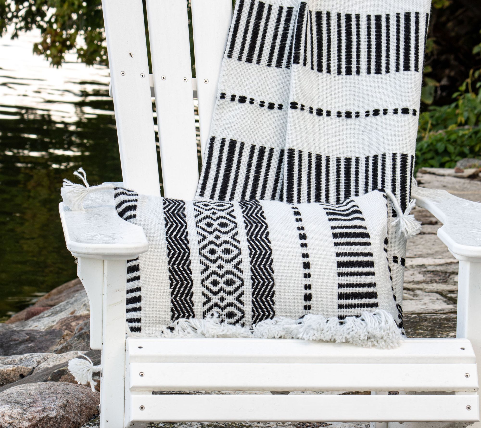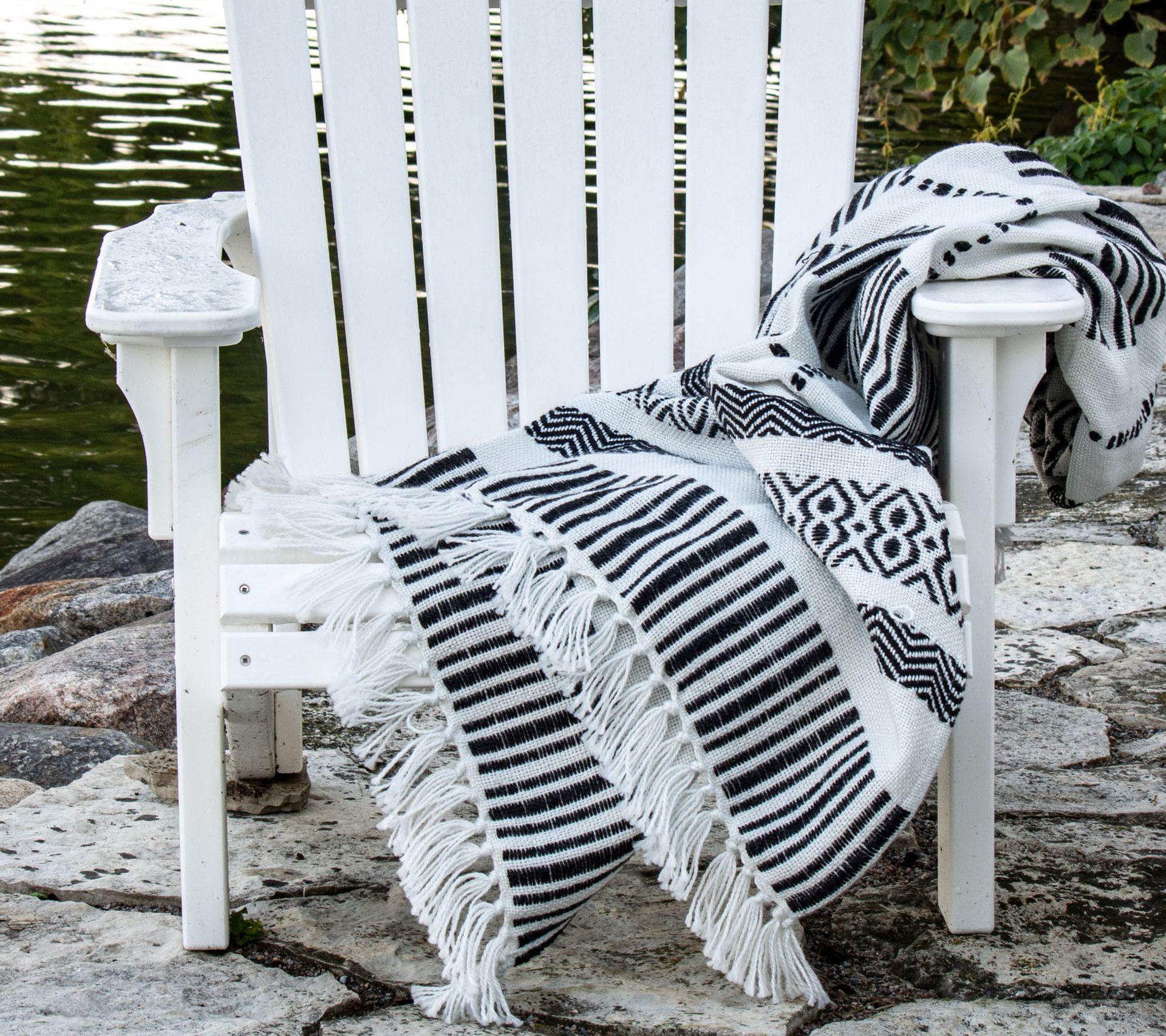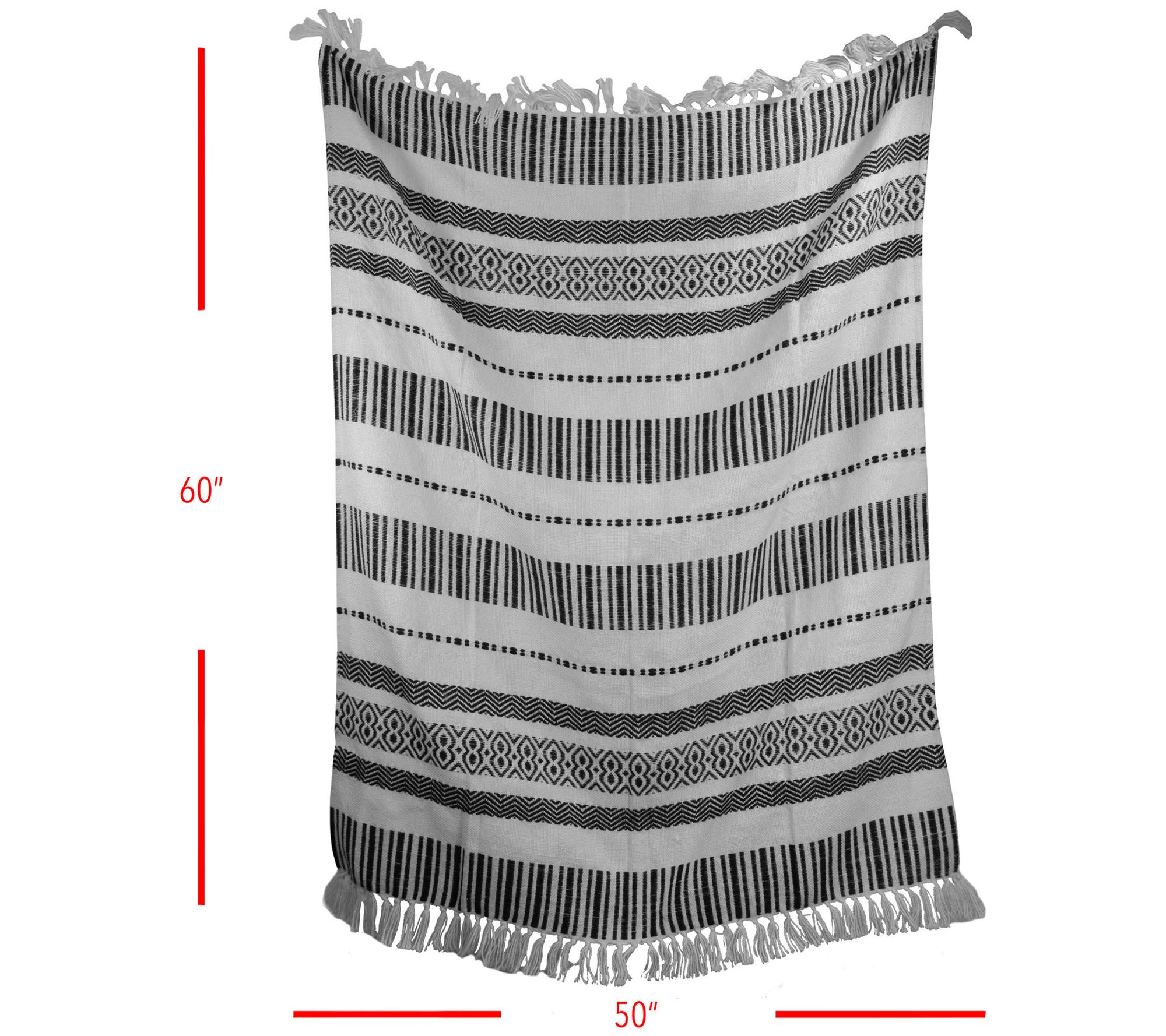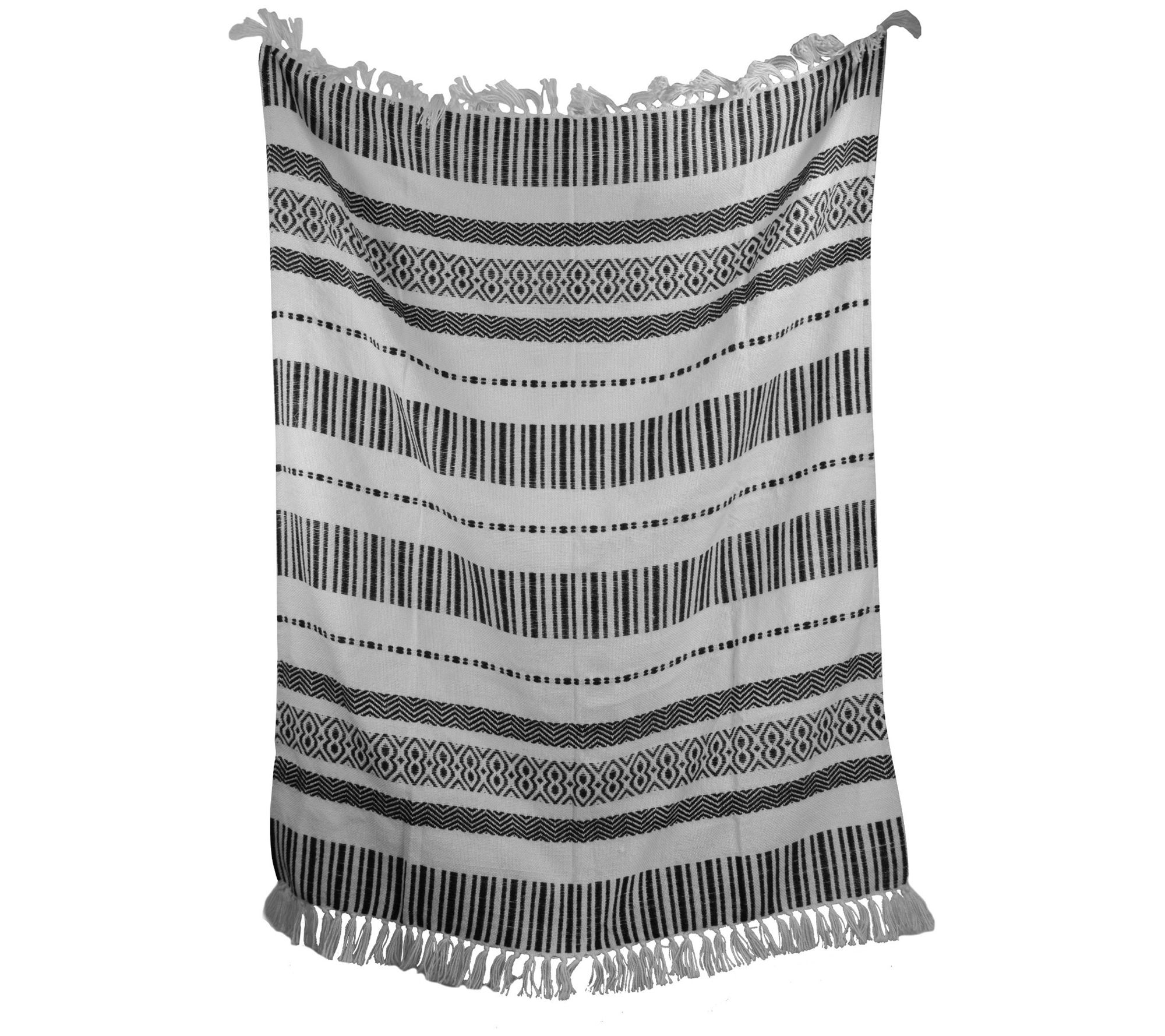 Tossed over the couch or draped around your shoulders, this modern boho throw makes a chic style statement. Tassels and patterns add visual interest while the durable craftsmanship takes it effortless from indoors to out. From Foreside Home & Garden.
