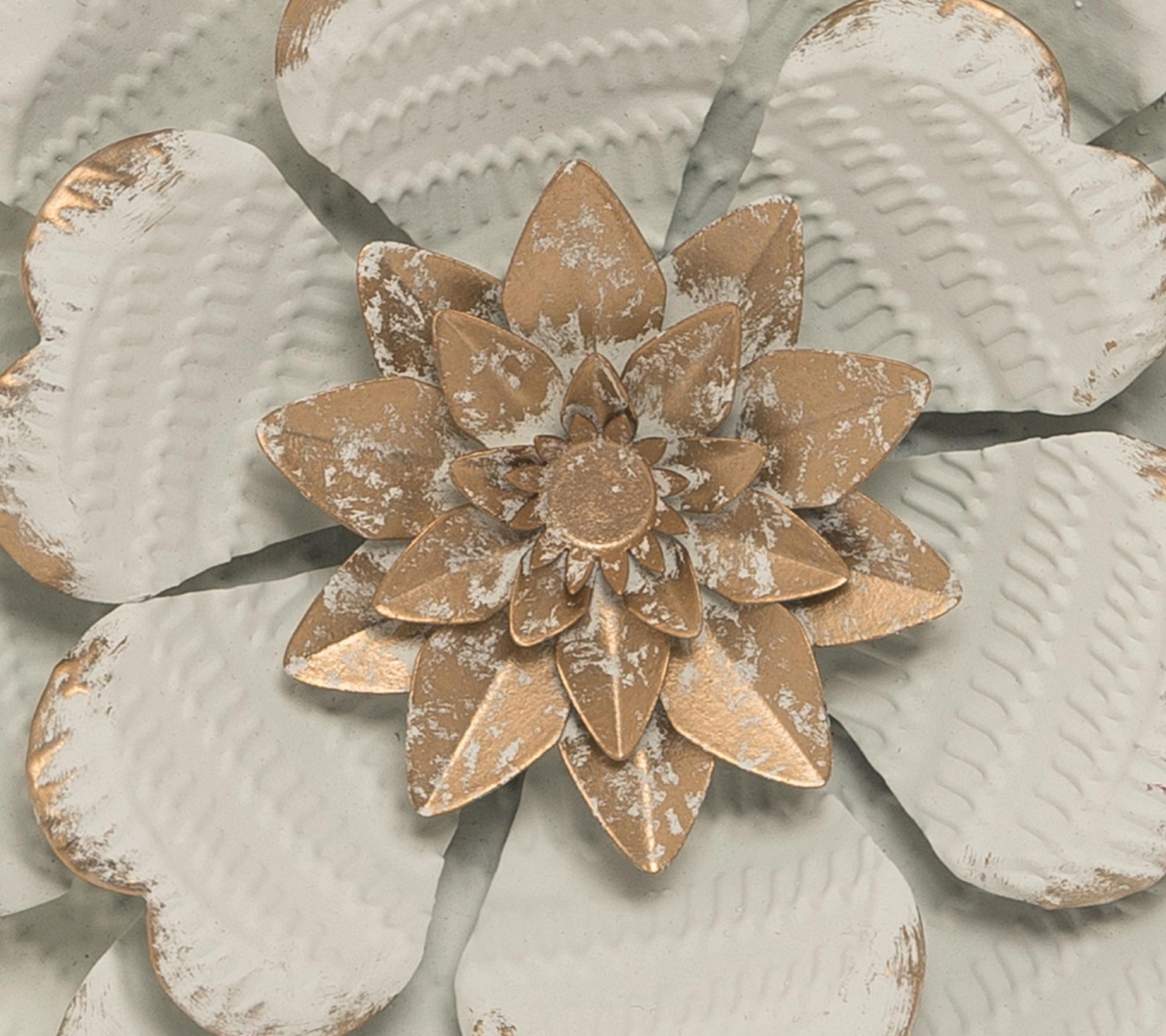 Decorate your walls with the large country wall flower. Exceptionally crafted of burlap and metal, this captivating creation brings a bright and lively atmosphere to any room. From Foreside Home & Garden.