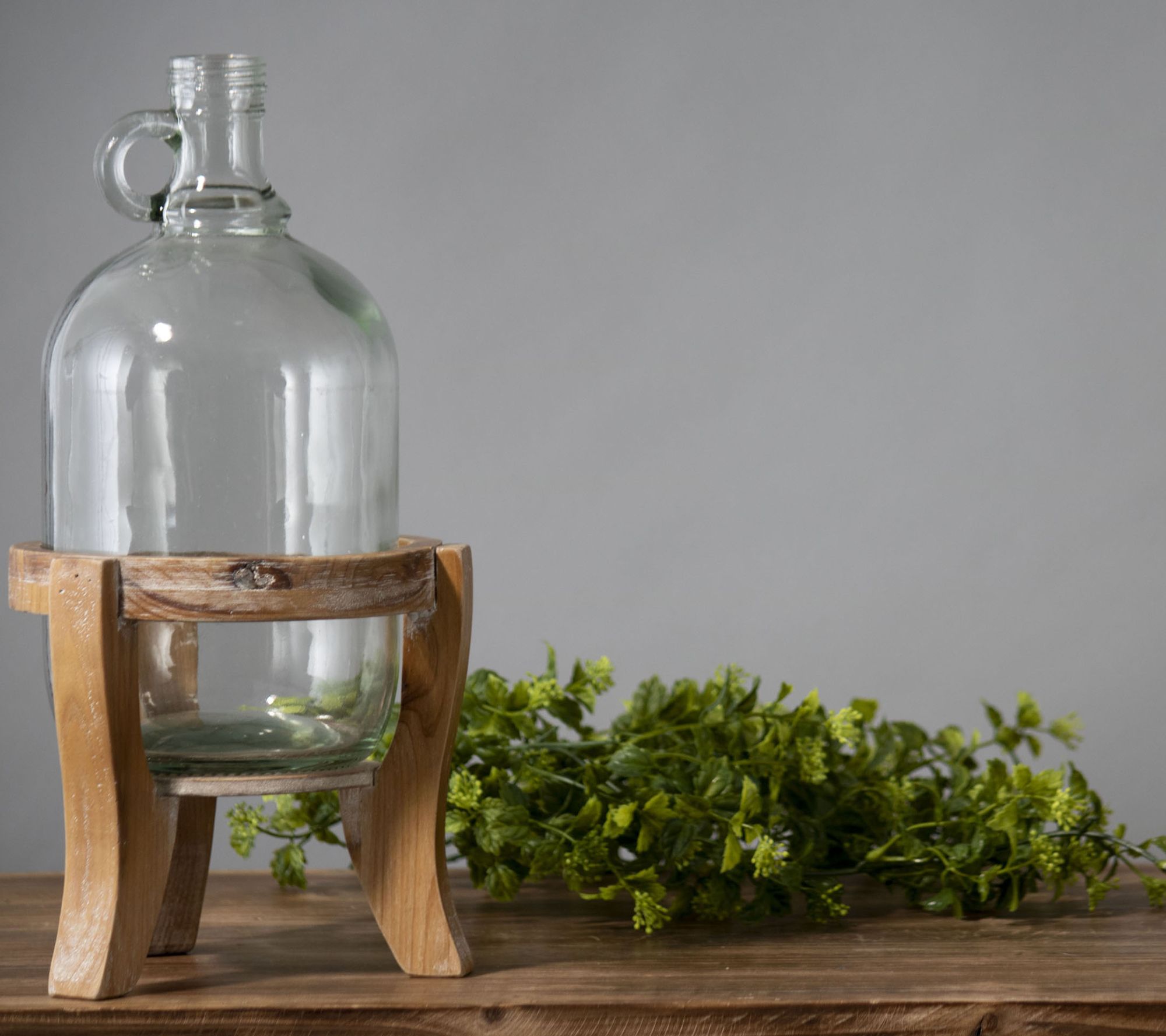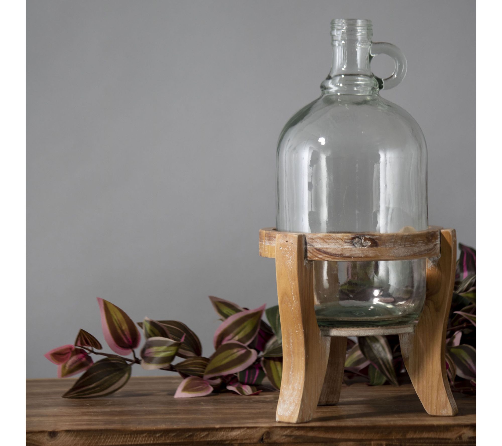 Foreside Home & Garden Glass Growler Vase w/Natural Wood Stand