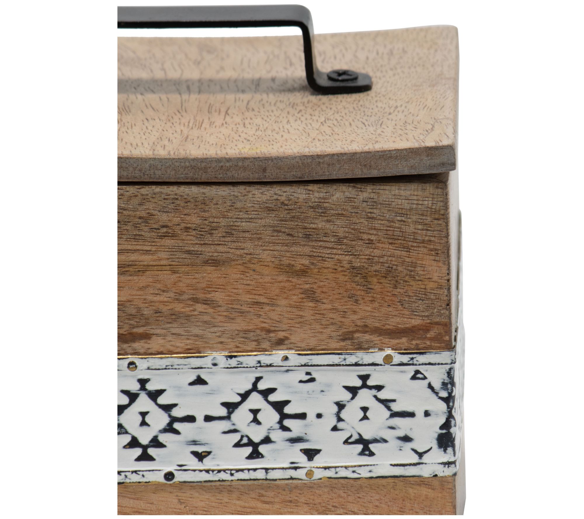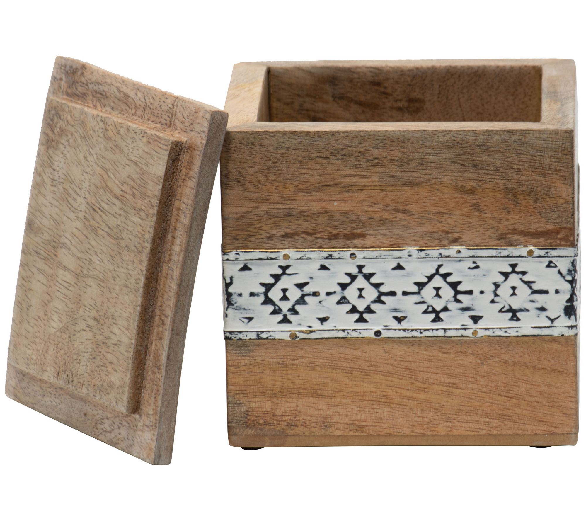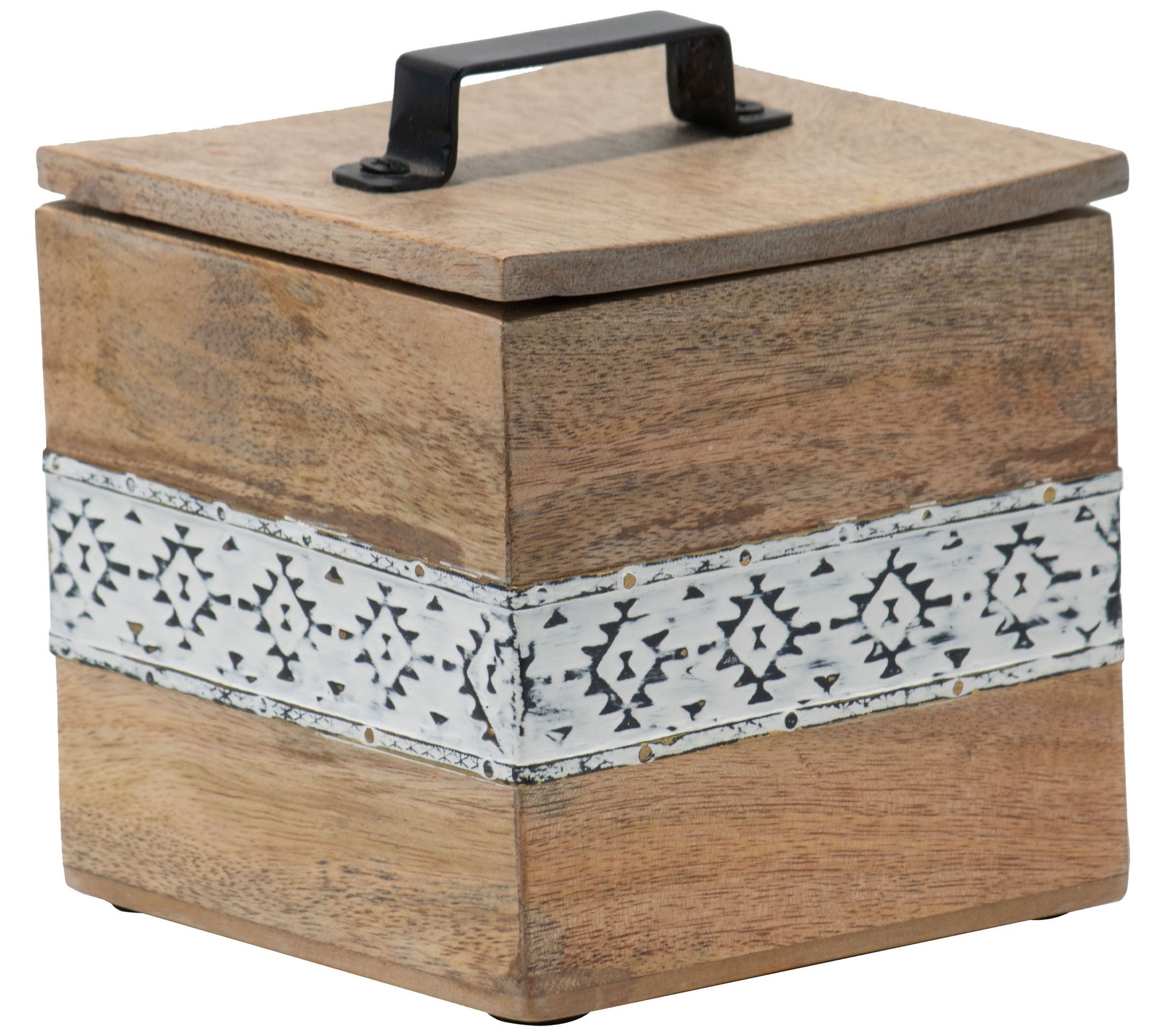 Accent your table or dresser in Southwestern-inspired style with this Amos trinket box. Crafted from rich mango wood with a metal-clad wrap and gold specks, it beautifully holds jewelry or other small items. From Foreside Home & Garden.