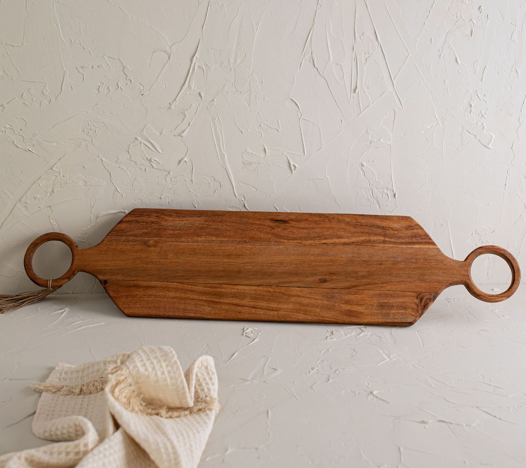 Add boho chic to your home's aesthetic with this acacia wood serving board. From Foreside Home & Garden.