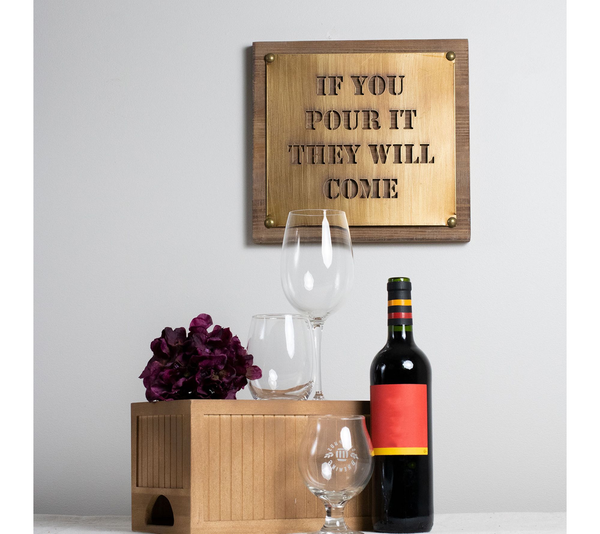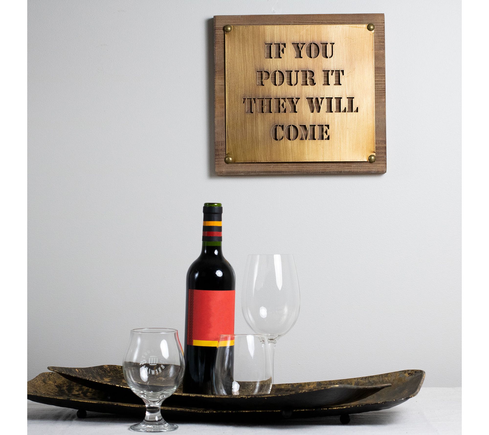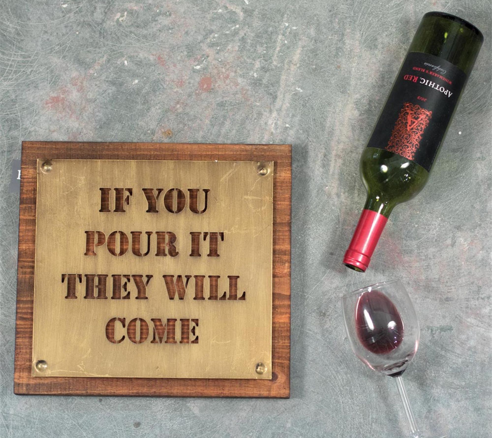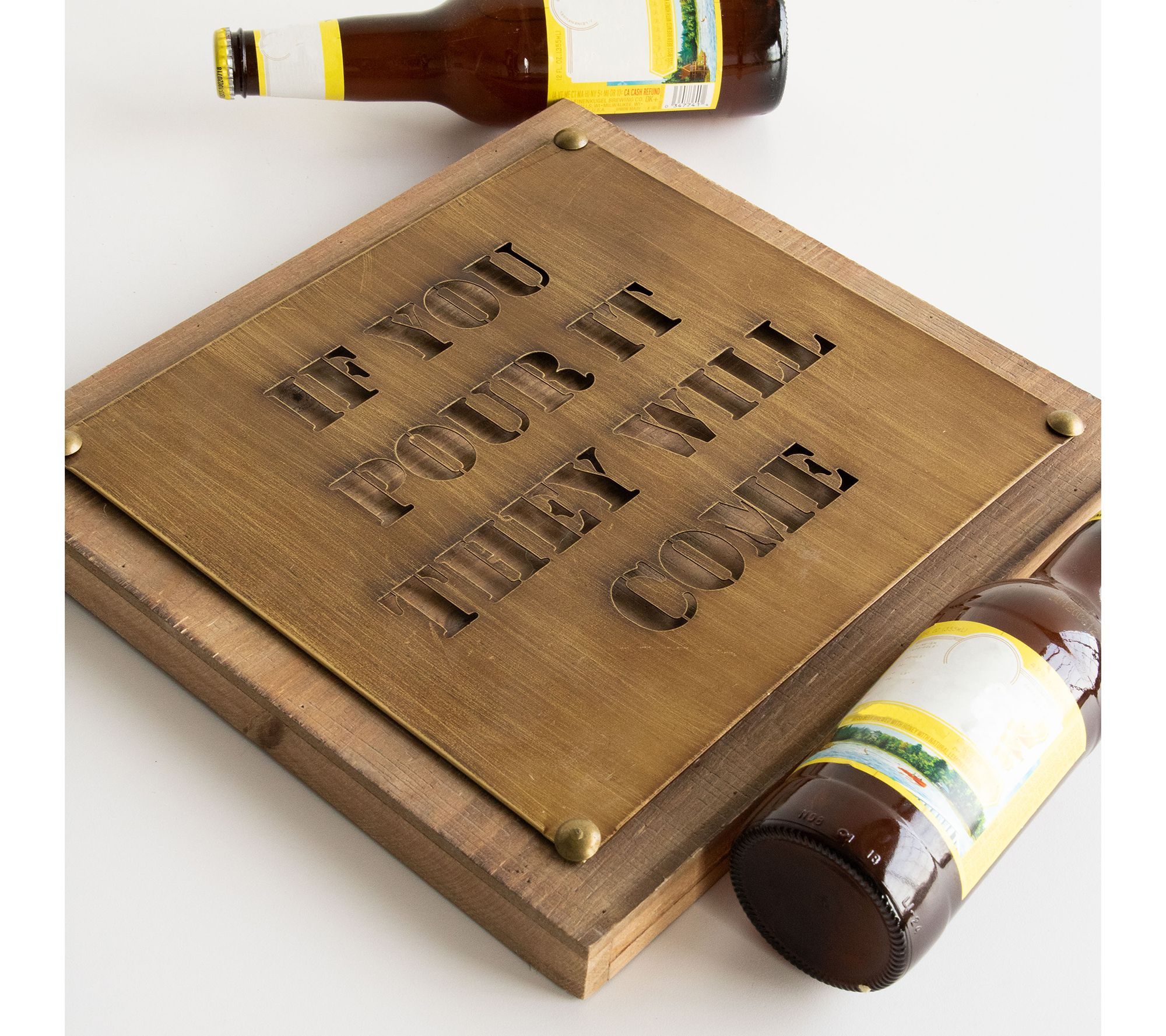 • "If You Pour It They Will Come" laser-cut into metal