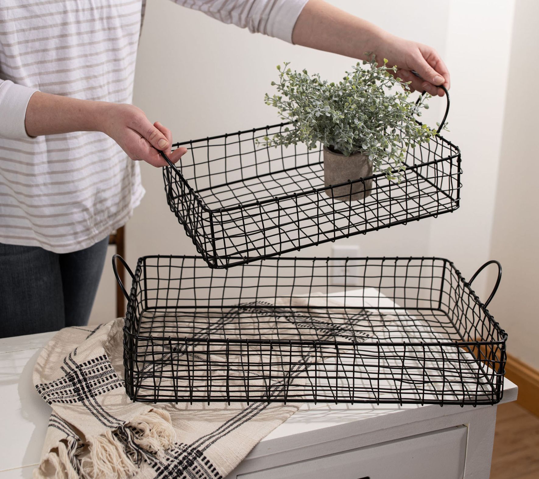 These wire basket trays upgrade your bread and pastry presentation with a country-chic design made from metal. Foreside Home & Garden.
