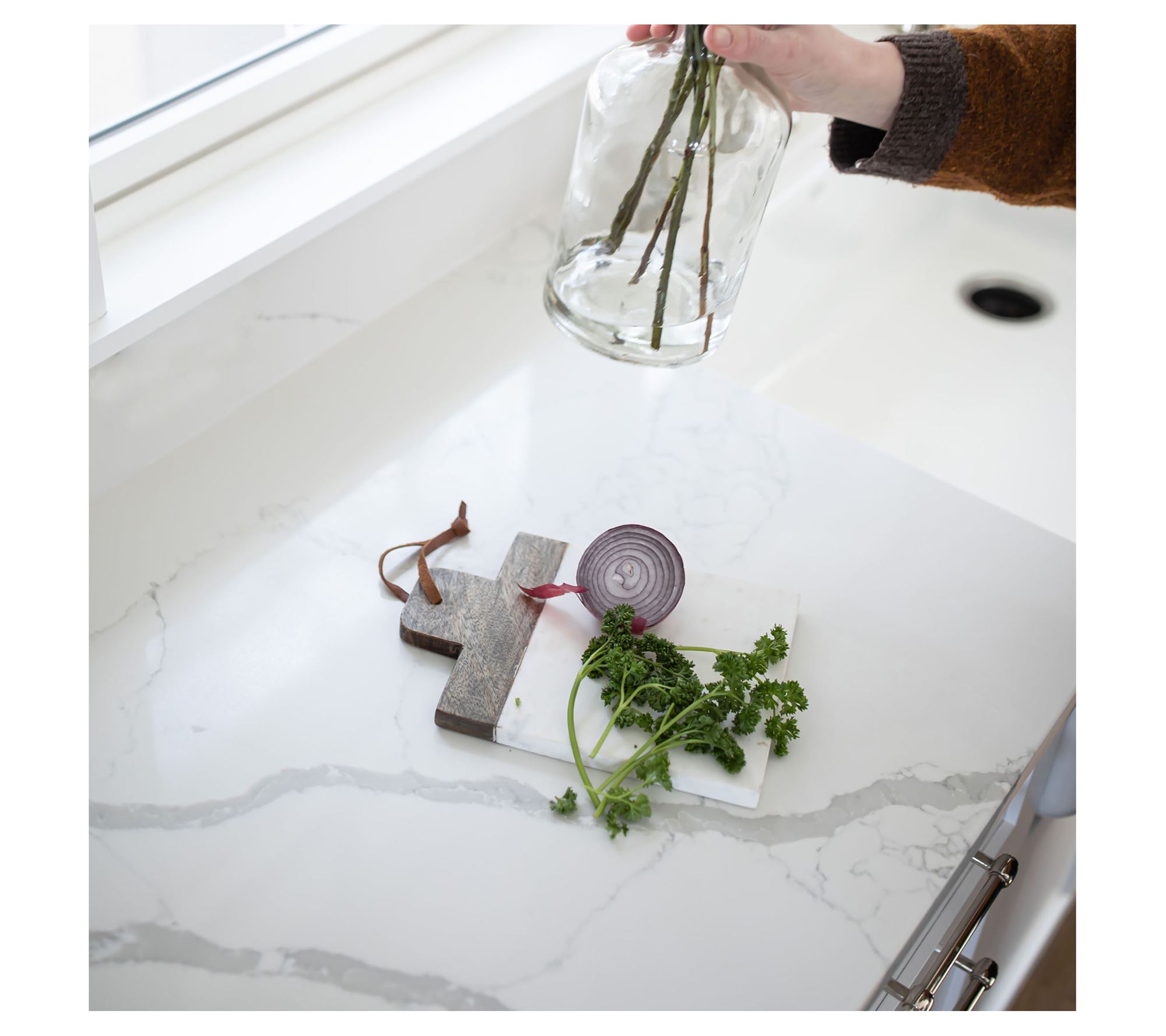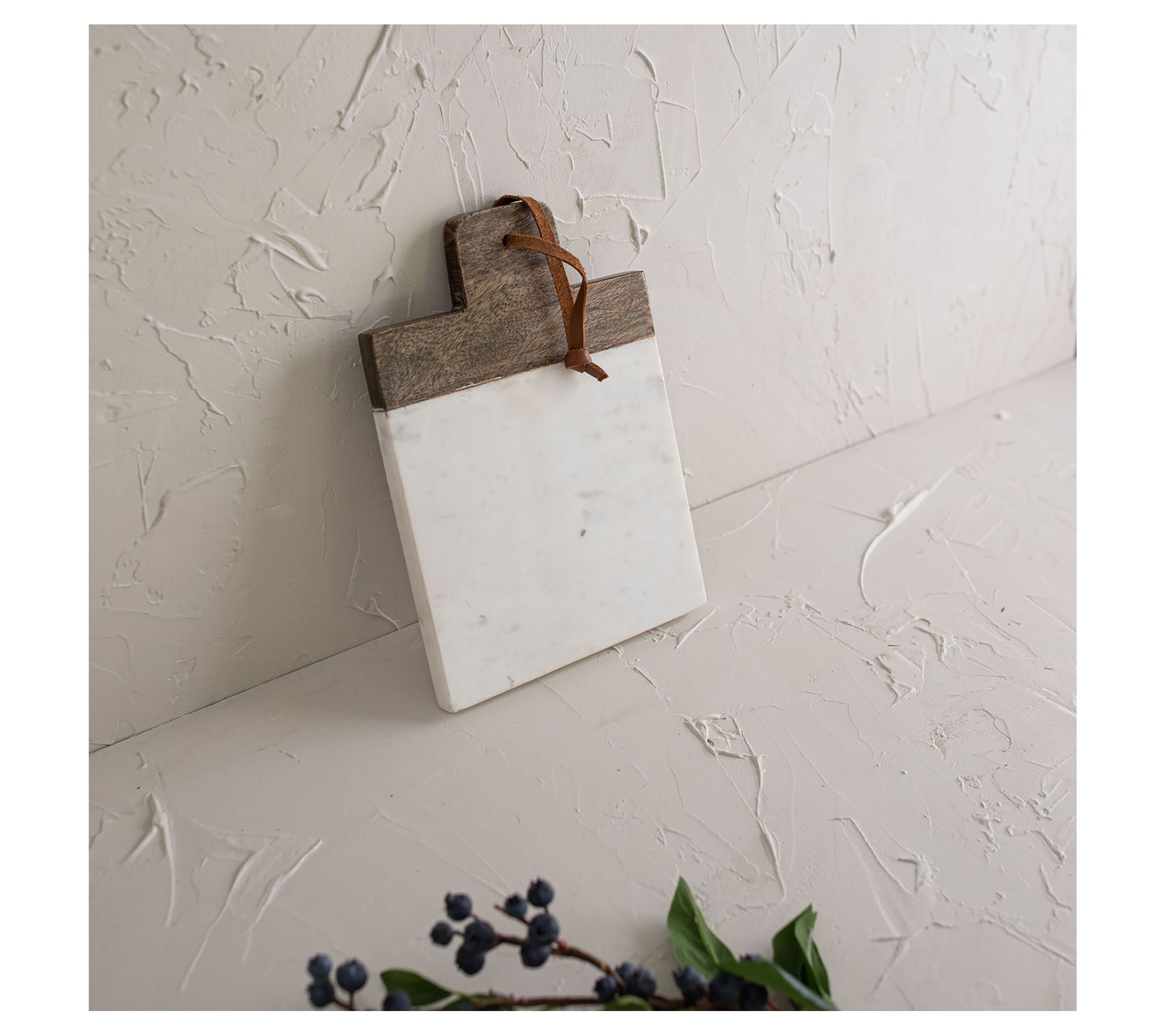 This wooden and marble cutting board brings beautiful Boho-style decor to your kitchen. From Foreside Home & Garden.