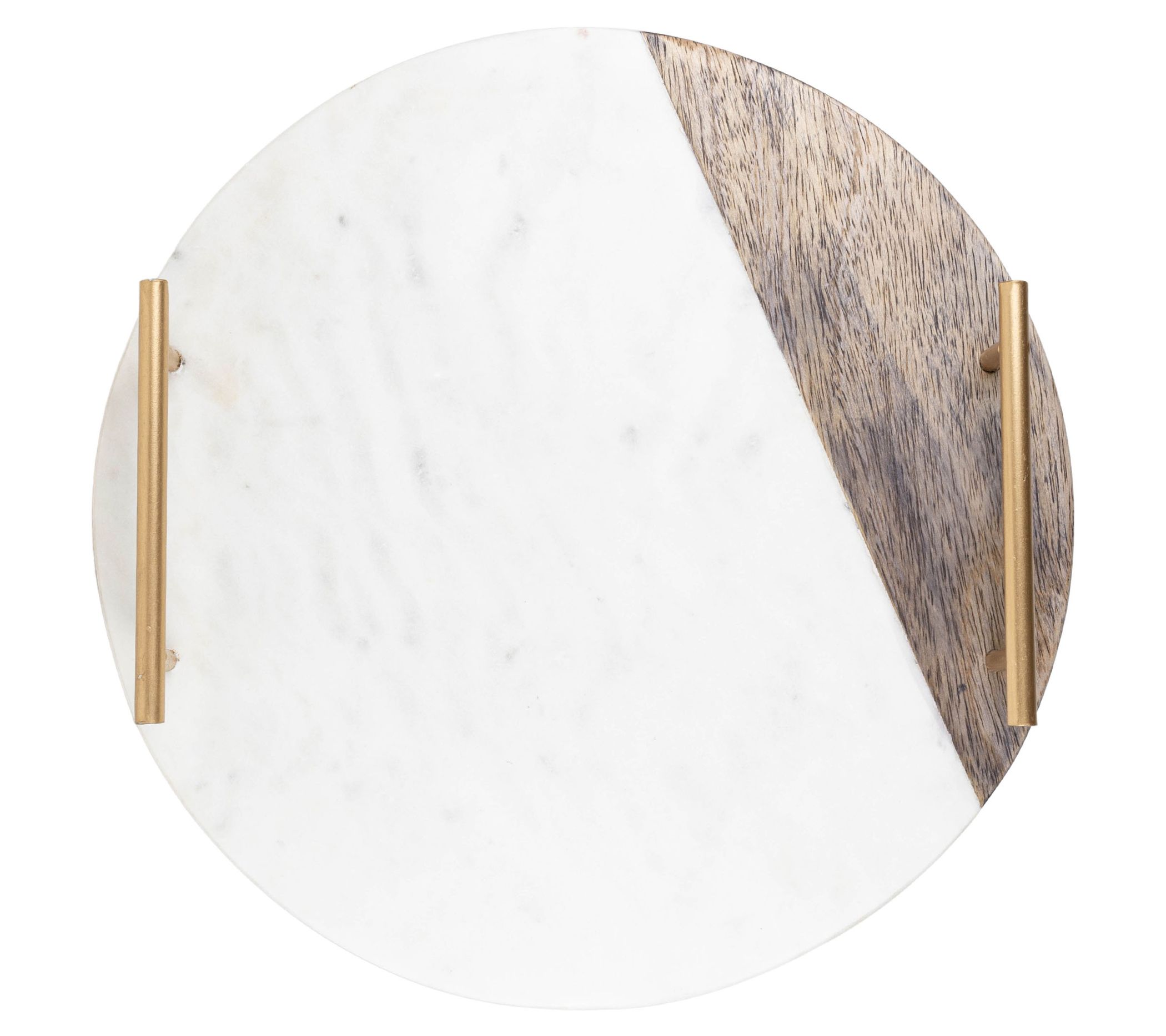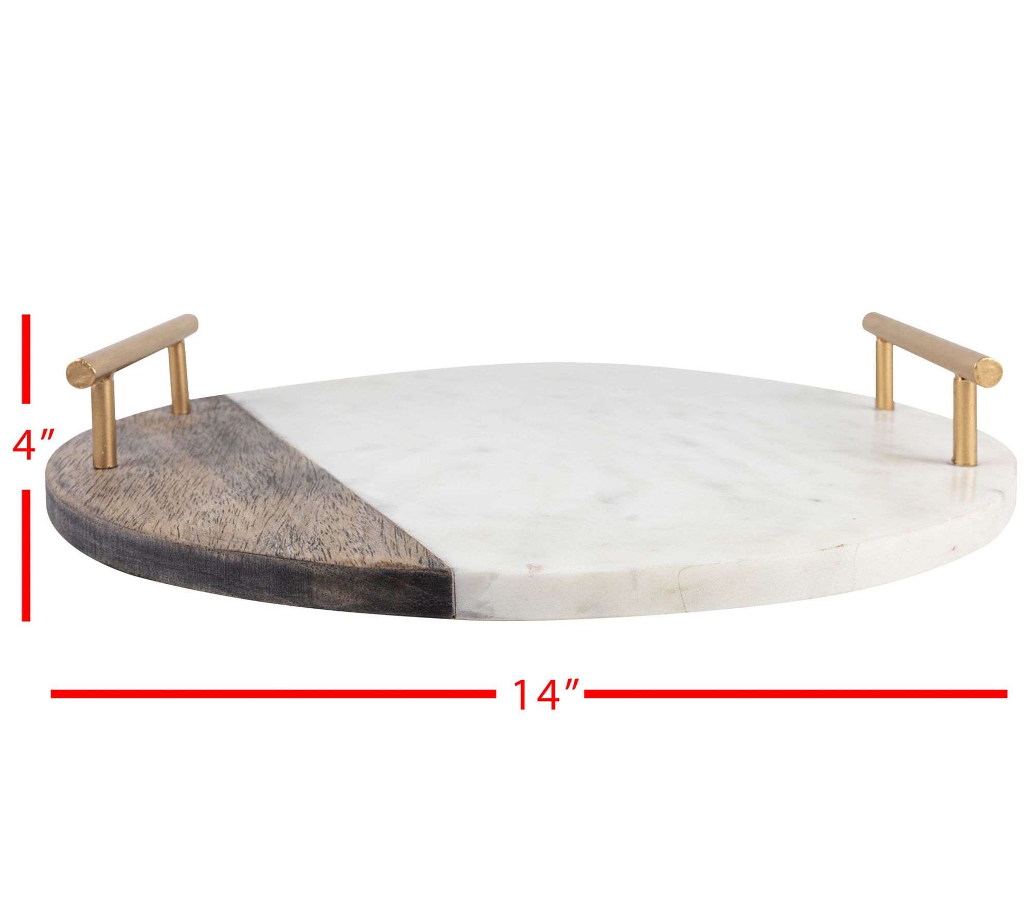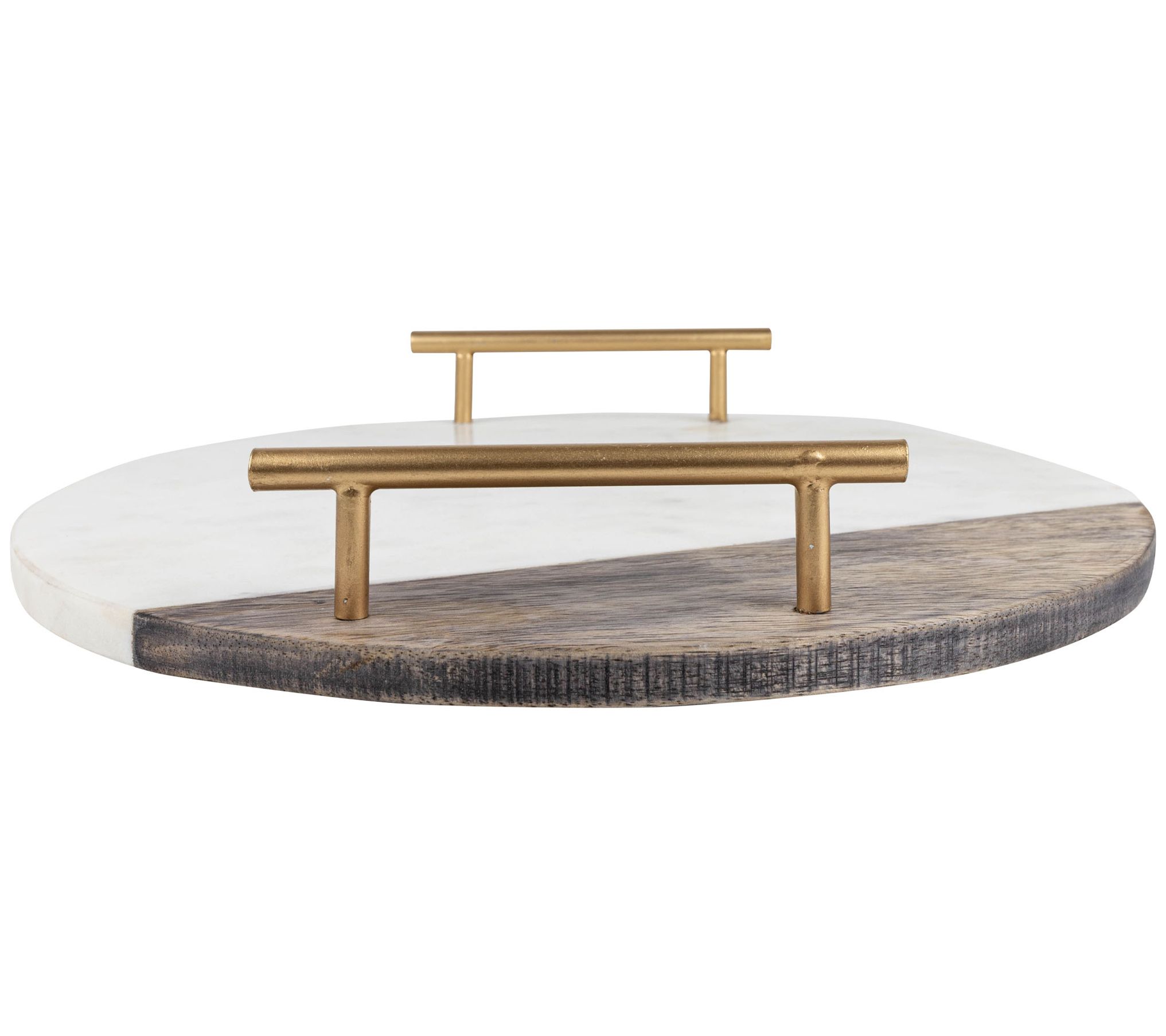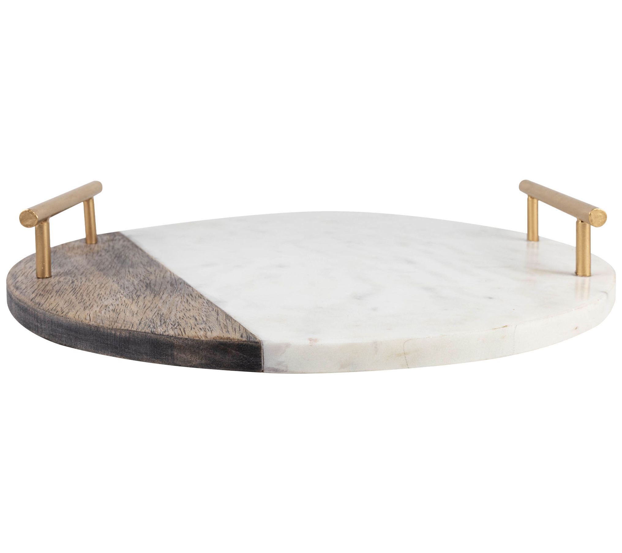 Foreside Home & Garden White Marble & Wood Serv ing Tray