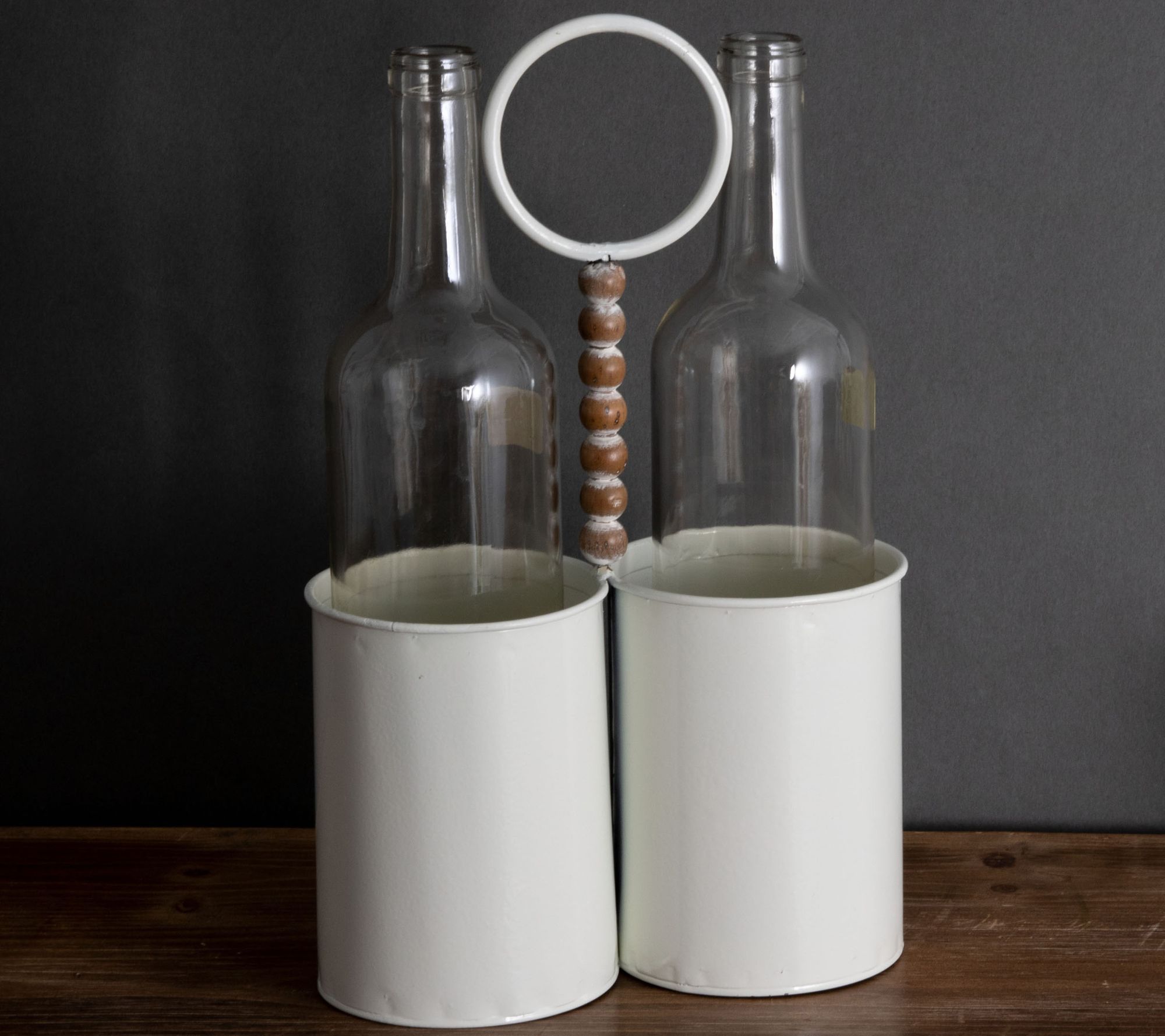 Foreside Home & Garden White Metal 2 Bottle Wine Caddy