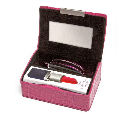 Includes folding readers and croco-embossed mini case