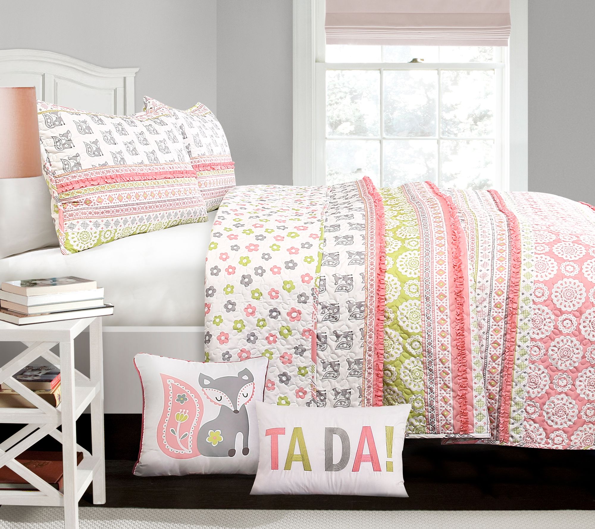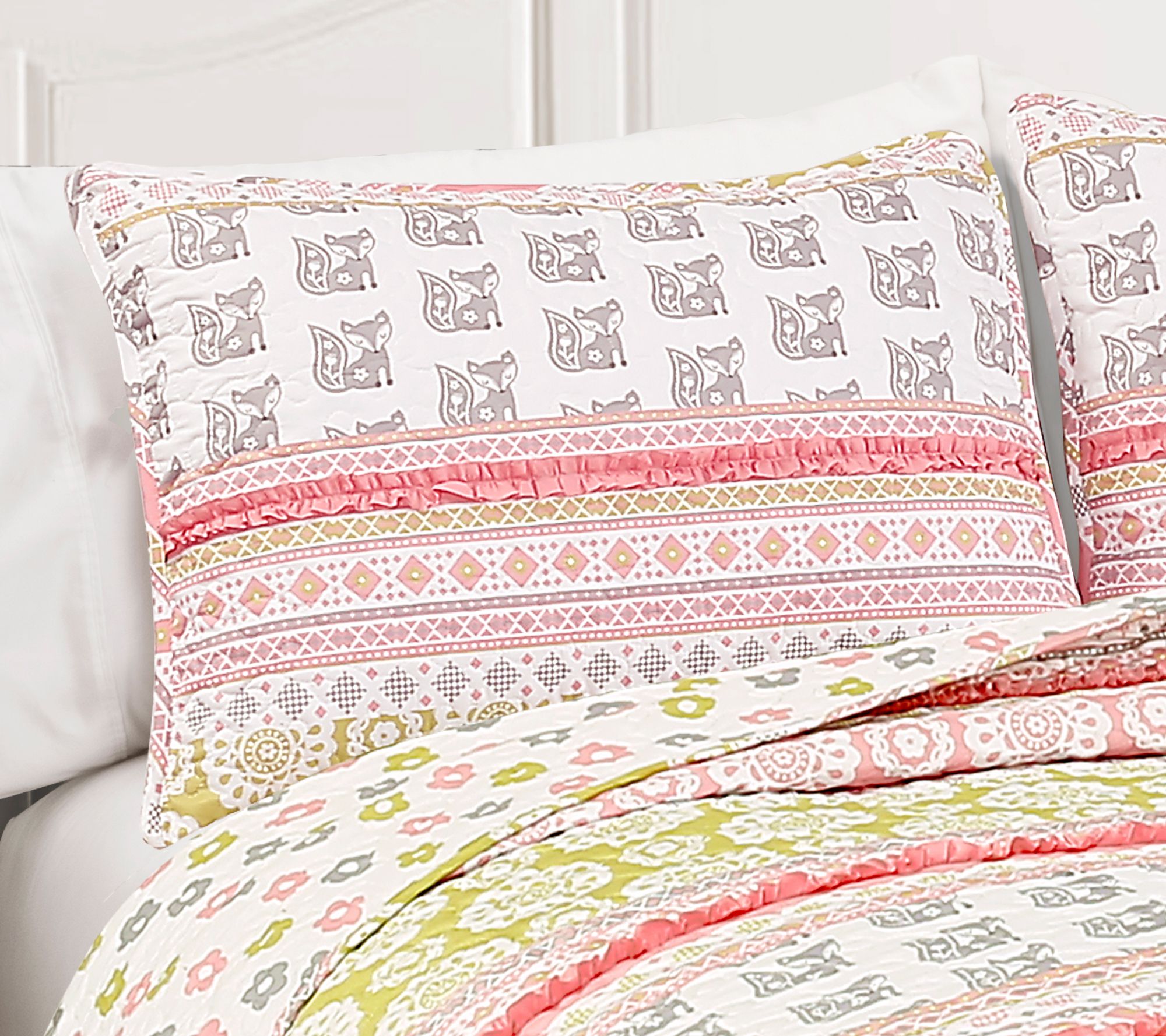 Let your tween enjoy the creature comforts of refreshed bedding with this ruffled fox quilt set. From Lush Decor.
