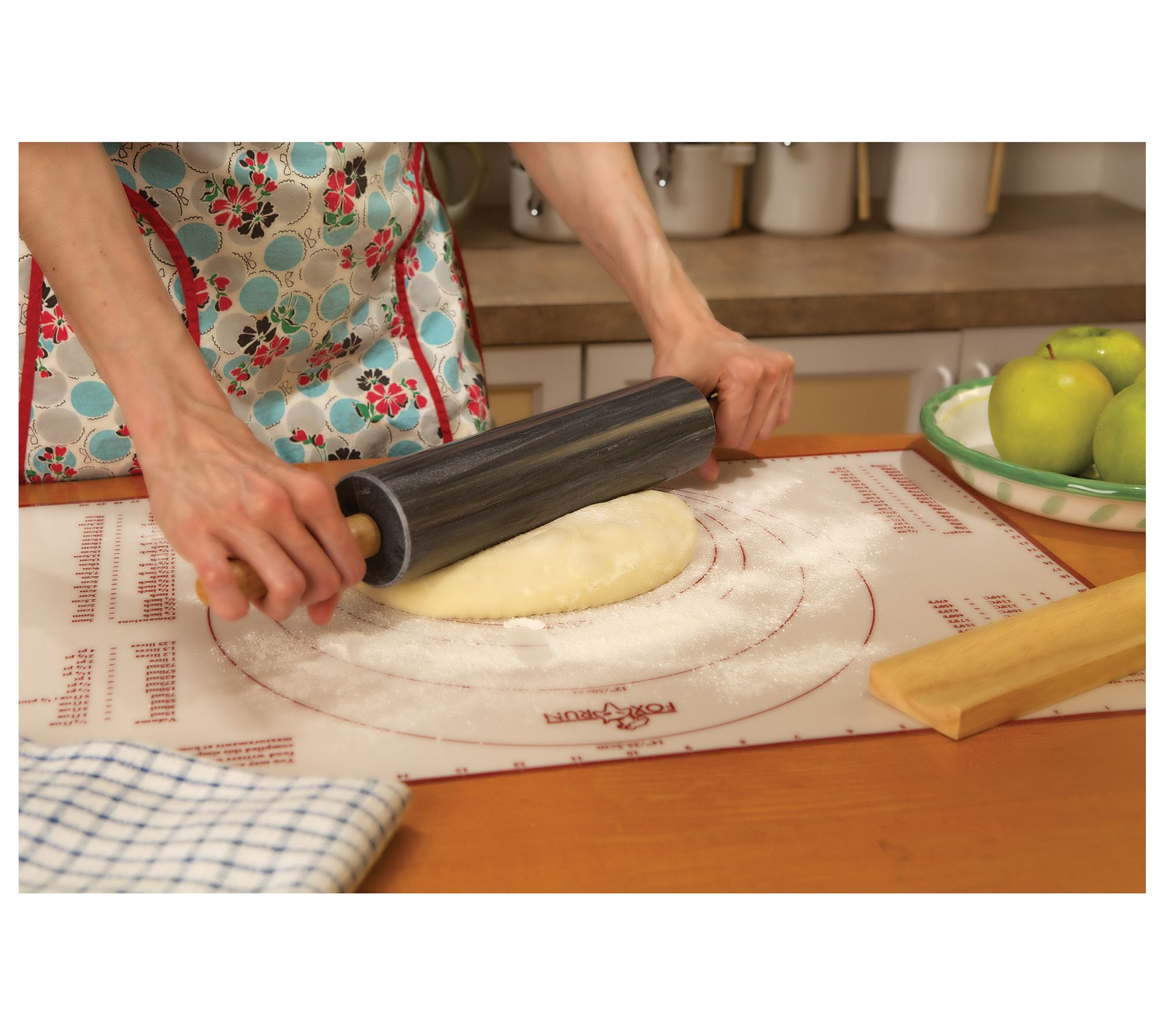 • Approximate measurements: Rolling pin 22.5" x 18.25" x 2.25", weighs 4.6 lbs; Base 2.25" x 9.75" x 0.25"
