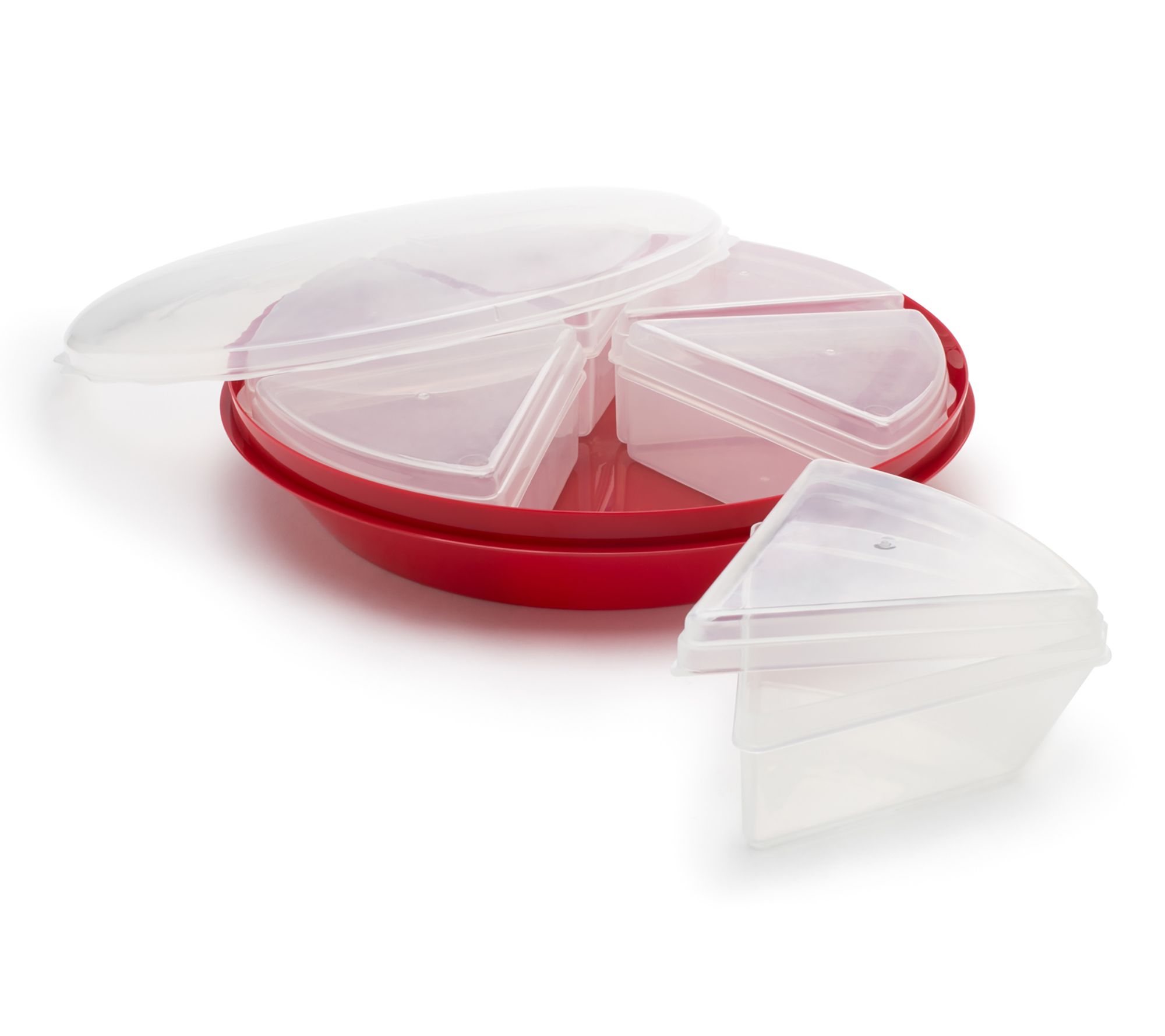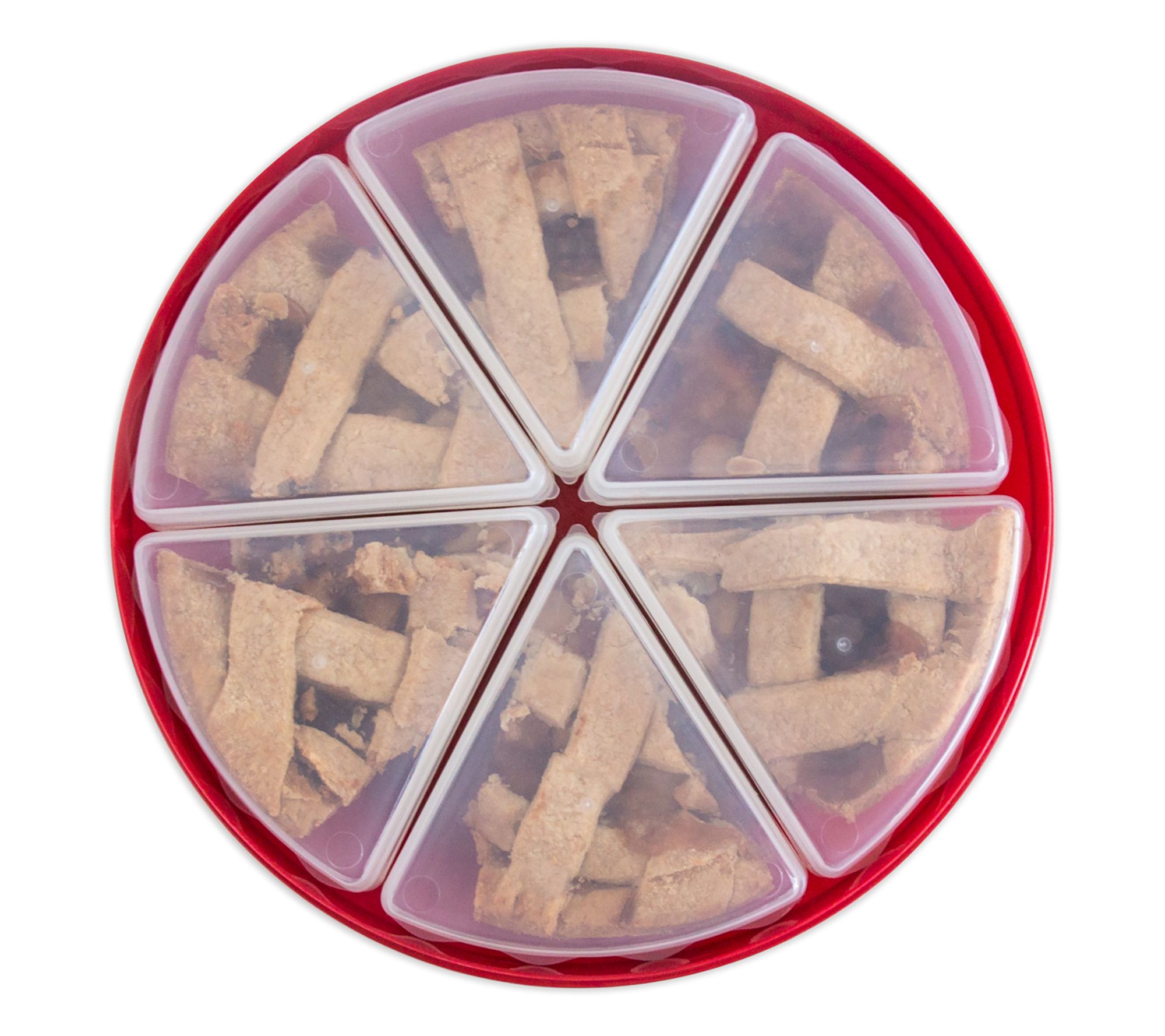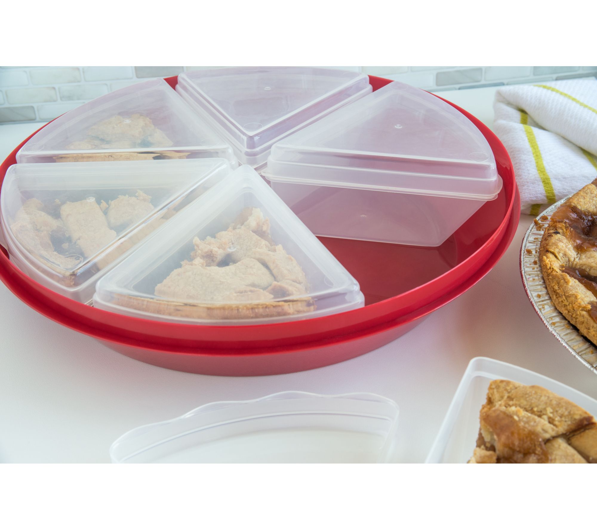Keep your pies fresh and easy to transport with the Fox Run pie saver. This large container can store 8", 9", and 10" pies and comes with six individual slice containers. Transport your favorite homemade pies to picnics and parties without any mess. From Fox Run.