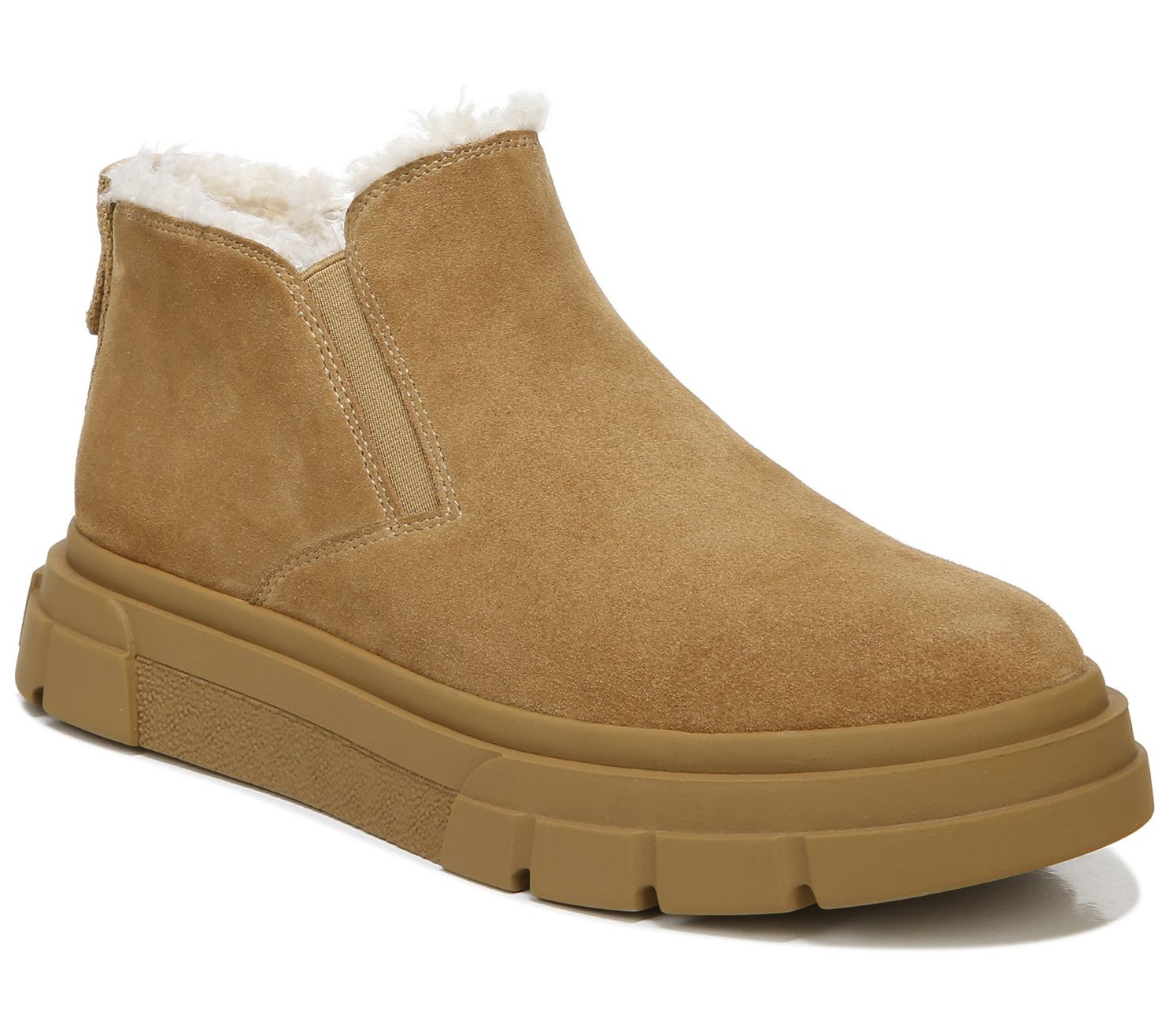 • Slip-on style, stretch gore, round toe, lug sole