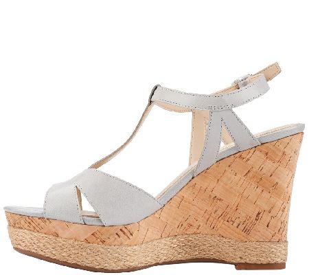 Franco Sarto Leather T-strap Wedges - Swerve