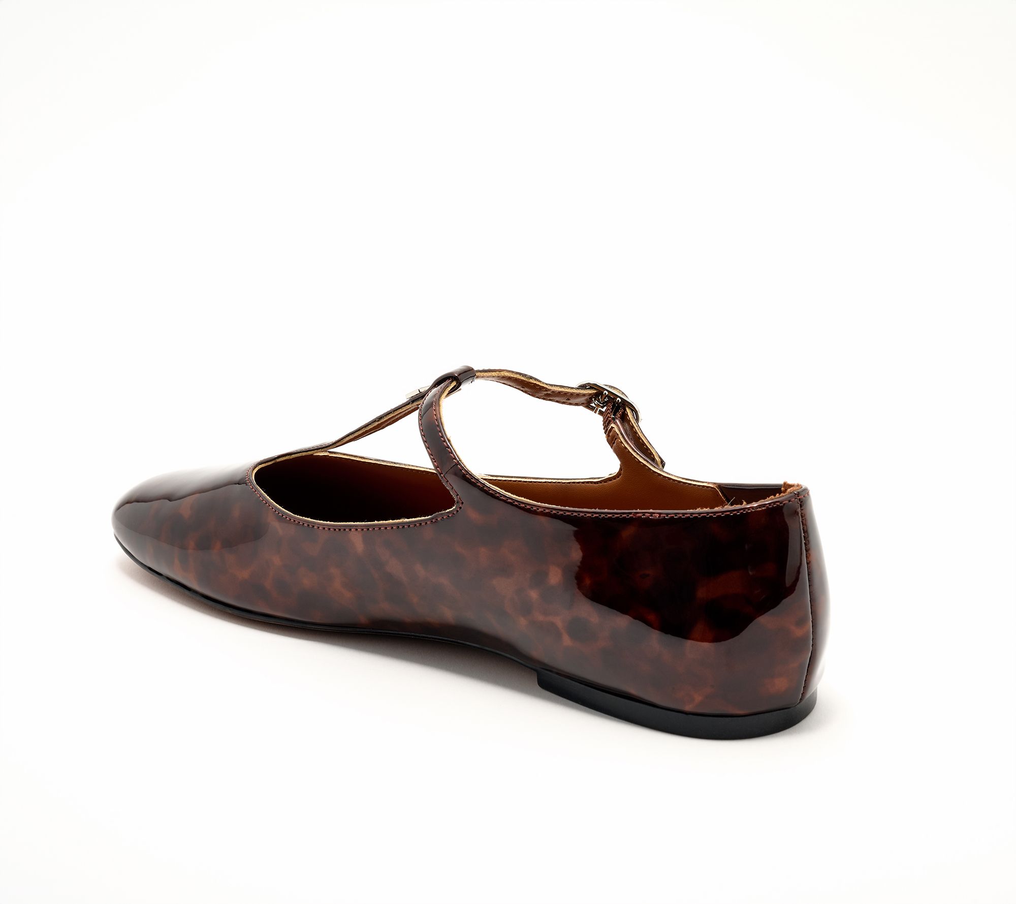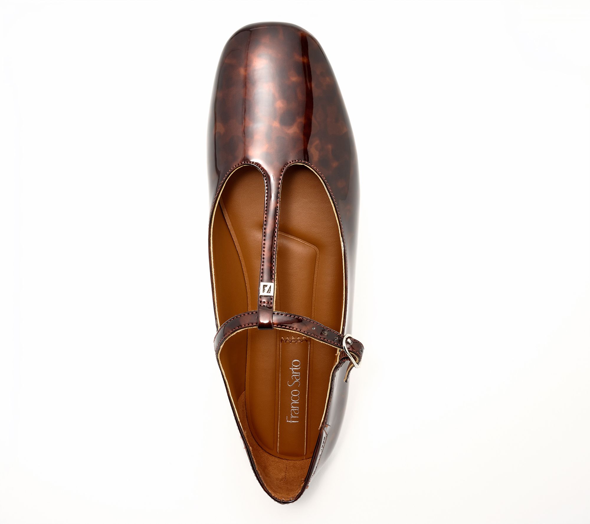 A chic T-strap flat transitions from work to after-hours, giving these patent shoes a modern edge and subtle sophistication. The adjustable buckle ensures a custom fit for bustling days in the office or evenings out, while a rounded toe lends timeless appeal to your style routine. From Franco Sarto.