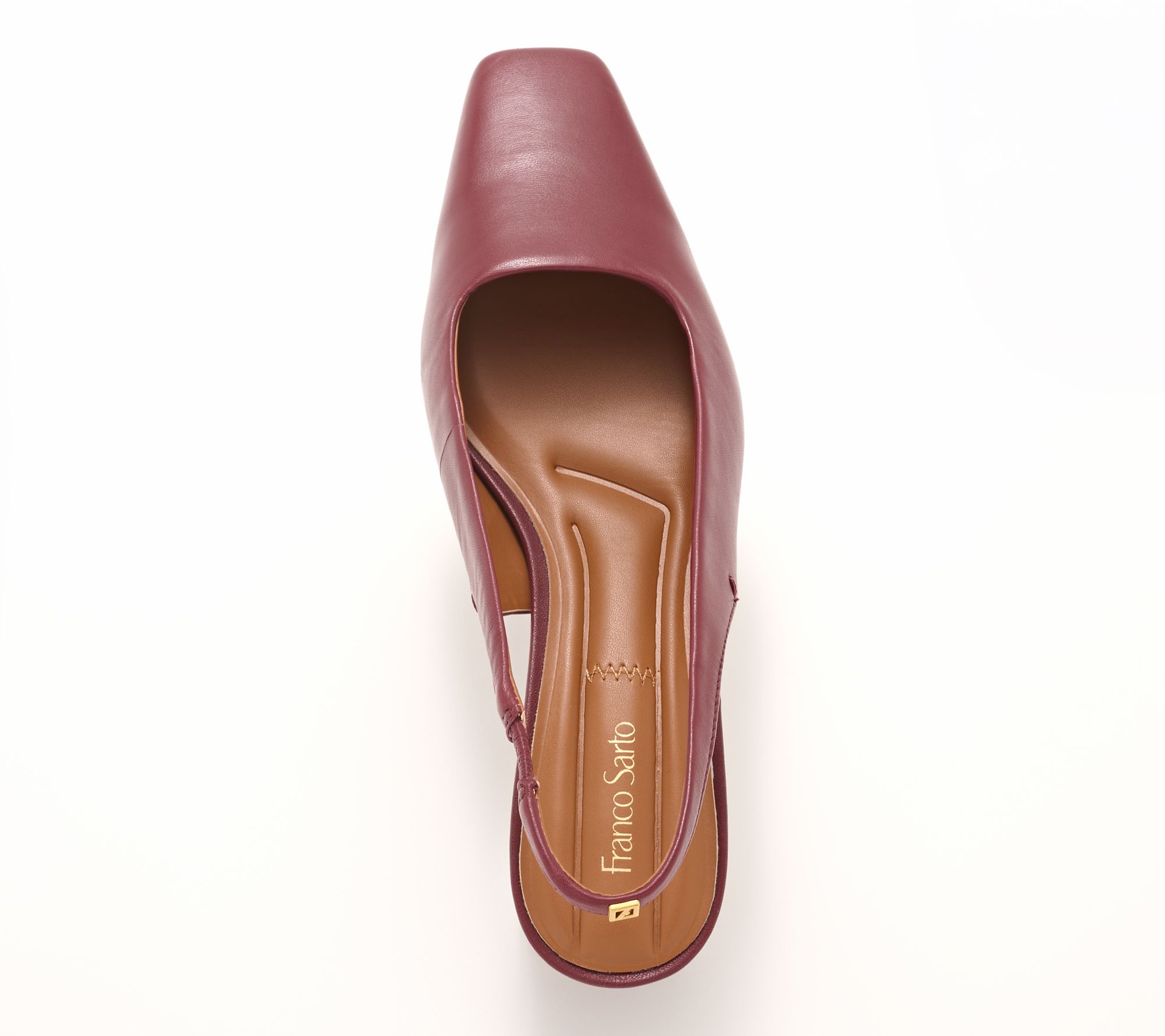 Stepping from a morning meeting to an evening out feels effortless in these slingback pumps. The supple leather upper and on-trend square toe add modern polish, while a stretch detail on the strap allows for easy on and off. A small heel elevates your look just enough, making it easy to pair well with both tailored pants and weekend dresses. From Franco Sarto.