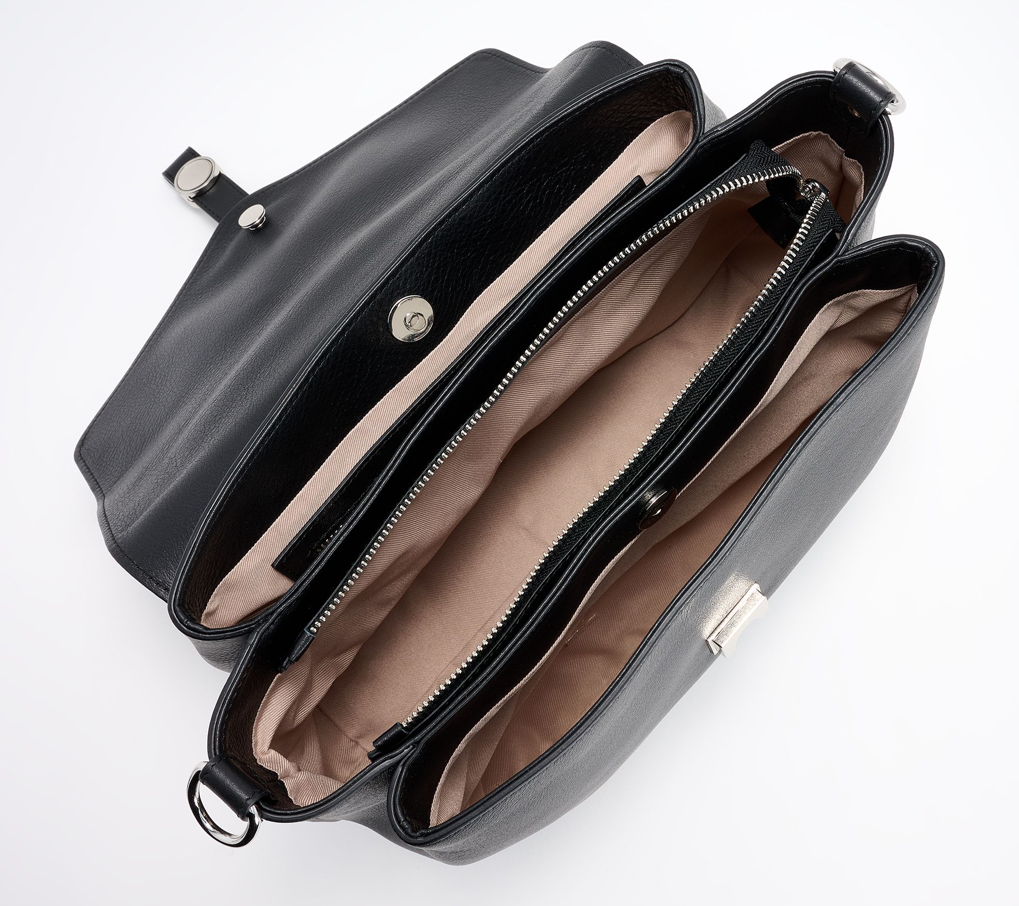 • Nappa leather body, top handle, adjustable/removable crossbody strap