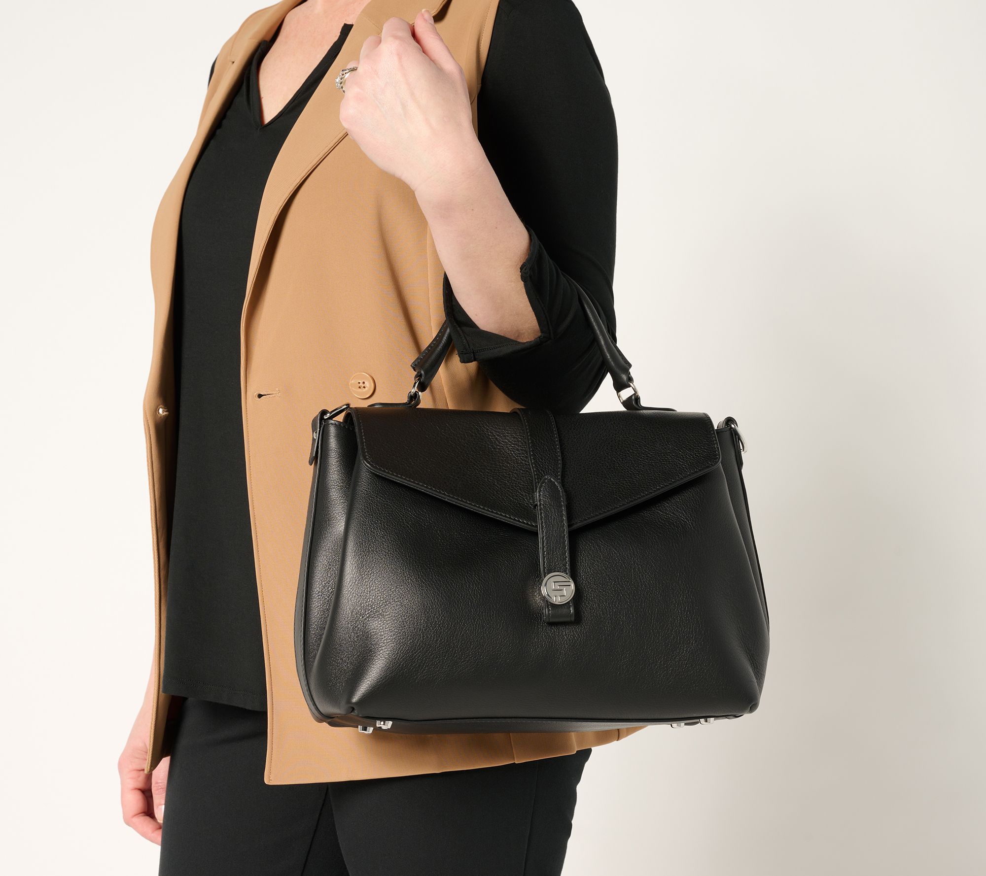Infuse your daily routine with the luxury and sophistication of the Valentina satchel from Frank La Mendola. Carefully crafted in nappa leather, it's your ticket to effortless elegance. Its triple interior compartments help keep you wonderfully organized, whether you're sealing deals at the office or indulging in a leisurely lunch. With the versatility of an adjustable and removable crossbody strap, paired with a classic top handle, the bag seamlessly adapts to your globe-trotting lifestyle. From Frank La Mendola.