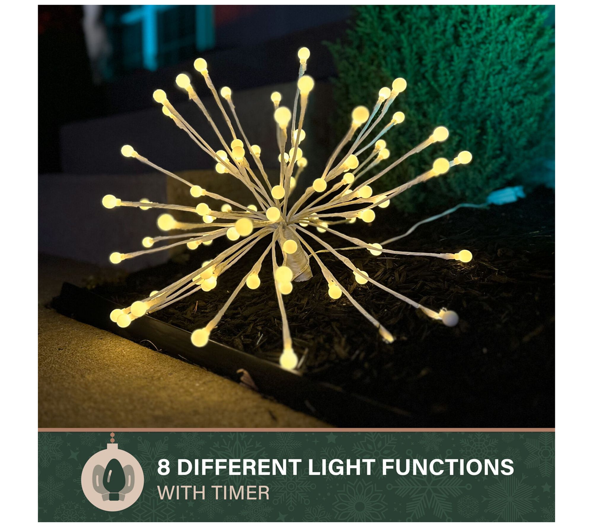 Lighting up holiday celebrations just got easier, whether you're decorating your porch for winter gatherings or adding a sparkling centerpiece to your entryway. Arrange these starburst decorations together or throughout your space to create a festive glow that everyone will admire all season long. Eight unique light settings offer creative control and let you change up the display whenever you wish. From Fraser Hill Farm.