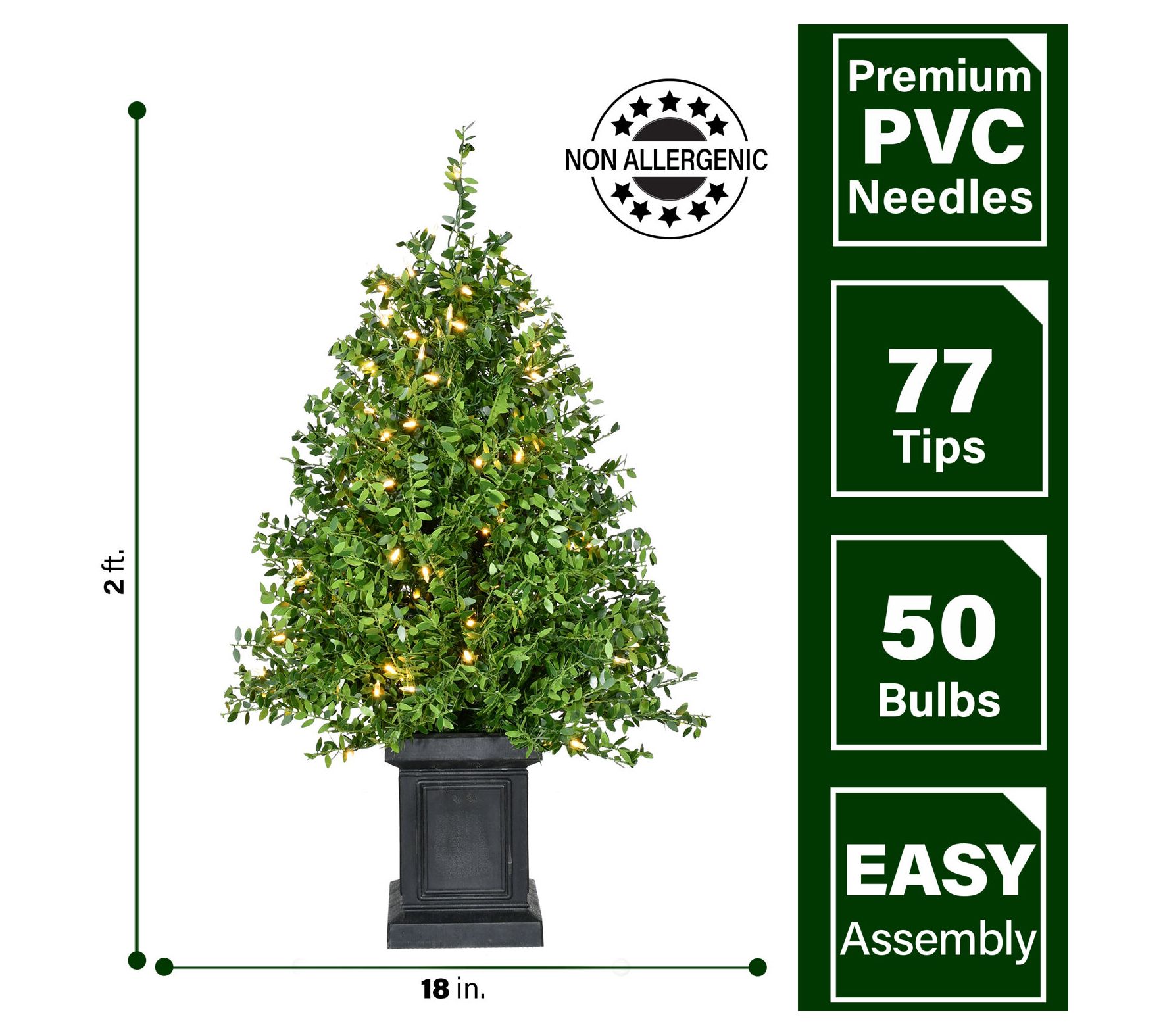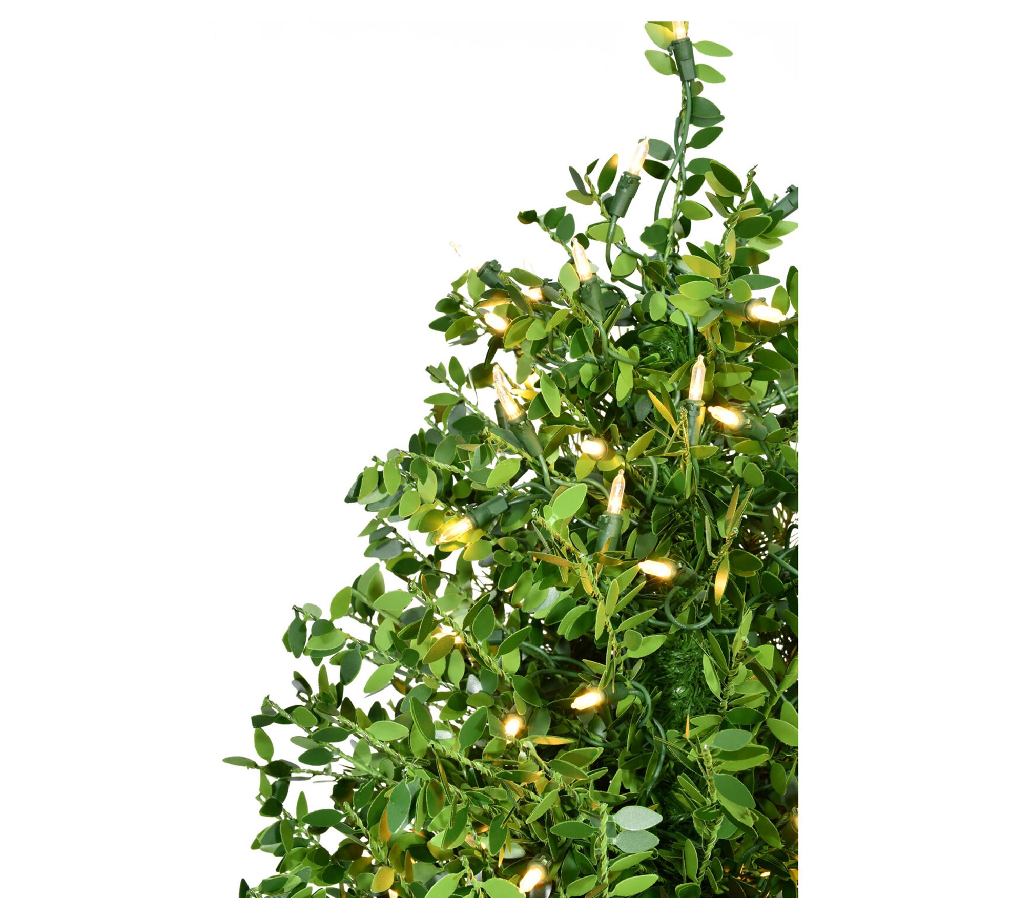 Bring a touch of elegance to your space with this lifelike boxwood tree. Its lush, vibrant foliage catches the warm glow from the prestrung LED lights, creating a cozy ambiance. Place this tree by your porch or indoors to frame entryways and inspire seasonal cheer all year long. Perfect for hassle-free decorating, it offers a lasting statement without the upkeep. From Fraser Hill Farm.