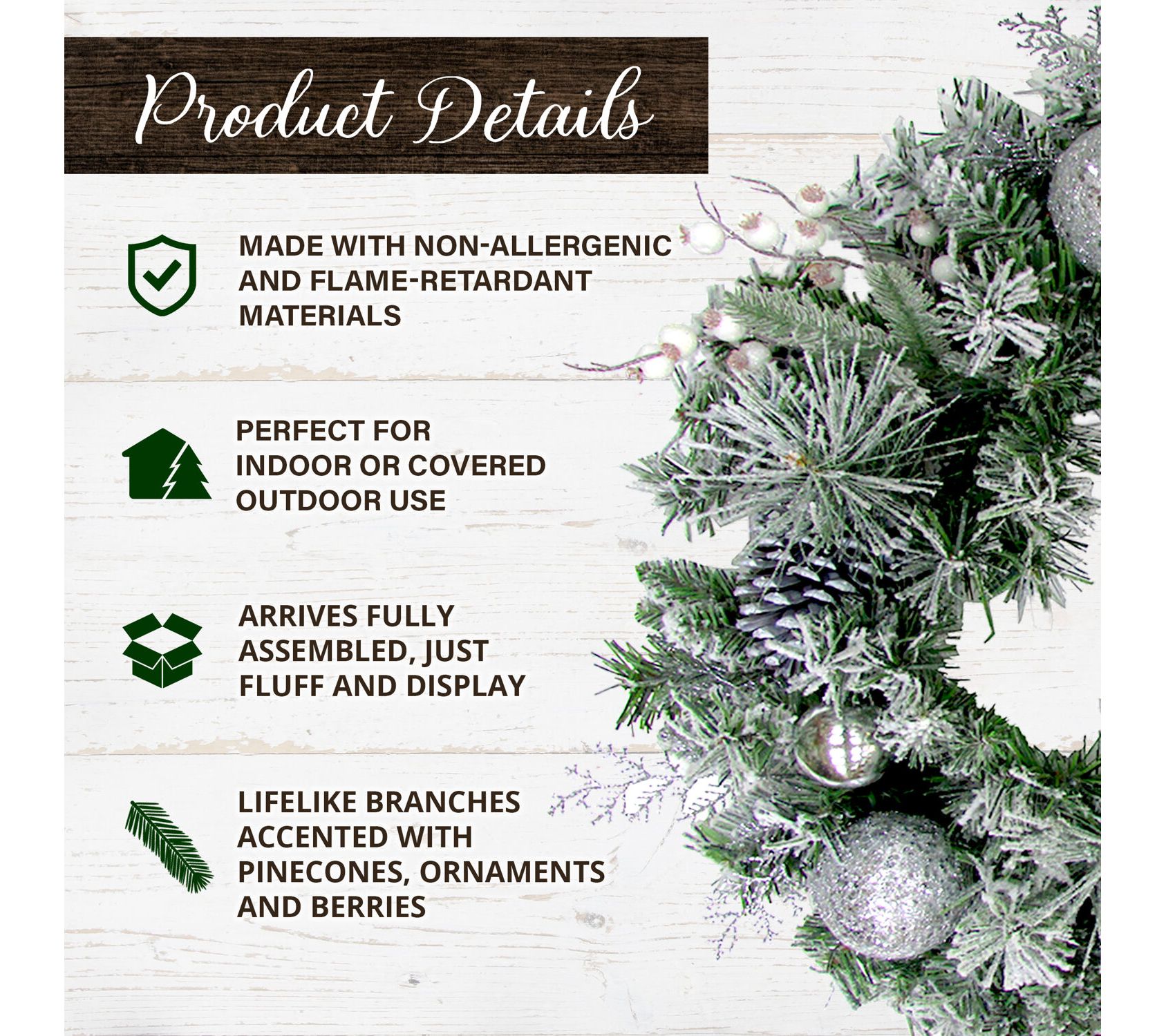• Includes wreath and warranty