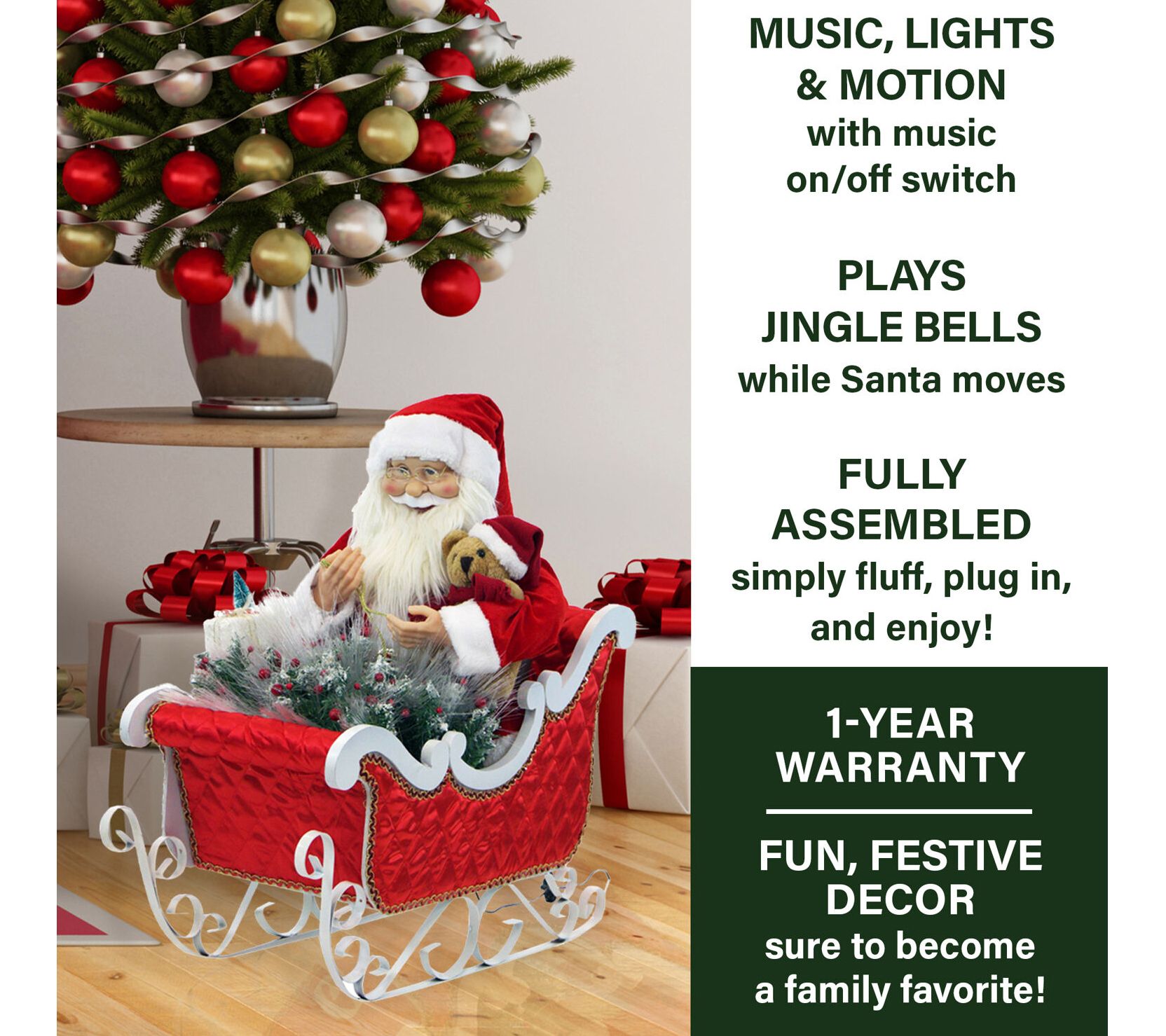 • Includes Santa with teddy bear in sleigh, transformer, instructions, and warranty
