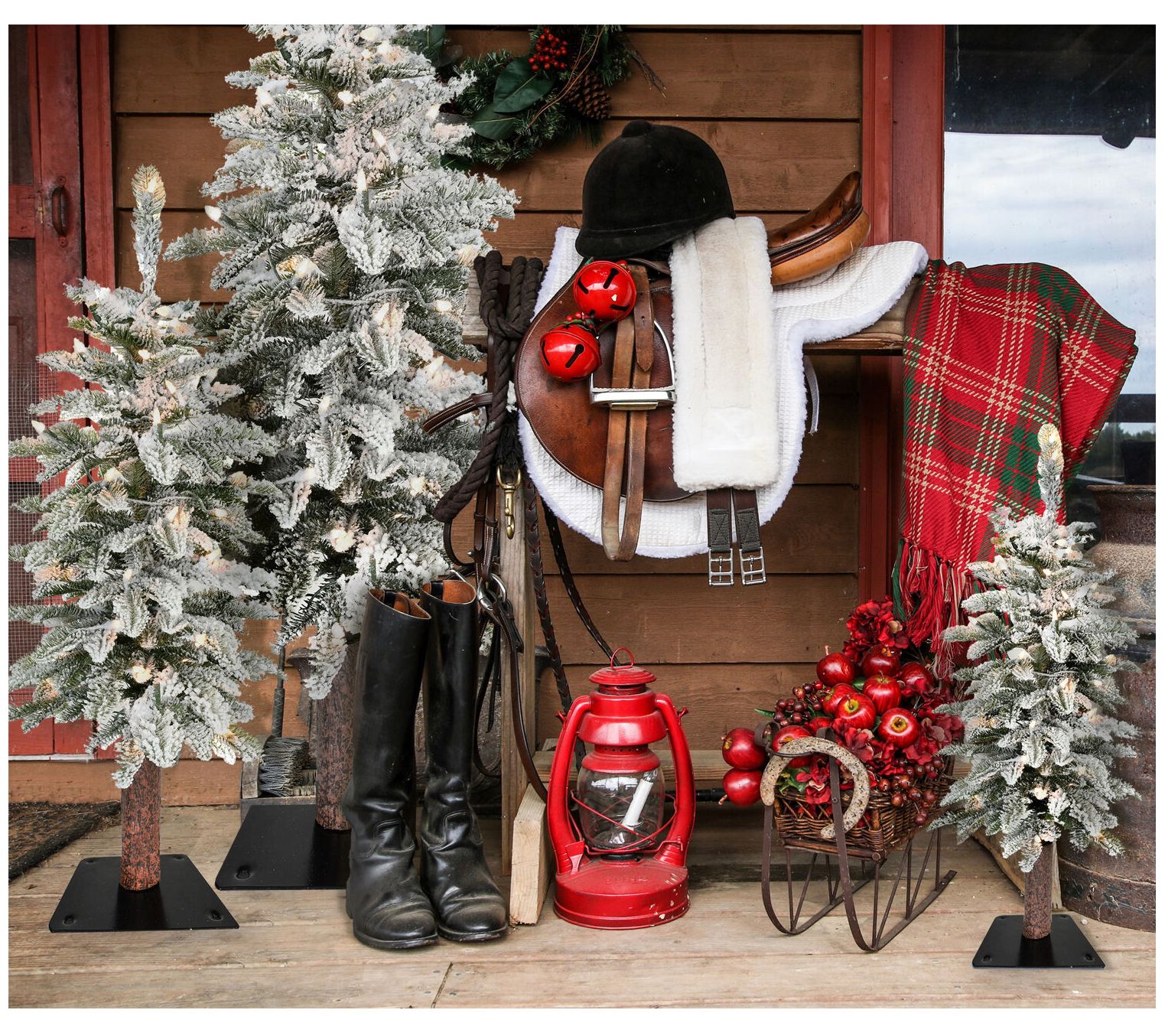 Pre-strung with LED lights and featuring an attached metal base, this snowy, lifelike tree allows for instant festivity right out of the box. From Fraser Hill Farm.