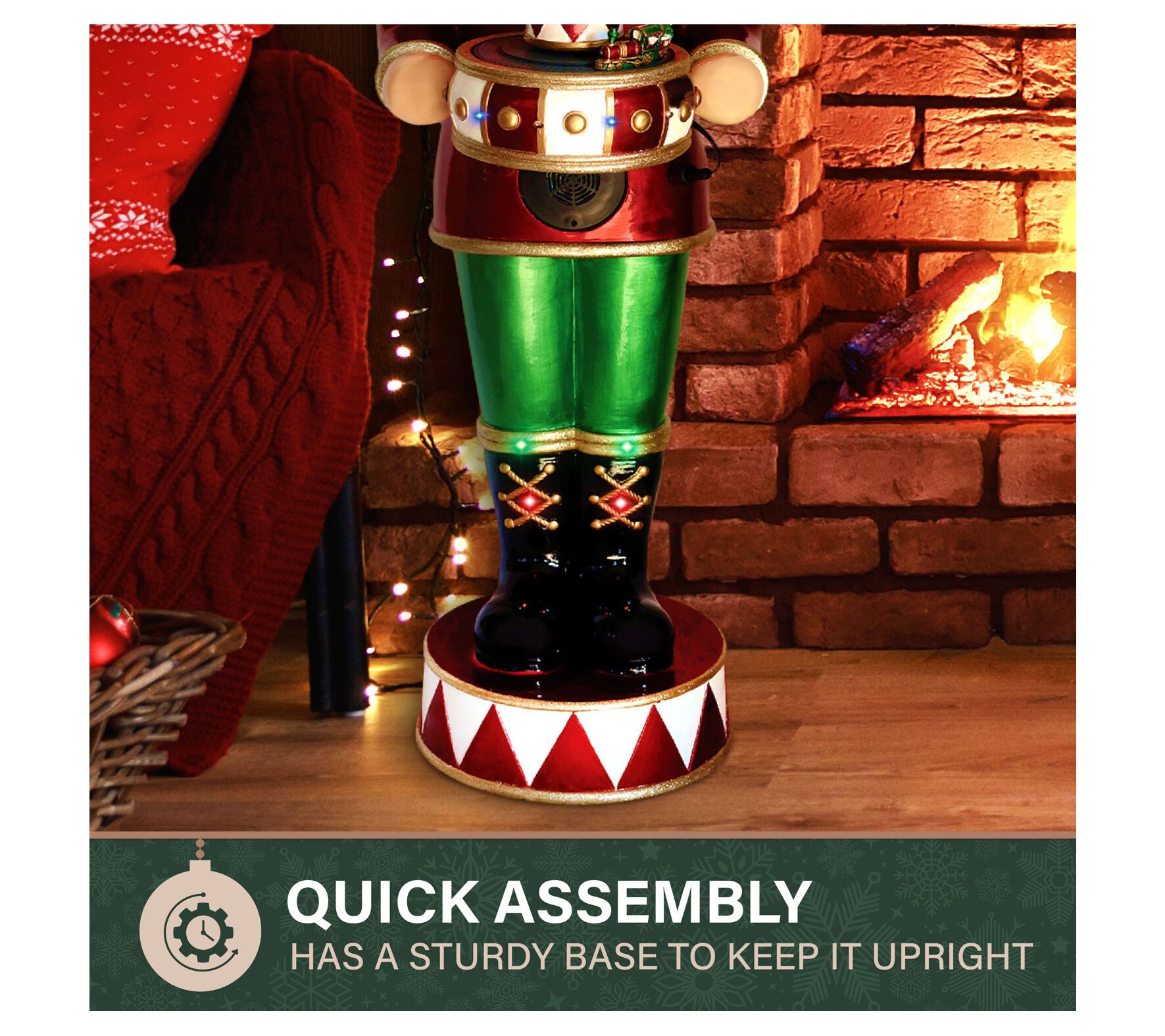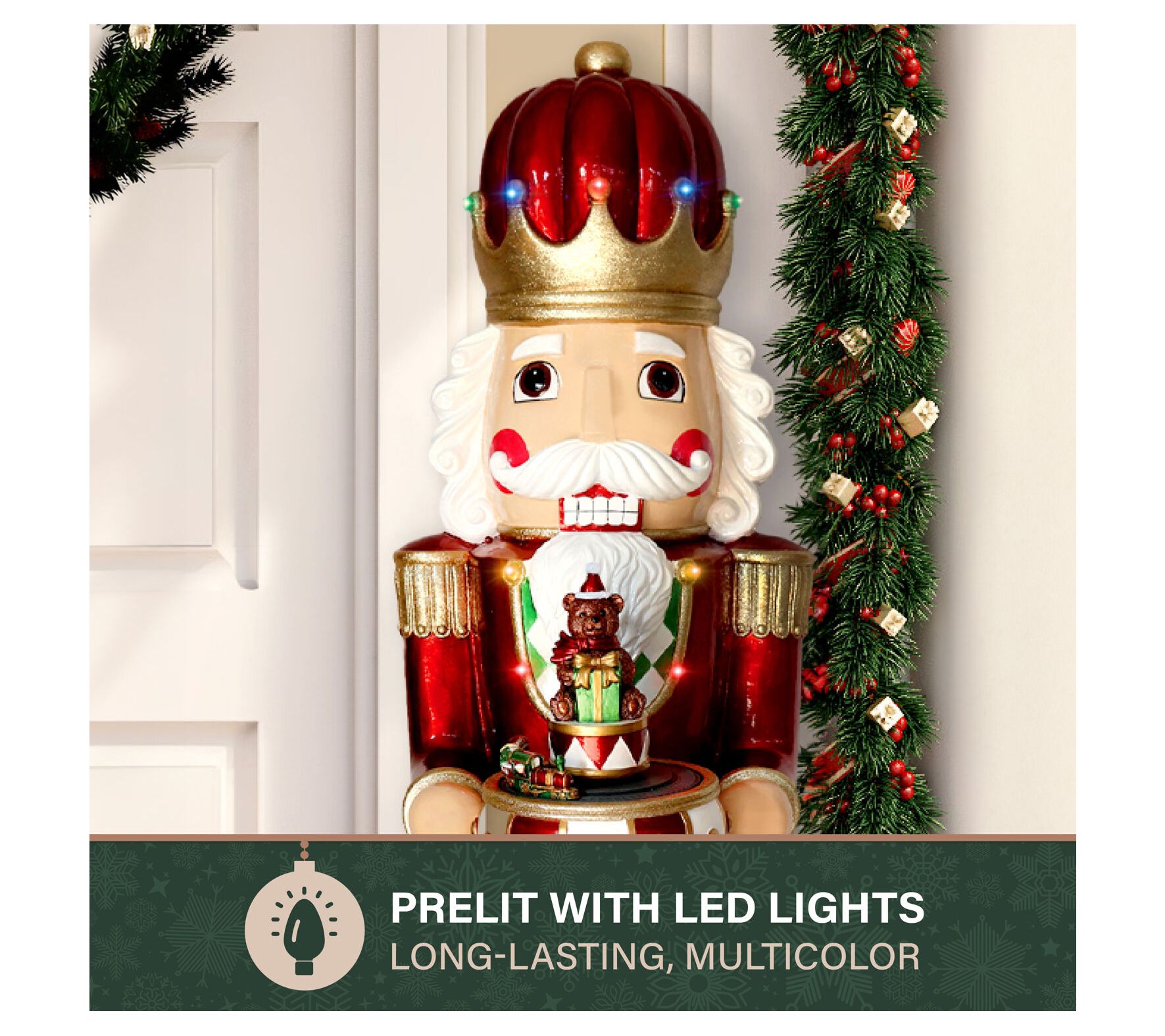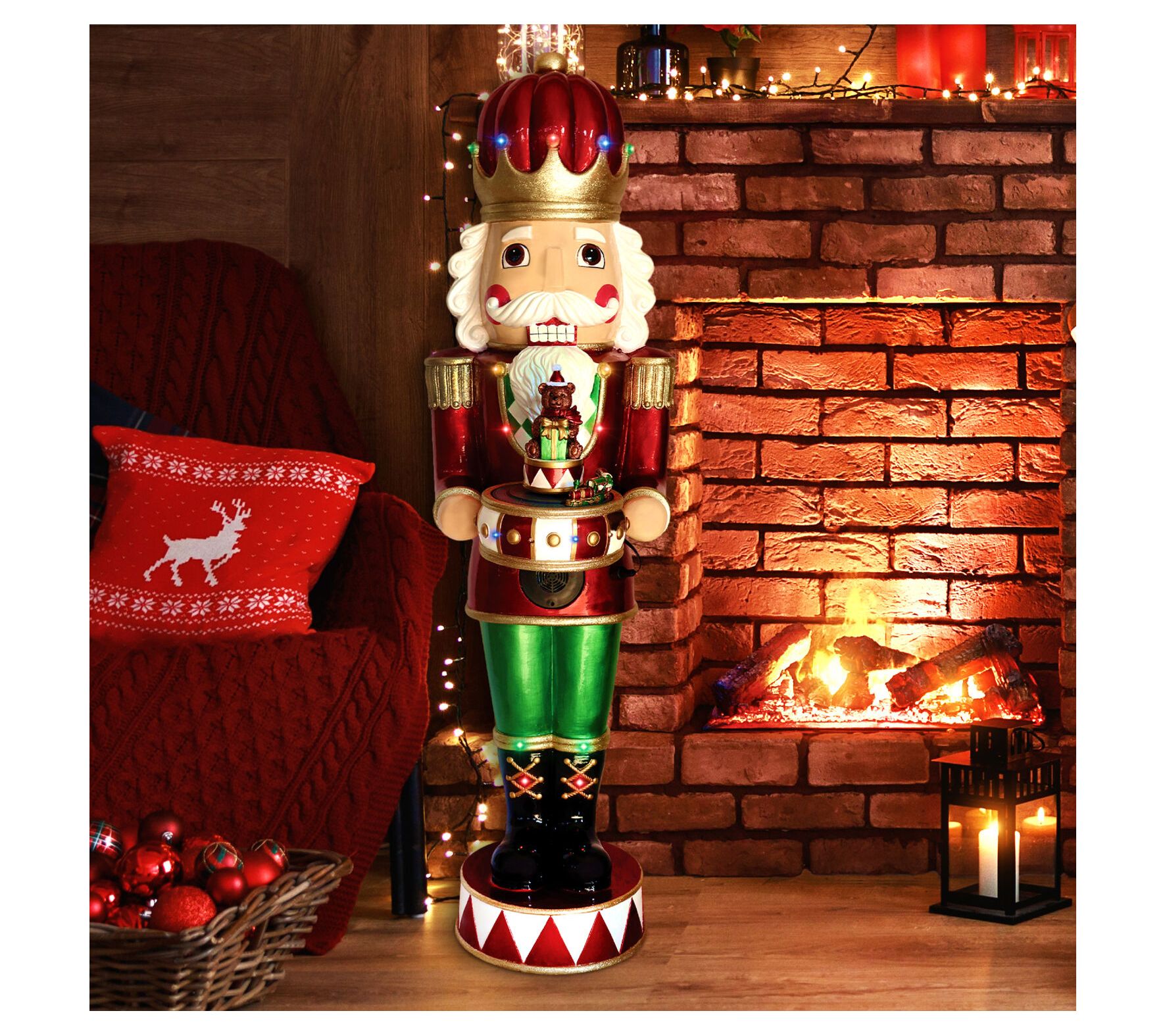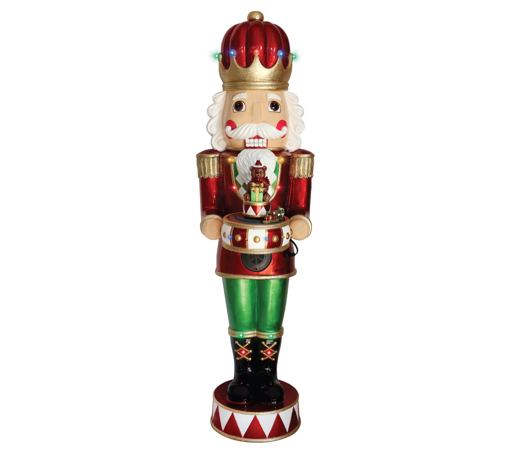 Imagine greeting your guests with a festive flair this holiday season with the metallic finish nutcracker statue, standing proudly at four feet. Perfect for greeting near the tree or entryway, this charming piece captures the magic of the holidays. Its vibrant LED lights twinkle throughout, while festive music brings warmth to any setting. Whether indoors or outdoors, its durable construction promises a spirited display season after season. From Fraser Hill Farm.