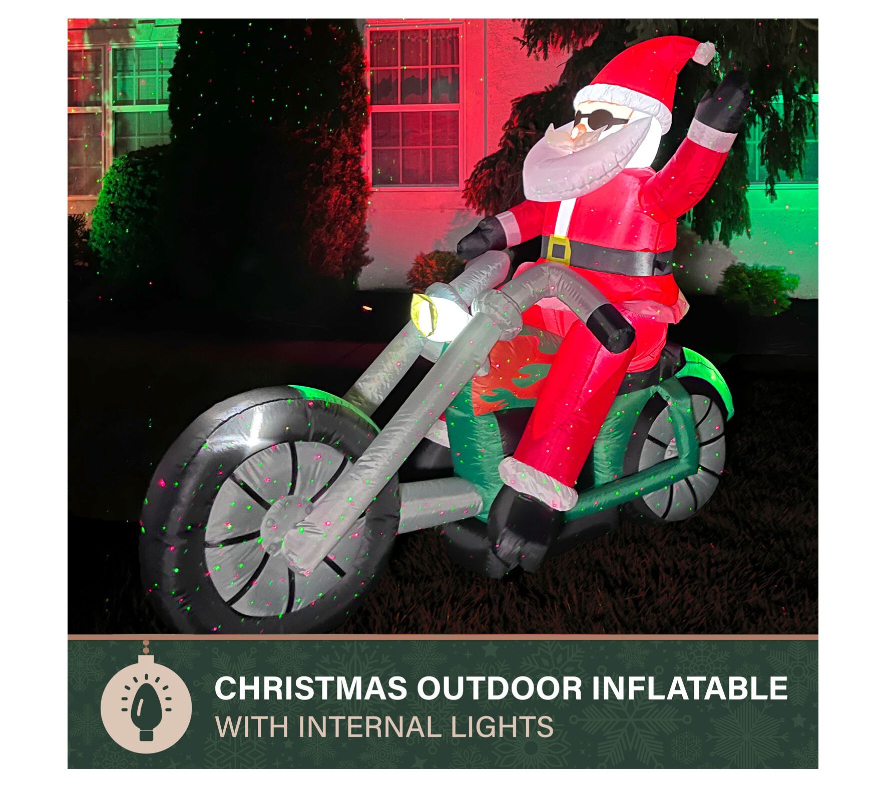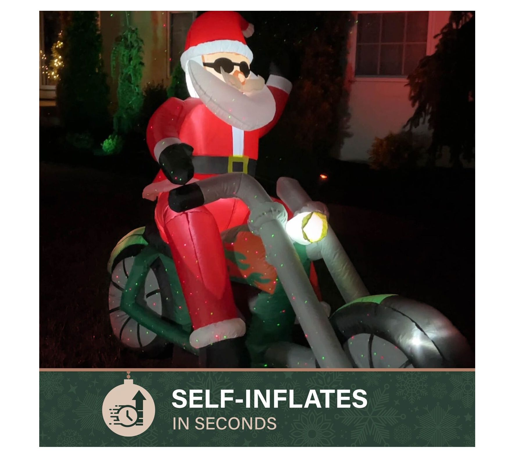 Celebrate Christmas in epic fashion with the Fraser Hill Farm prelit motorcycle Santa inflatable. This impressive decoration brightens your lawn, garden, or porch day and night, spreading holiday cheer. Setup is simple and quick, enabling you to enjoy festive fun in no time. From Fraser Hill Farm.