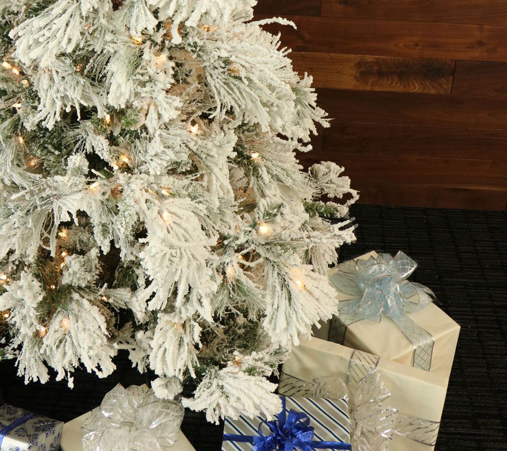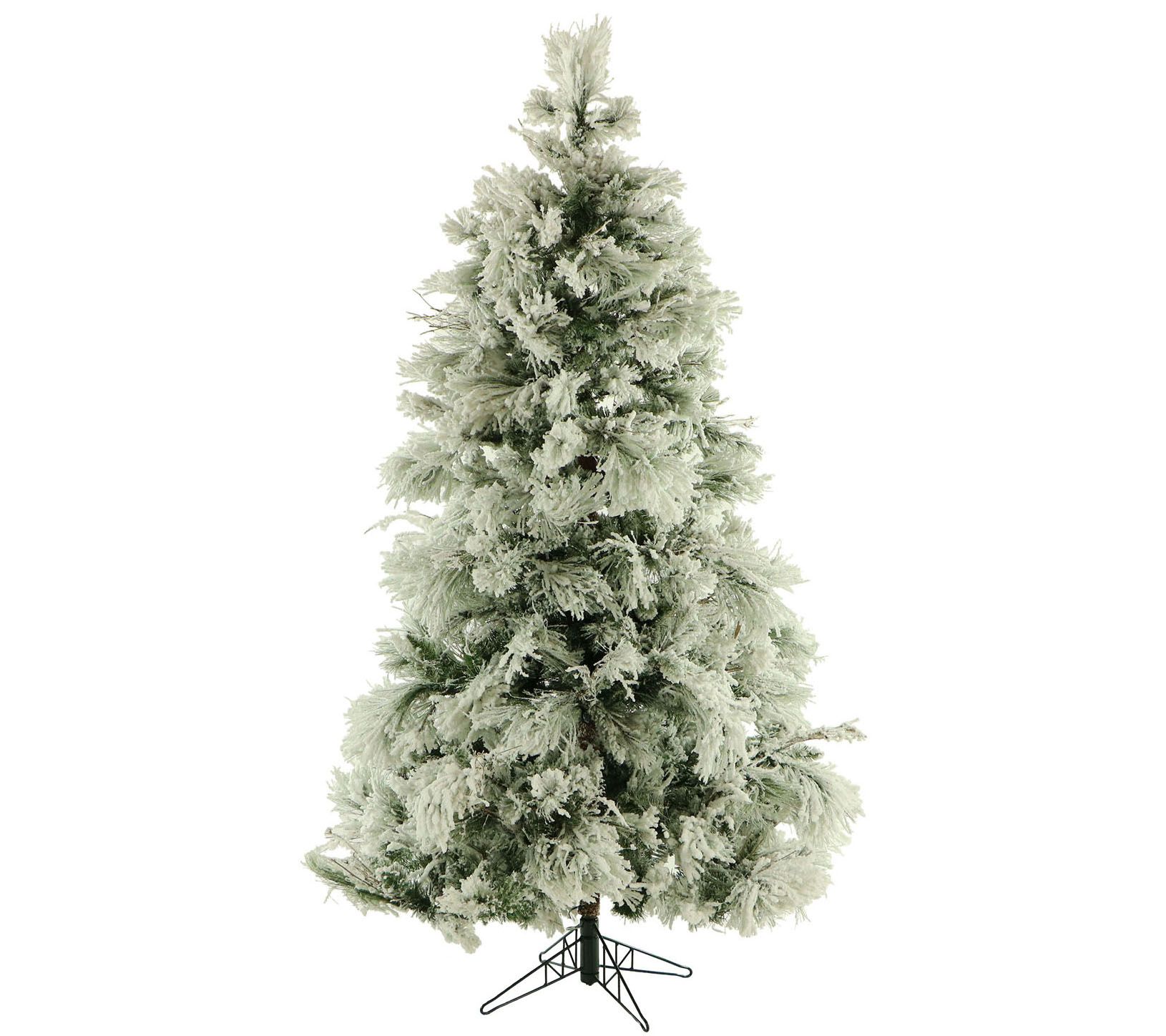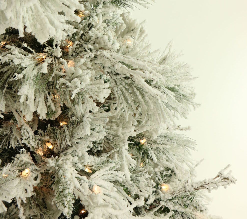 Create your own winter wonderland with this artificial Snowy Pine tree. The flocked finish gives its traditional full design a look of freshly fallen snow. Simply unfold, fluff, and decorate this prelit tree with your cherished ornaments. From Fraser Hill Farm.