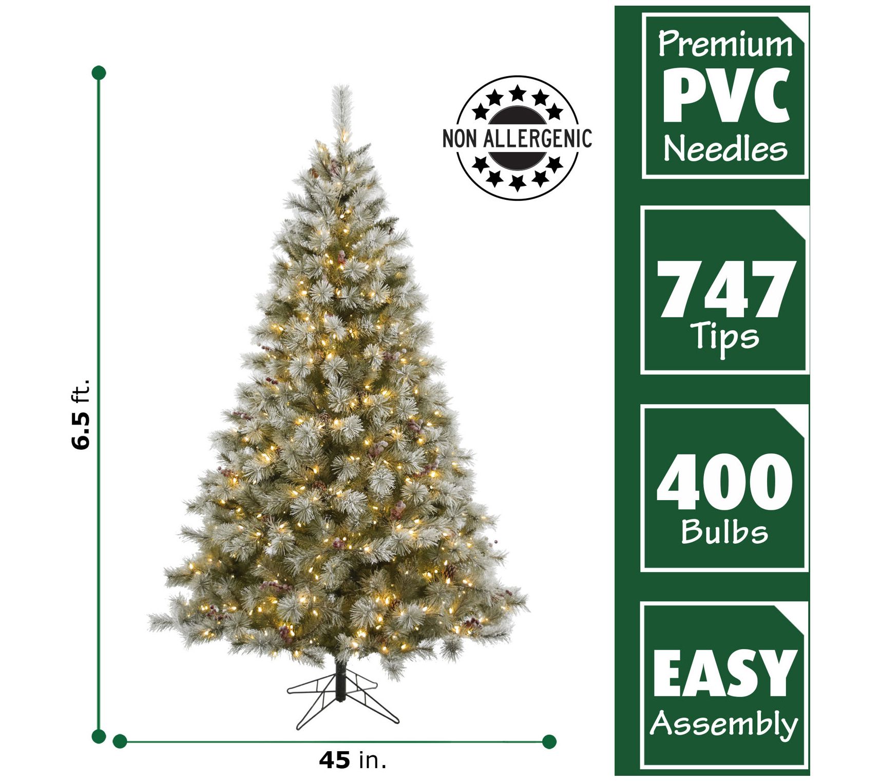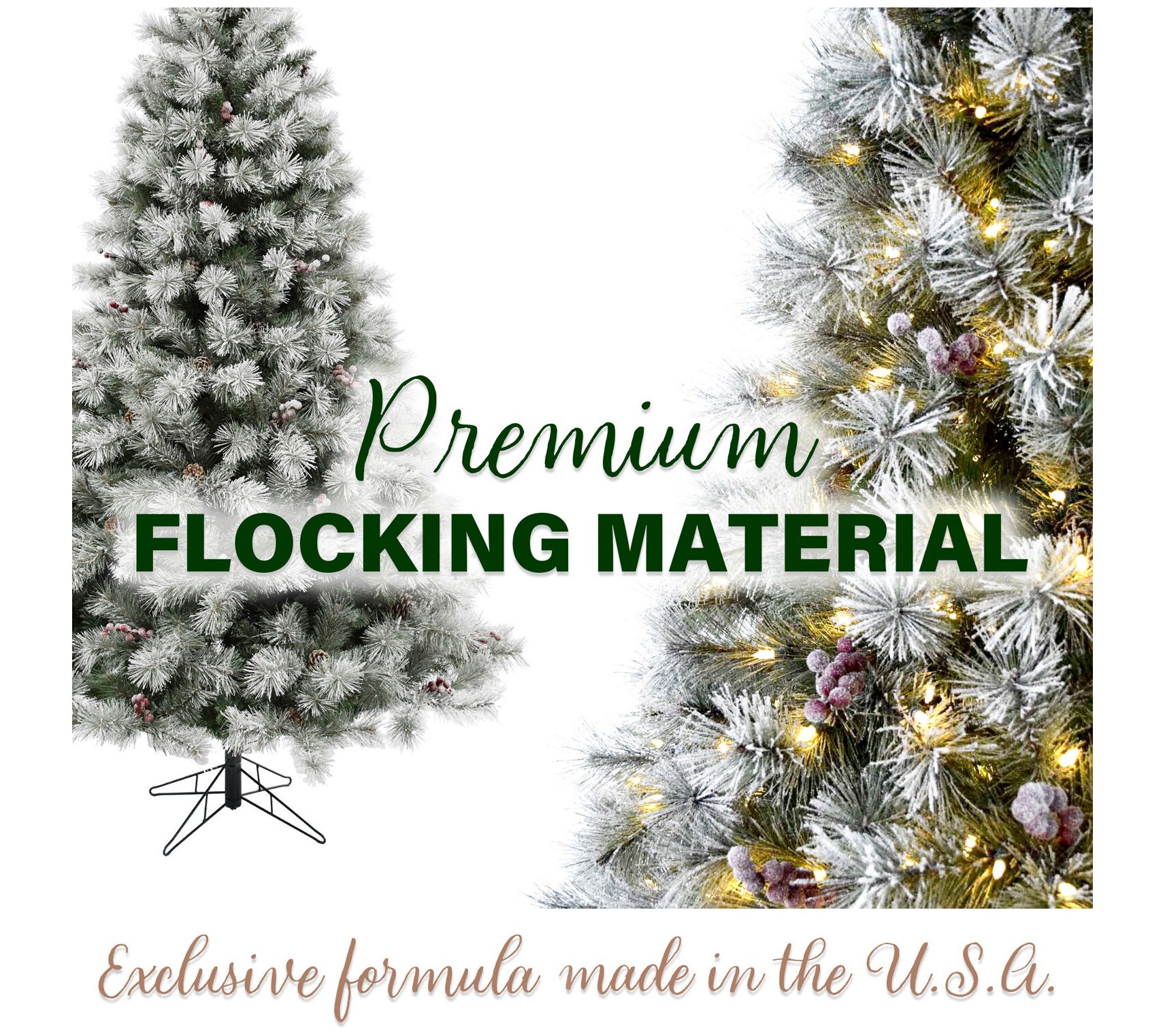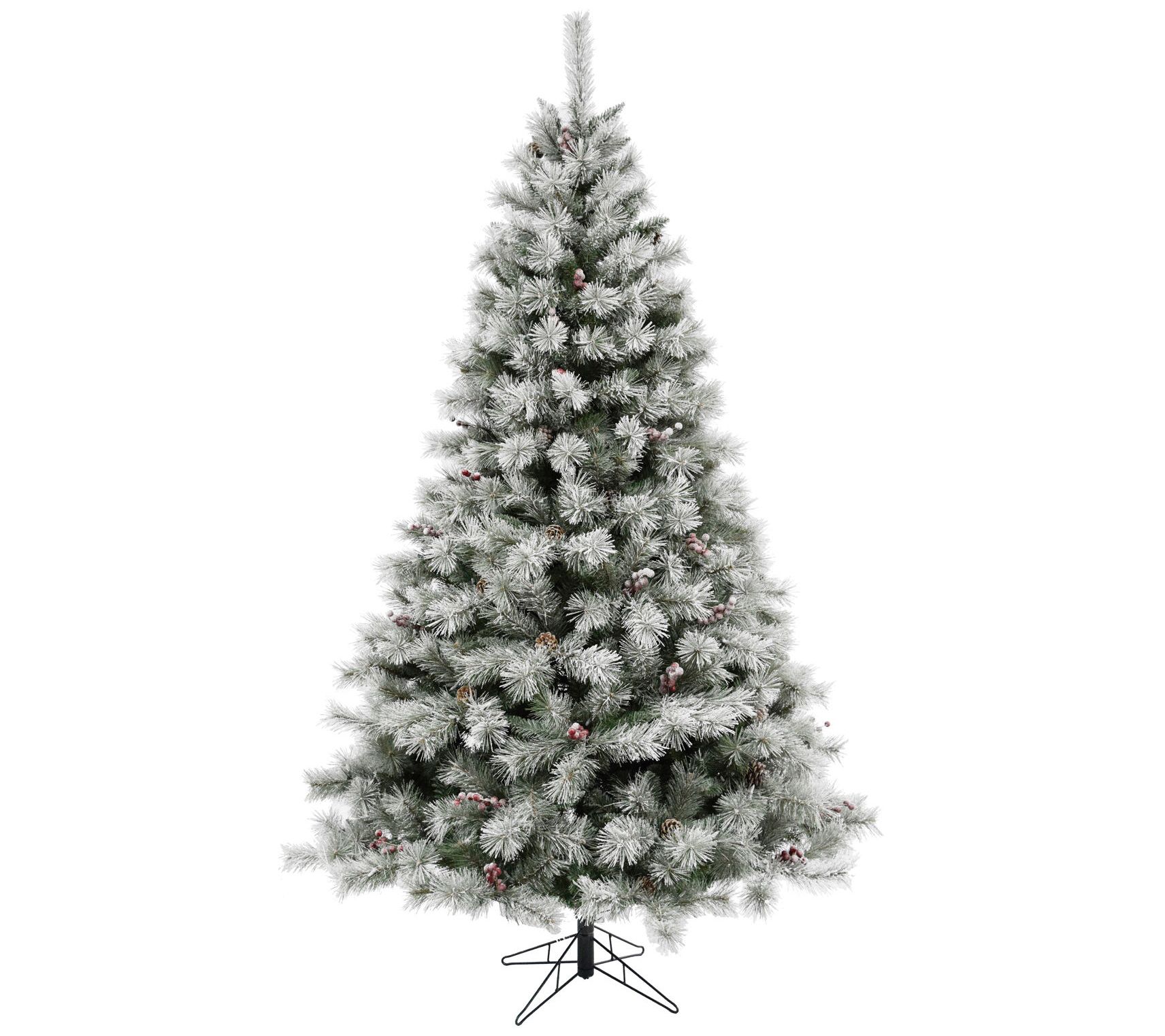 Add holiday magic to your home with this sparkling Homestead frosted, artificial pine featuring 747 realistic branch tips, 400 warm white LED lights, pinecones, and berries. From Fraser Hill Farm.