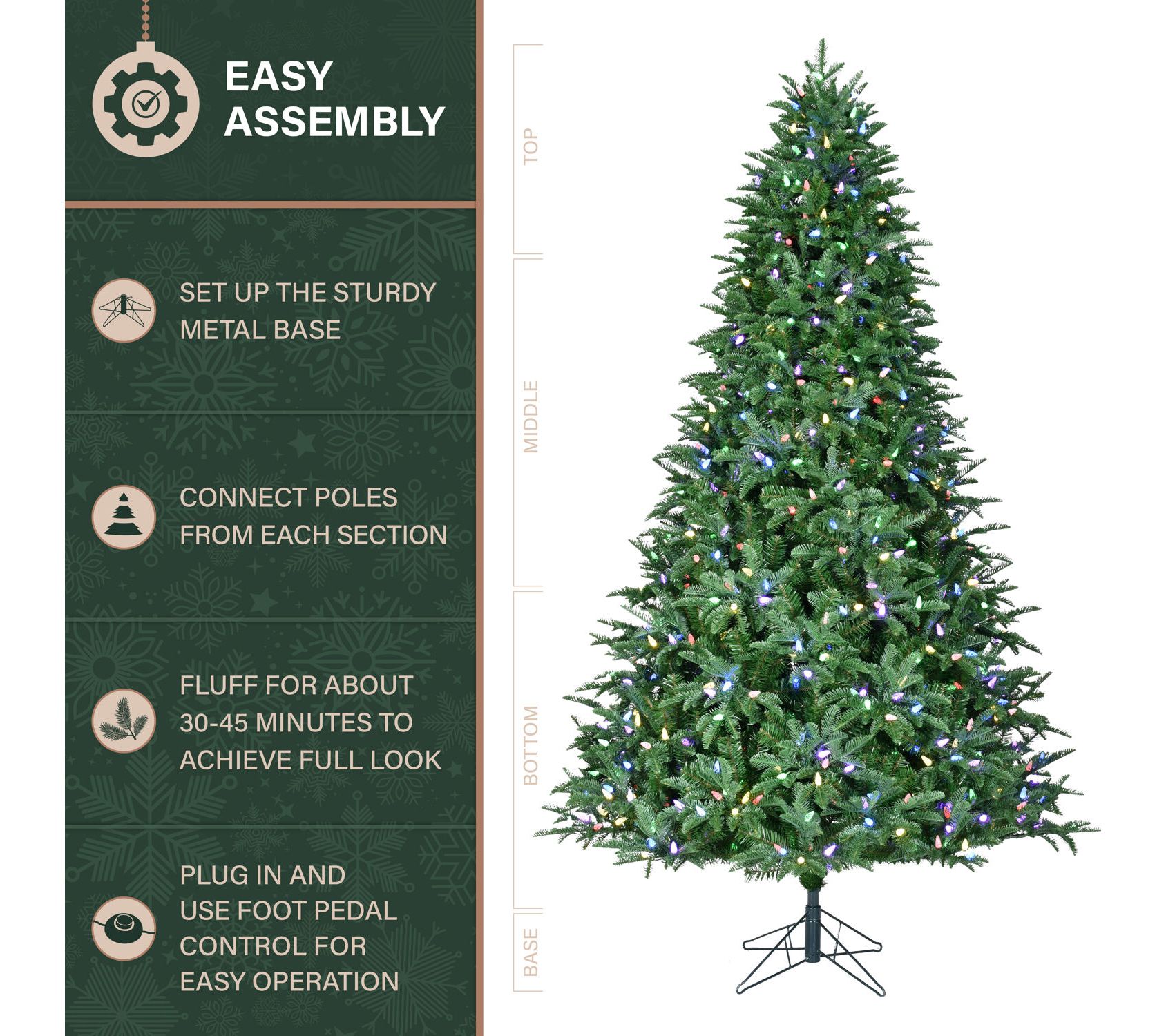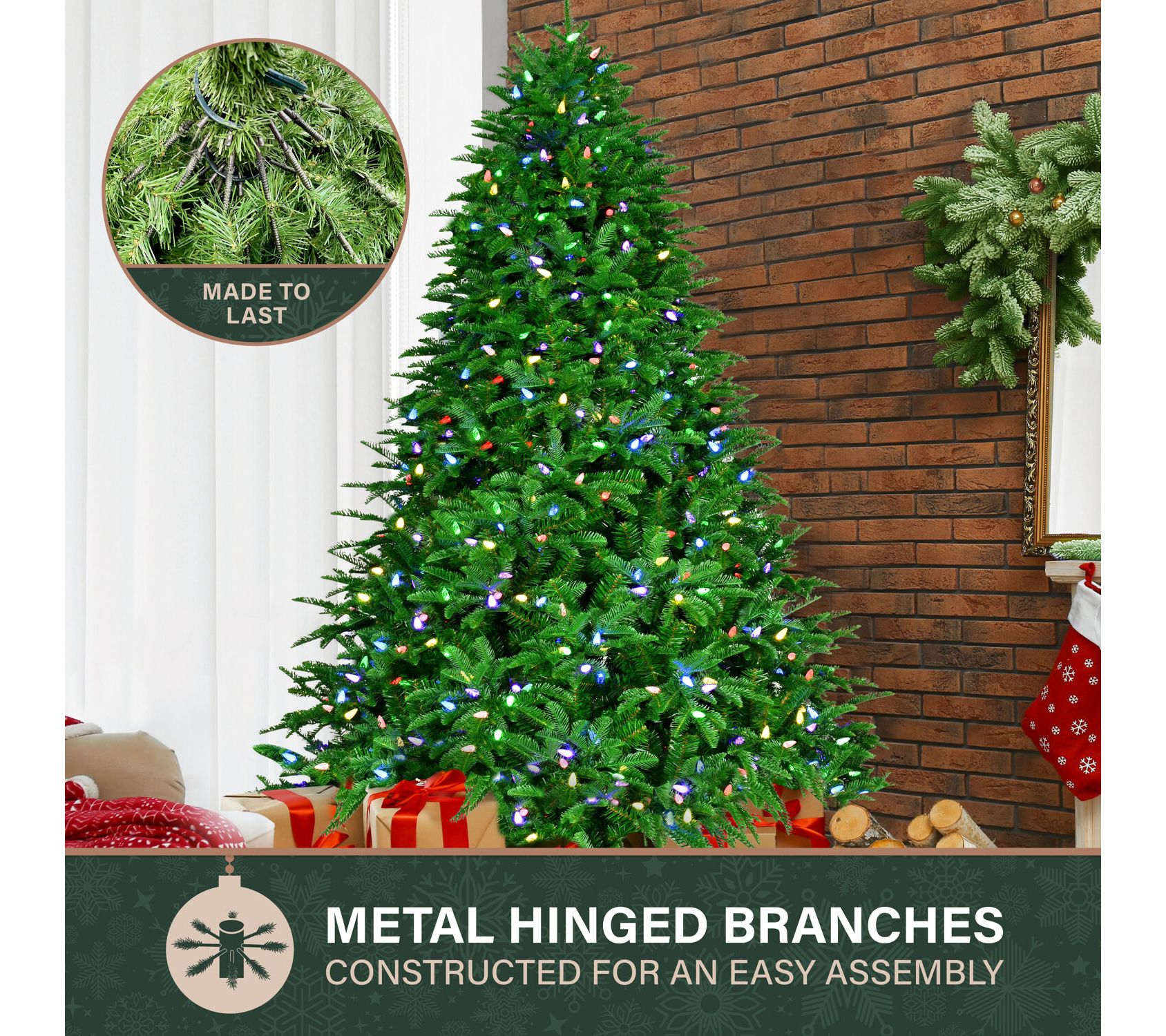 Make your holiday season magical with the Fraser Hill Farm 7.5-ft. Jingle Pine Christmas Tree. With lifelike foliage and multicolor LED lights prestrung throughout its branches, this tree brings the beauty of a natural pine with minimal effort. The convenient EZ Connect feature and included remote make setup and light control a joy. From Fraser Hill Farm.