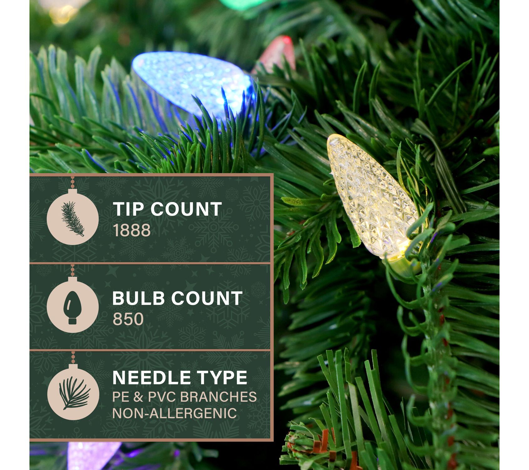 • Prestrung with multicolor C6 LED lights
