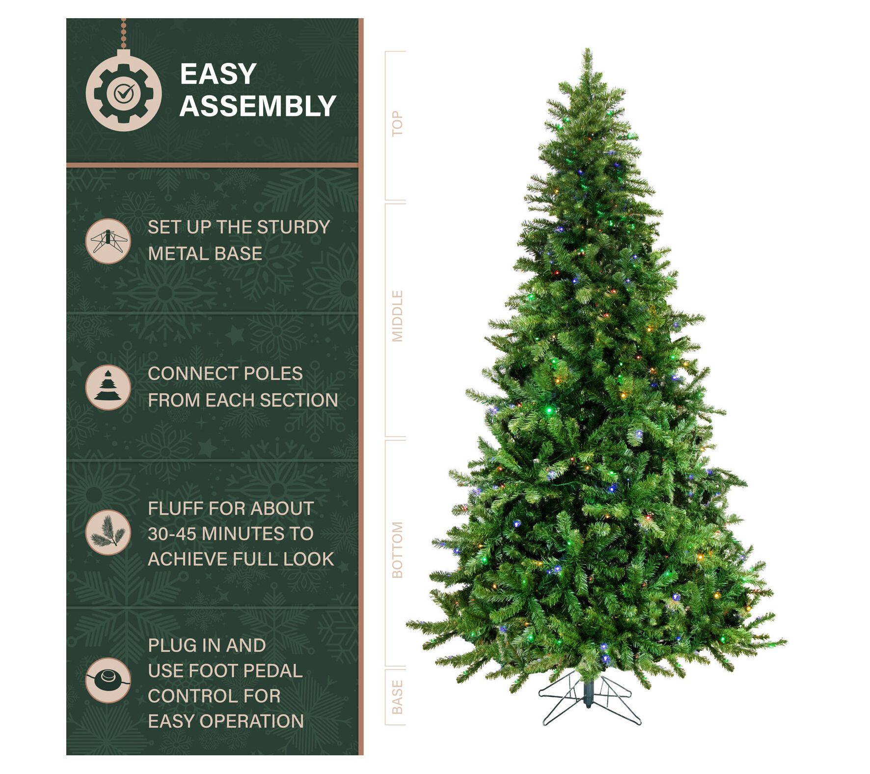 Fraser Hill Farm's 7.5-ft. Noel Pine artificial Christmas tree brings lifelike foliage and effortless holiday charm to your home. Enjoy the ease of pre-lit, color-changing LED lights with 10 unique functions and an included foot pedal for simple operation. With non-allergenic, flame-retardant needles painted to perfection, this tree looks beautifully natural and requires minimal upkeep. From Fraser Hill Farm.