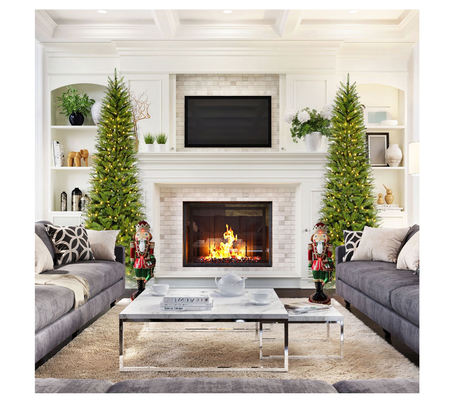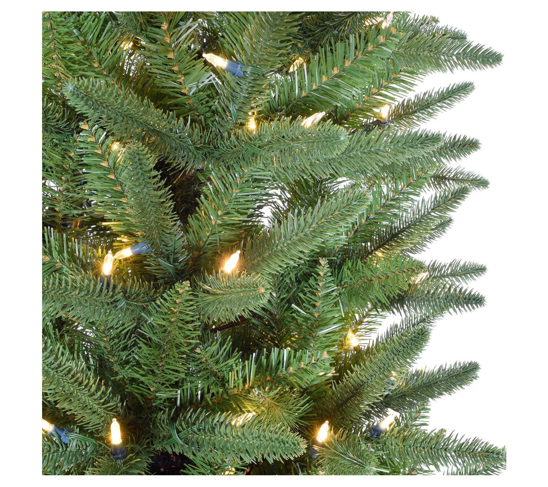 Finding the perfect spot for your holiday centerpiece just got easier with this slender silhouette. This Winter Falls pine offers lifelike foliage that stands tall, illuminating your festivities with warmly glowing LEDs. Think of the holidays now hassle-free -- no needle-dropping trees or tangled lights. Enjoy the magic as its smart design ensures everything locks safely into place. Now, every year is a chance to celebrate in style and simplicity. From Fraser Hill Farm.