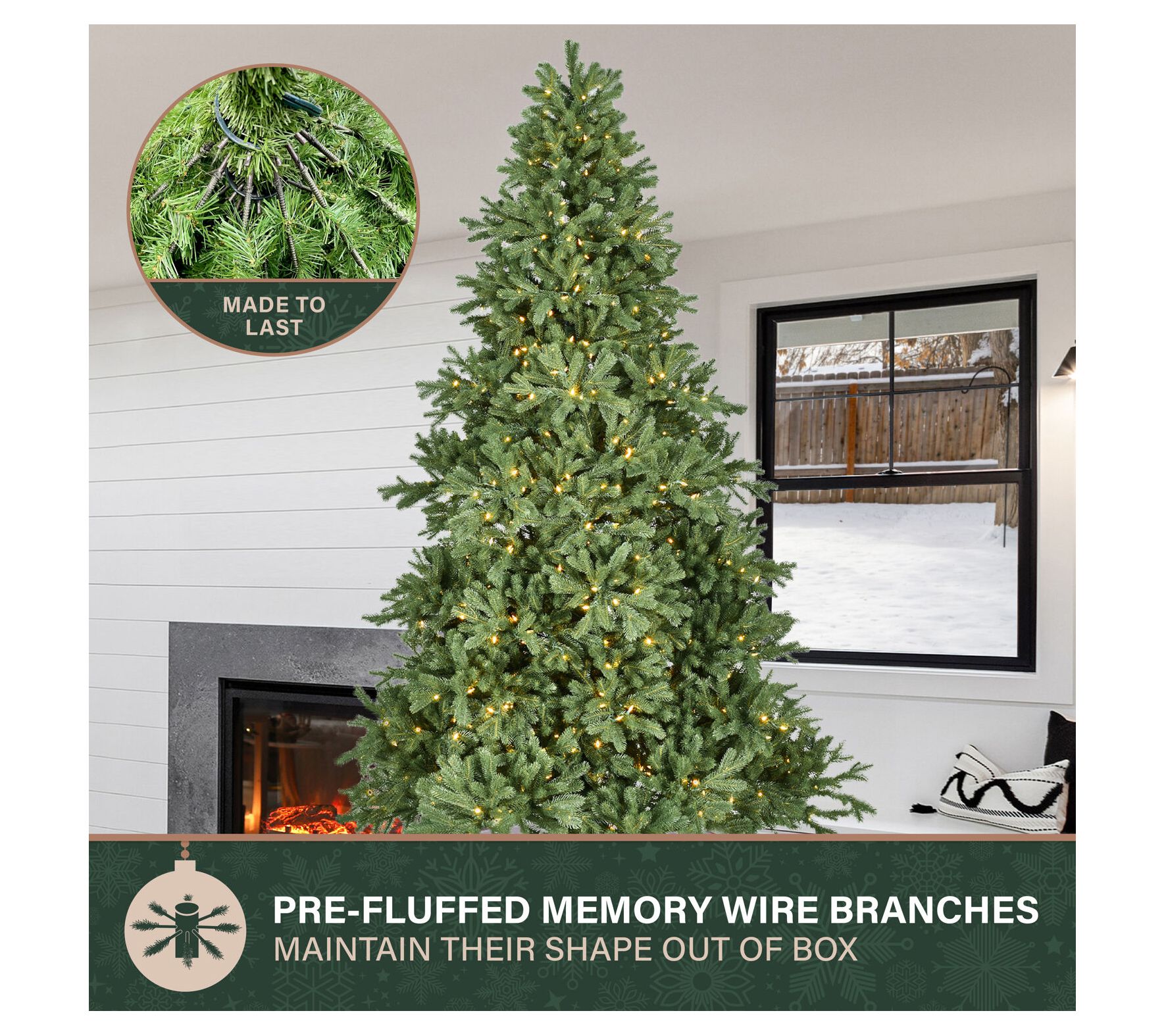Transform your holiday decor with the Fraser Hill Farm Asheville Pine artificial Christmas tree. Its lifelike foliage, warm white LED lights with eight functions, and special memory wire branches create a festive and natural look while being low maintenance. Set it up with ease thanks to the EZ Connect feature and enjoy long-term benefits with this beautiful tree. From Fraser Hill Farm.