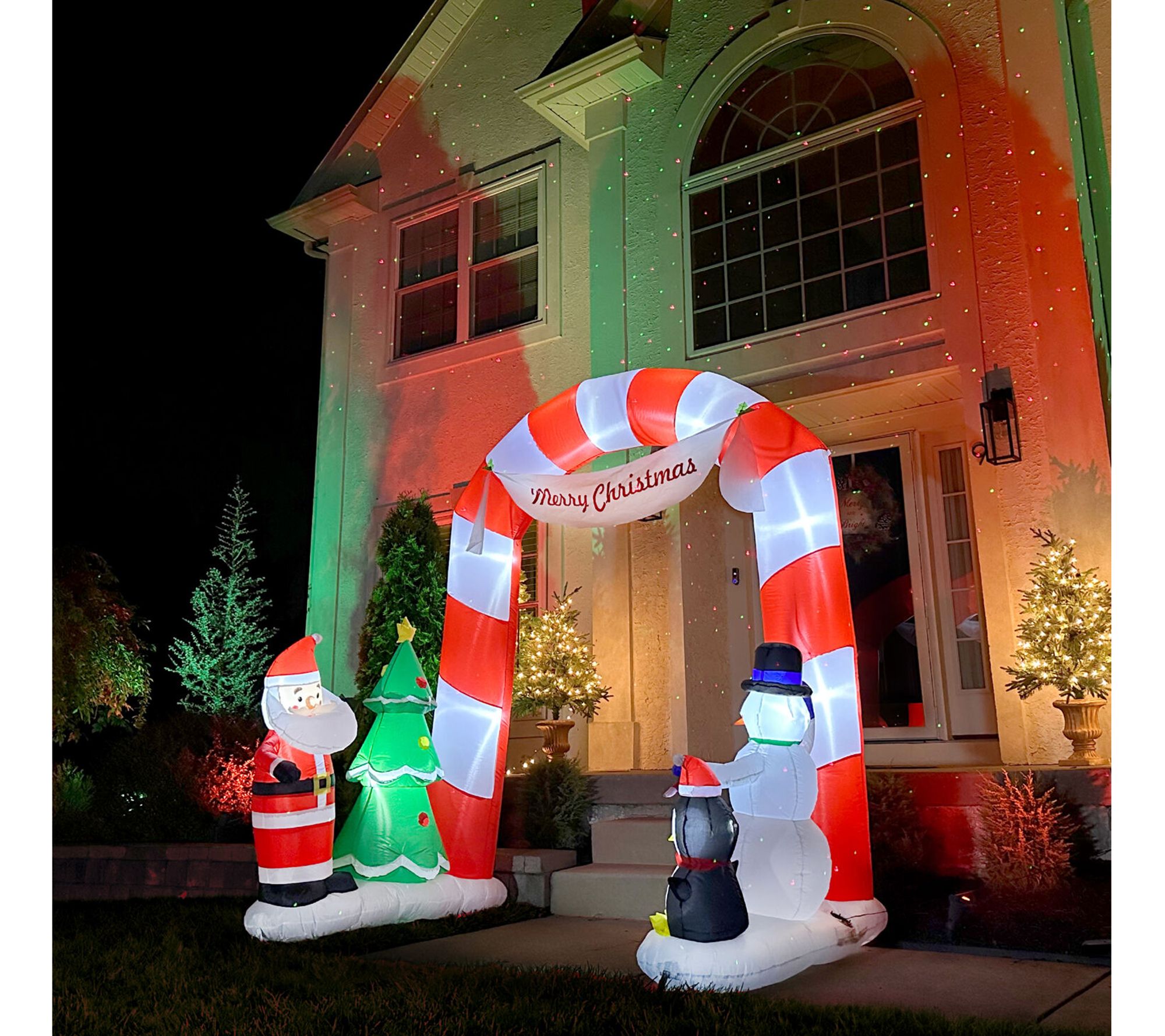 Transform your holiday landscape into a whimsical winter wonderland with the Fraser Hill Farm 8' Tall Prelit Candy Cane Arch Inflatable. This captivating inflatable archway, adorned with 10 internal white LED lights, creates a magical entryway that will delight guests and passersby alike, making your outdoor space the highlight of the neighborhood. From Fraser Hill Farm.