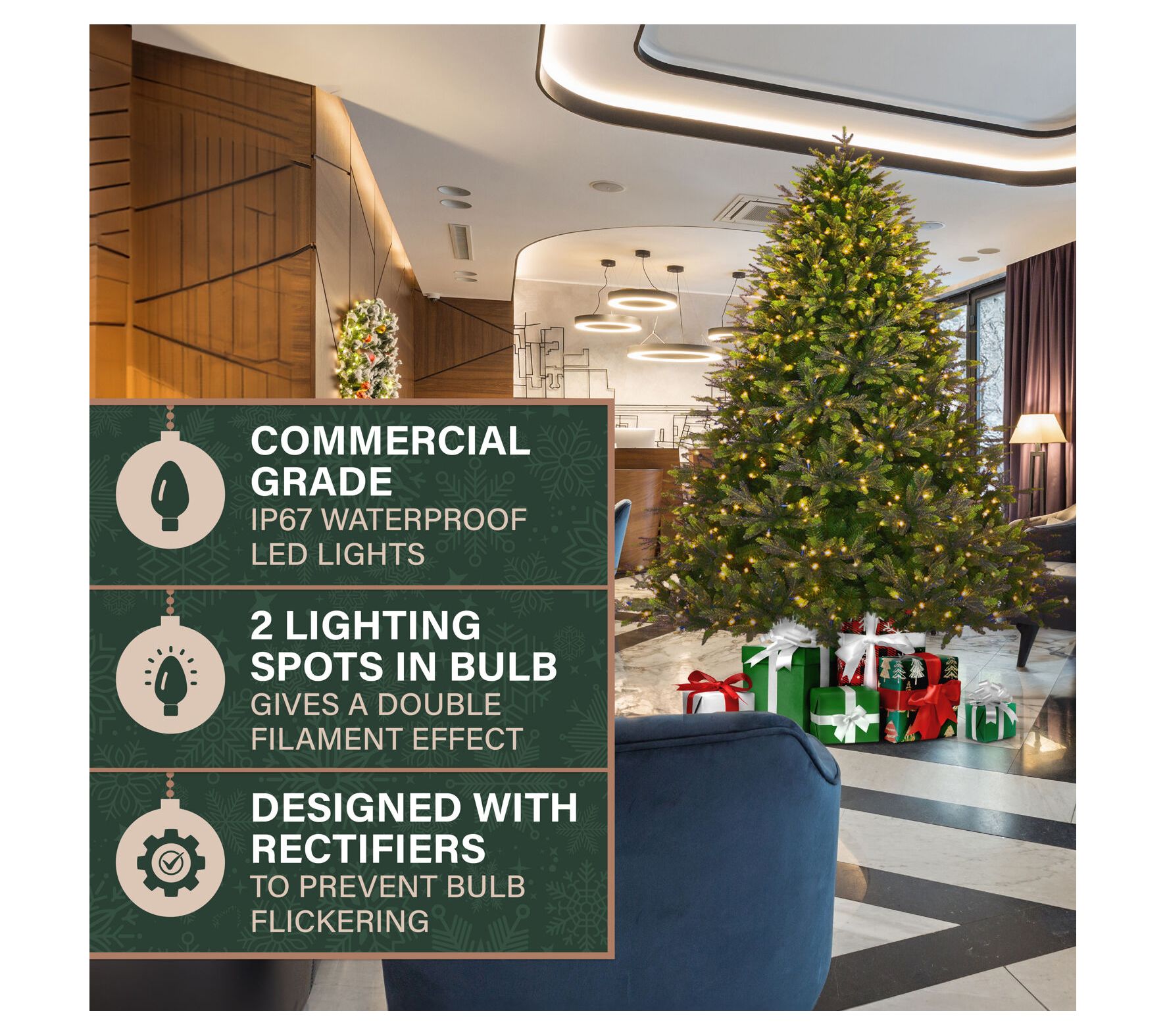 • Pre-lit with 1,050 LED lights