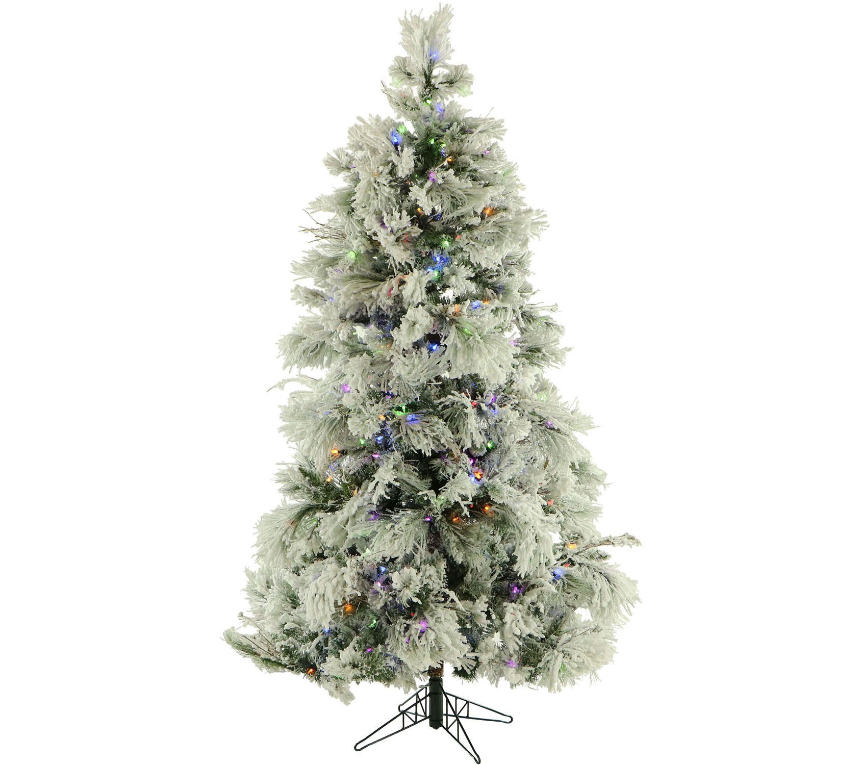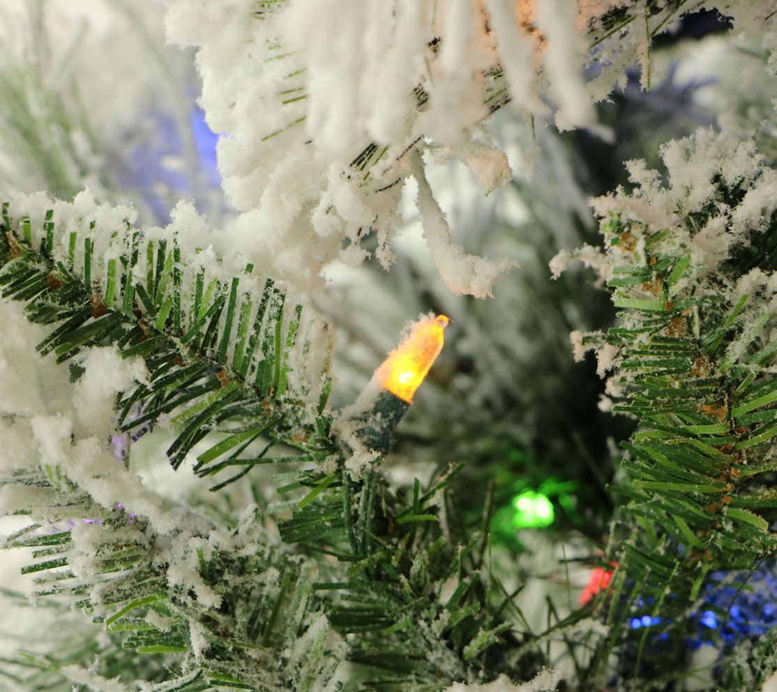 This exquisite Christmas tree has an inviting look with heavily flocked branches and festive multi-colored LED lights. From Fraser Hill Farm.