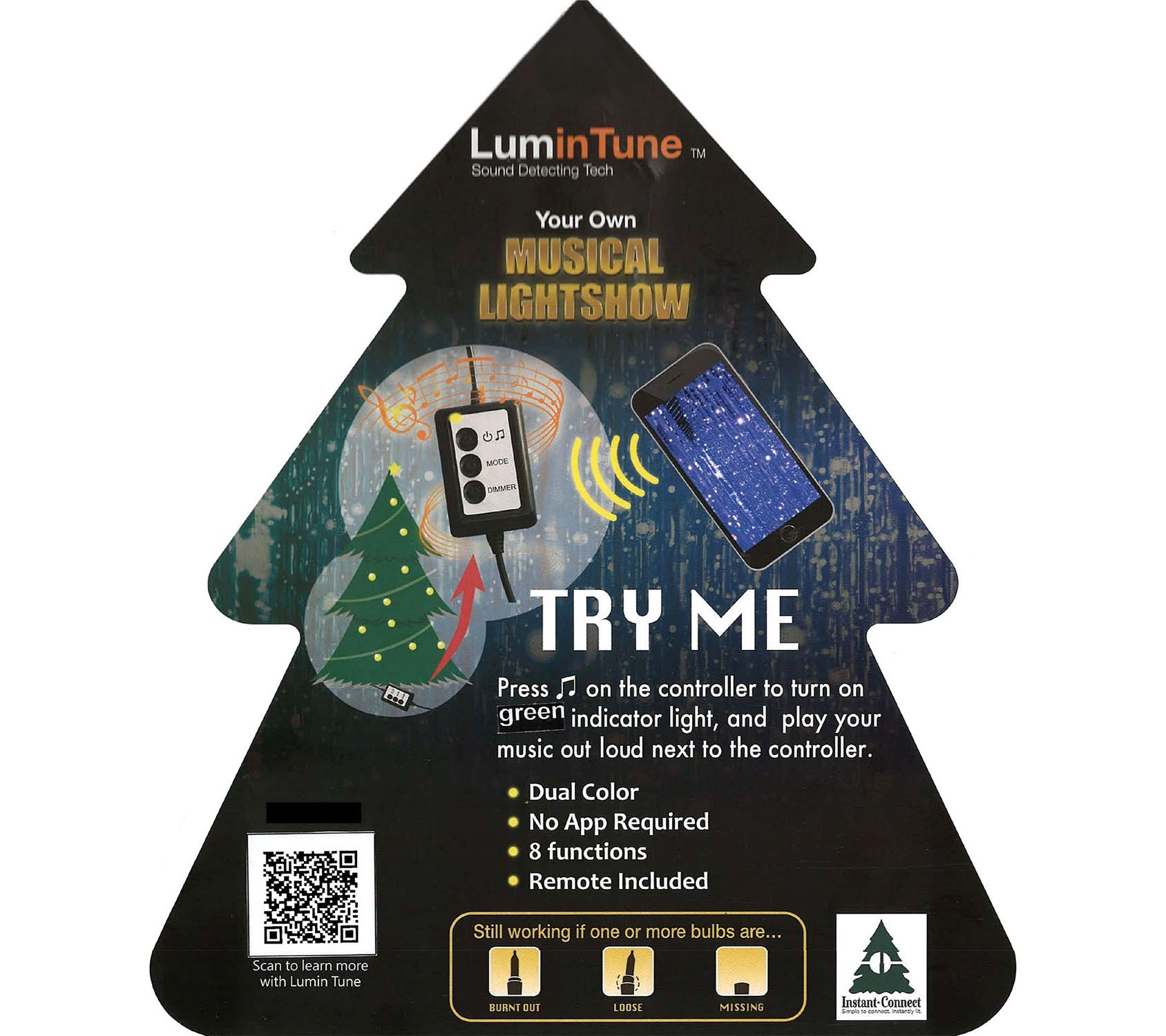 • Includes tree, metal stand, and remote control with 2 A23 12V batteries