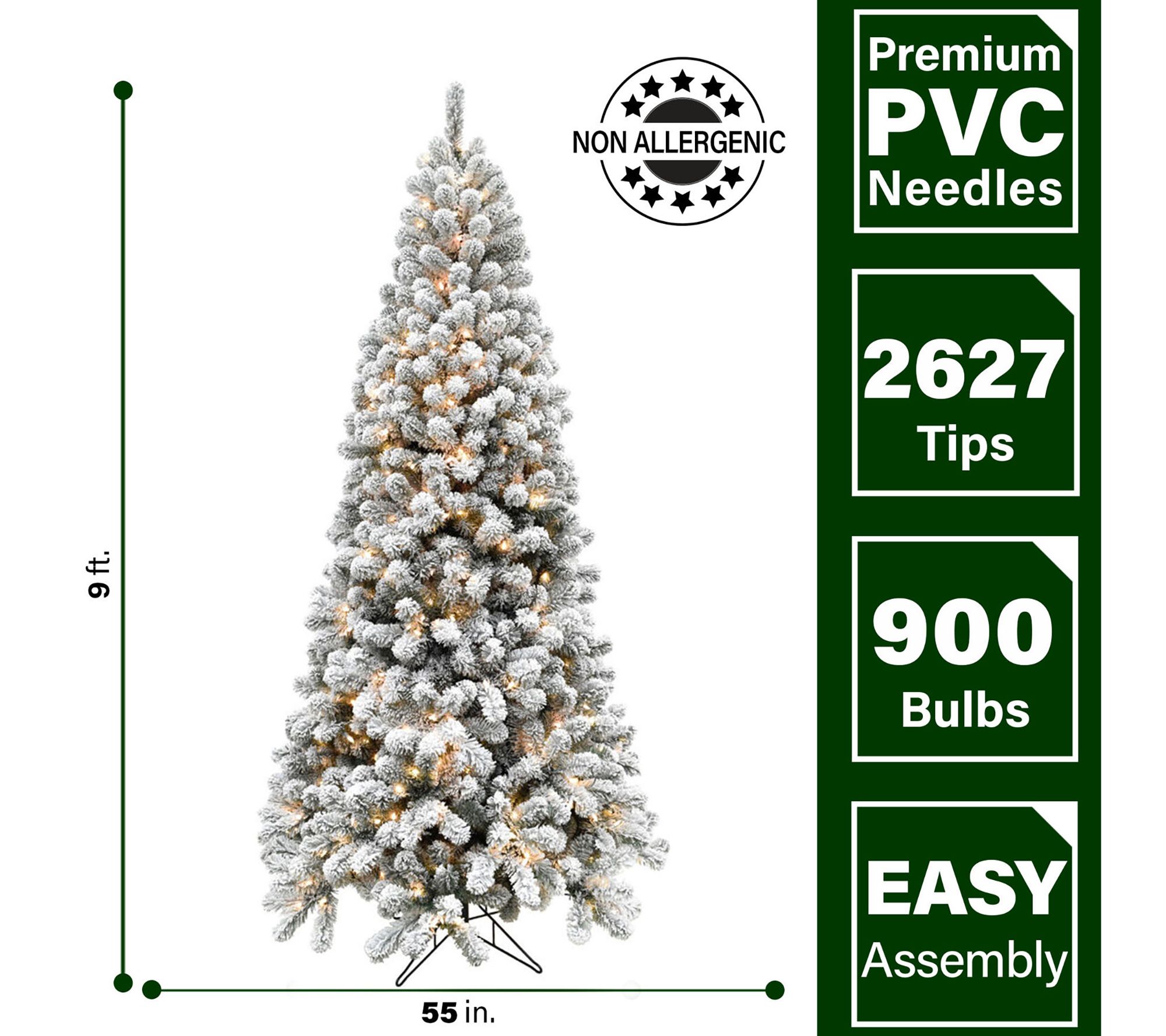 Fraser Hill Farm 9-Ft. Flocked Alaskan Pine Christmas Tree wit