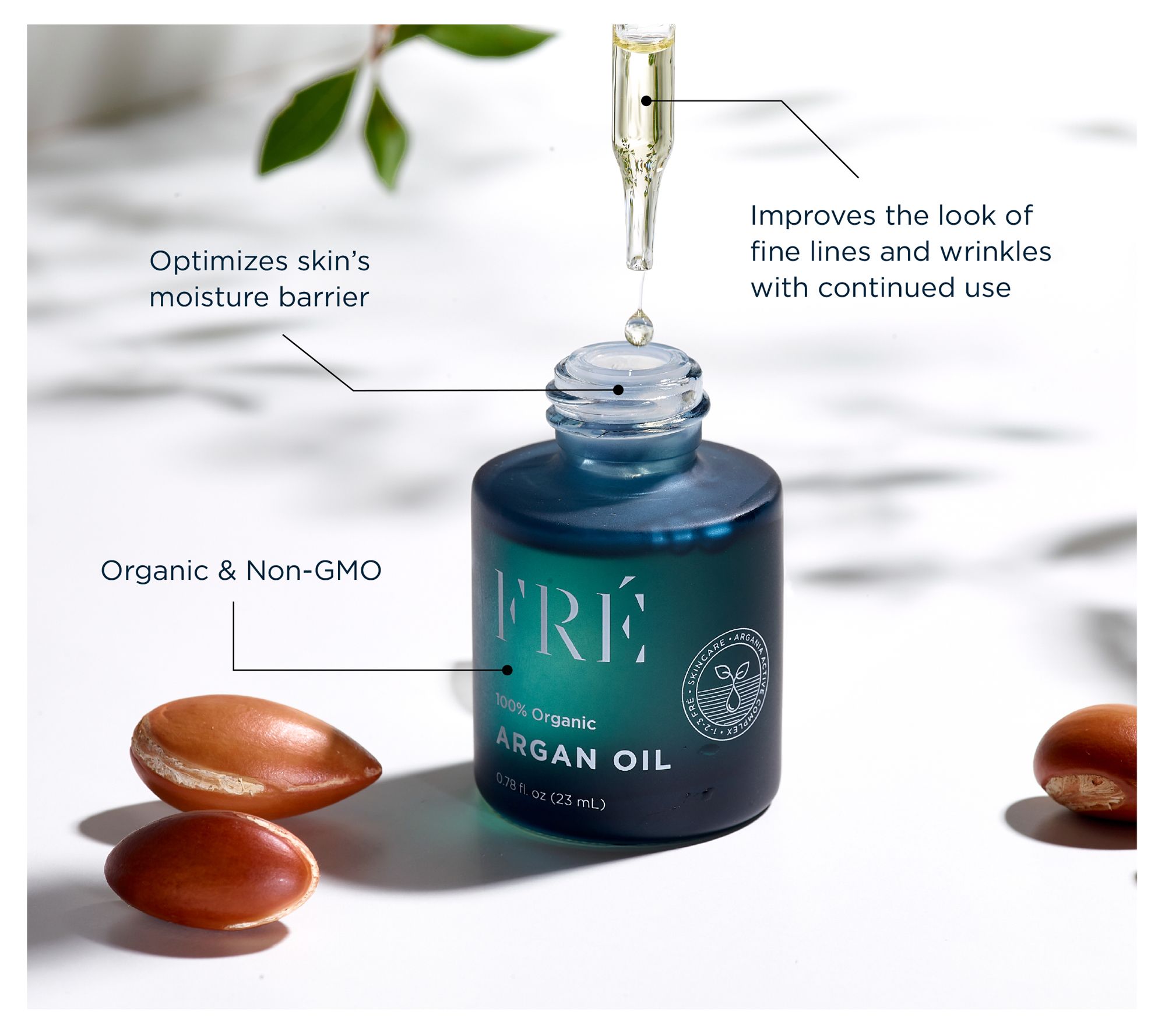 This duo of organic, non-GMO Argan Oil from FRE is a full-body multitasker. Argan Oil helps intensely moisturize to temporarily plump the appearance of skin, improves the look of fine lines and wrinkles with continued use, and optimizes skin's moisture barrier to help prevent against trans-epidermal water loss. Argan Oil temporarily moisturizes to help repair dry hair and improve the look of hair shine.