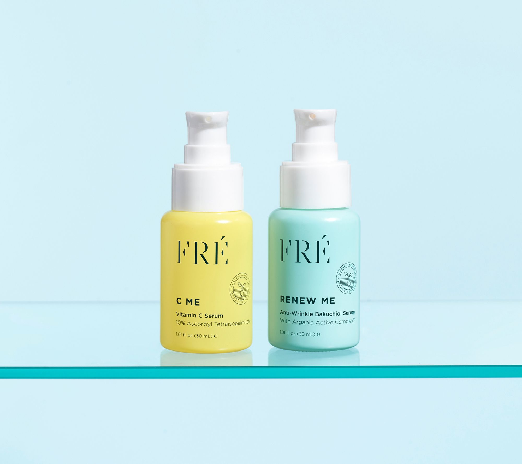 This set from FRE is the perfect routine for improving the appearance of fine lines, wrinkles, uneven skin tone, and rough texture temporarily and with continued use. C Me Serum is a dermatologist-tested, concentrated waterless formula that helps brighten the look of uneven skin tone and improves the look of skin texture, fine lines, and wrinkles temporarily and with continued use. It's formulated with ascorbyl tetraisopalmitate, a form of vitamin C, which can optimize skin's own natural collagen levels. According to studies in the European Journal of Pharmaceutics and the Journal of Cellular Biochemistry, ascorbyl tetraisopalmitate, a stable form of vitamin C, penetrates the skin's upper layers for better absorption than ascorbic acid.