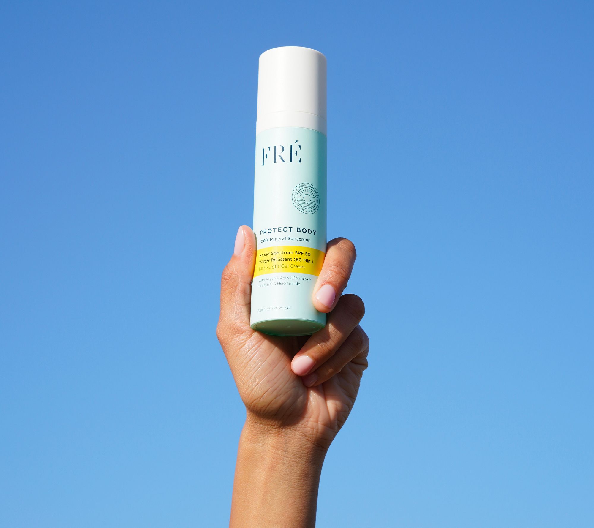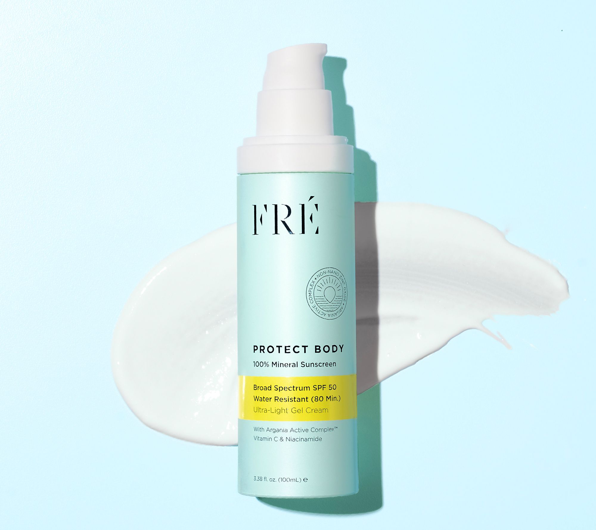 The future of mineral sunscreen is here. Unlike most heavy and chalky mineral body sunscreens, FRE Protect Body’s unique gel-to-cream texture absorbs like a serum -- no greasiness and no white cast.