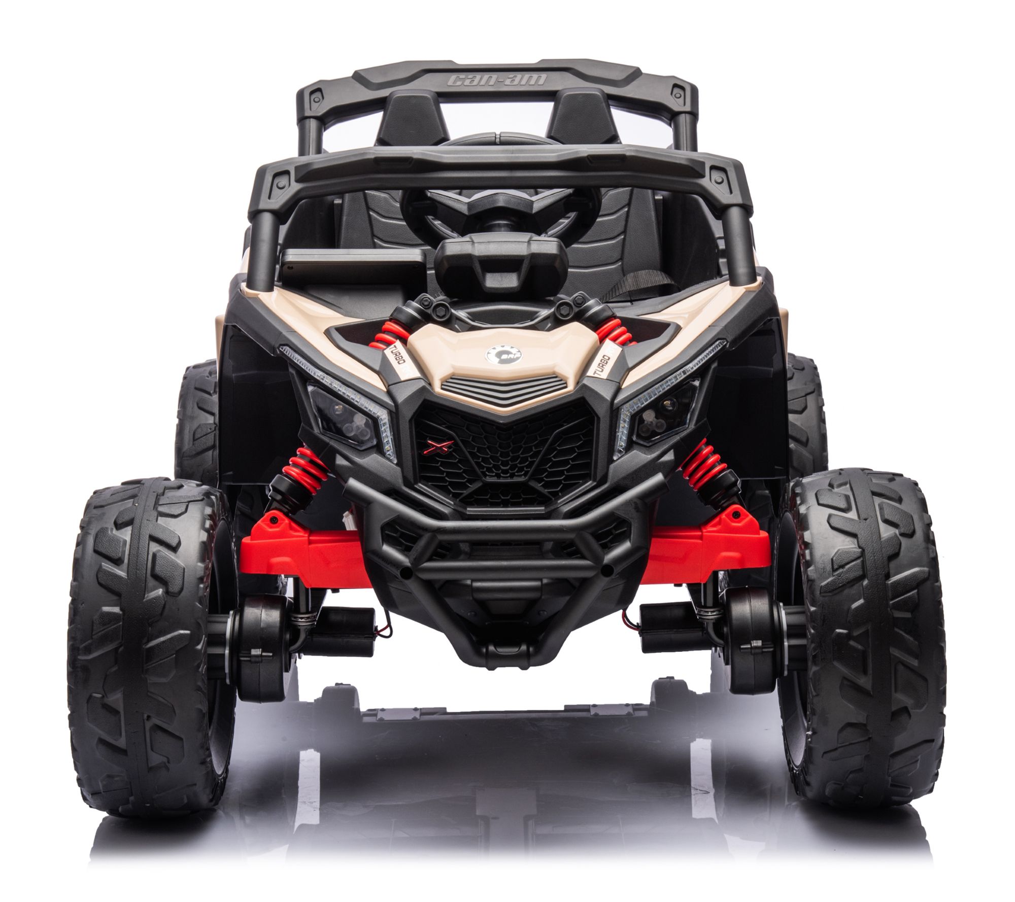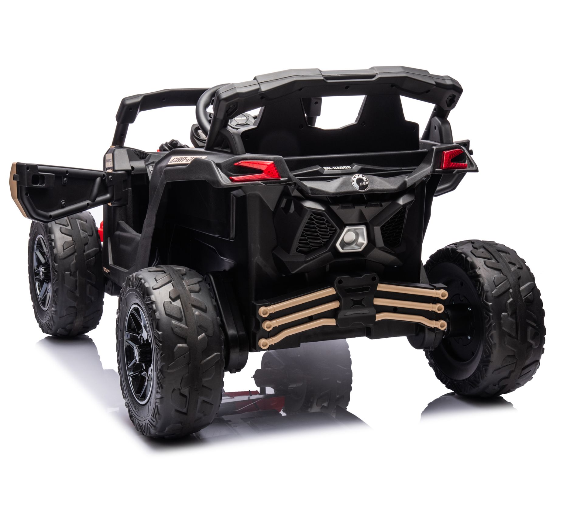 Embark on thrilling adventures with the Freddo 24V Can Am Maverick 1 Seater UTV Kids Electric Ride-On. Designed to deliver a realistic UTV experience for kids aged 3 to 8 years, this electric ride-on features a comfortable leather seat with a two-point harness for safety, bright LED lights for visibility, and an entertainment system complete with MP3/AUX, USB, Bluetooth, and a built-in radio. With four powerful 200W motors and a manual speed switch, it offers up to 50 minutes of ride time on various terrains. From Freddo.