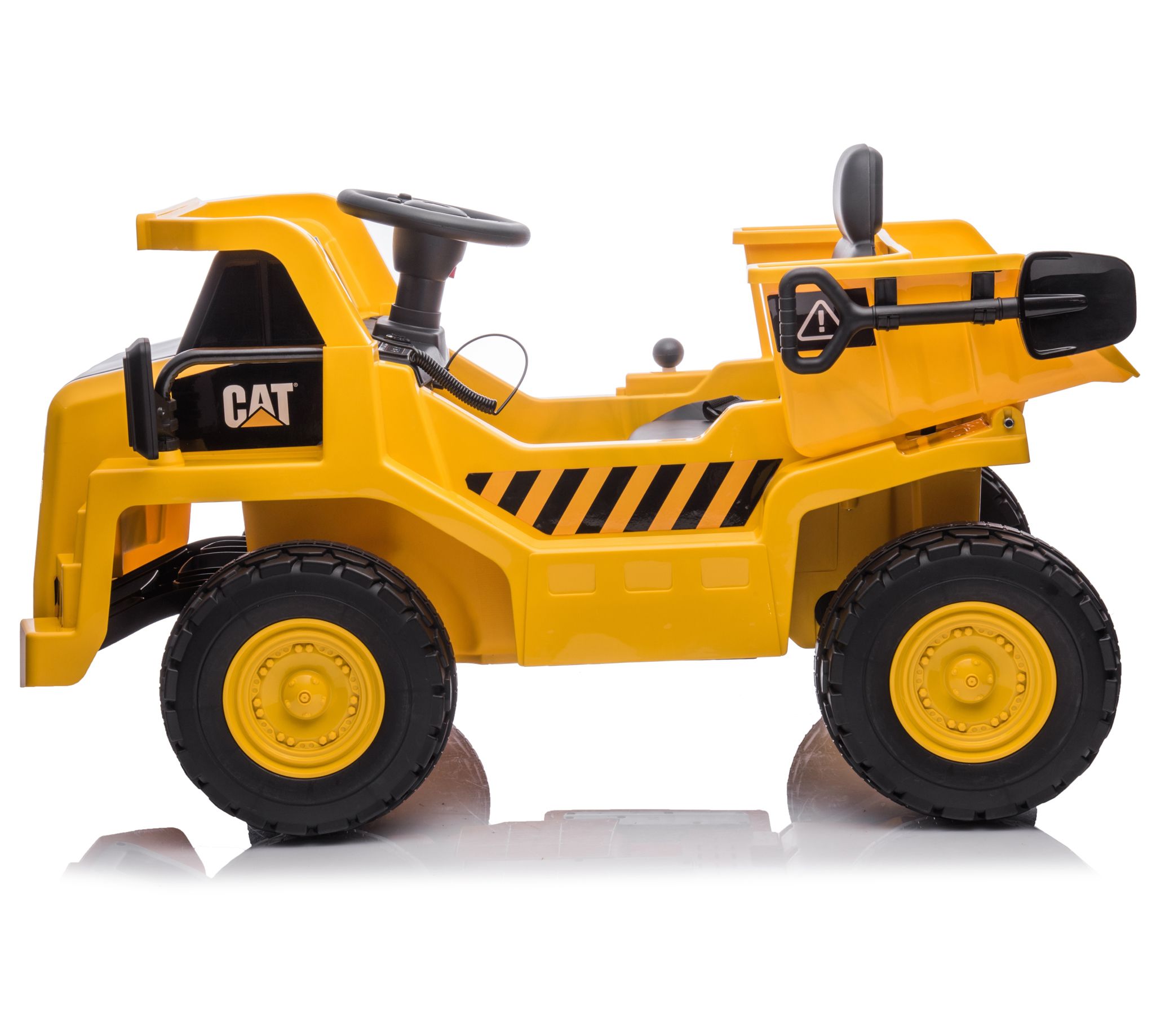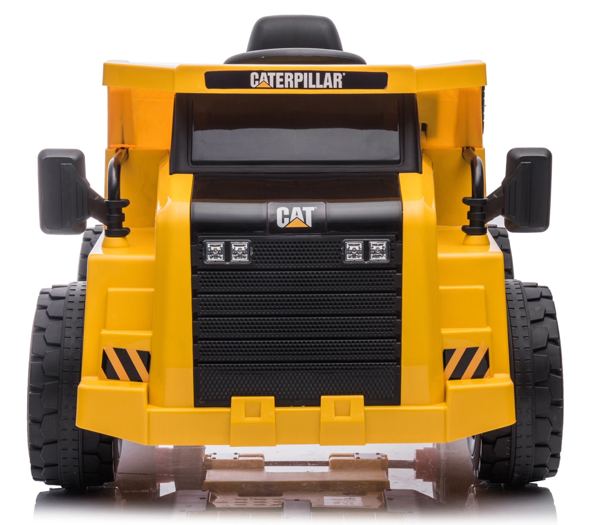 Fuel your child's imagination with this CAT 12V ride-on dump truck. Perfect for busy little workers, this authentic-looking dump truck features a powerful 30W motor, realistic engine sounds, and functional headlights. Plus, the built-in MP3 input and USB port add a musical touch to playtime, while the spring suspension system ensures a smooth ride. From Freddo.