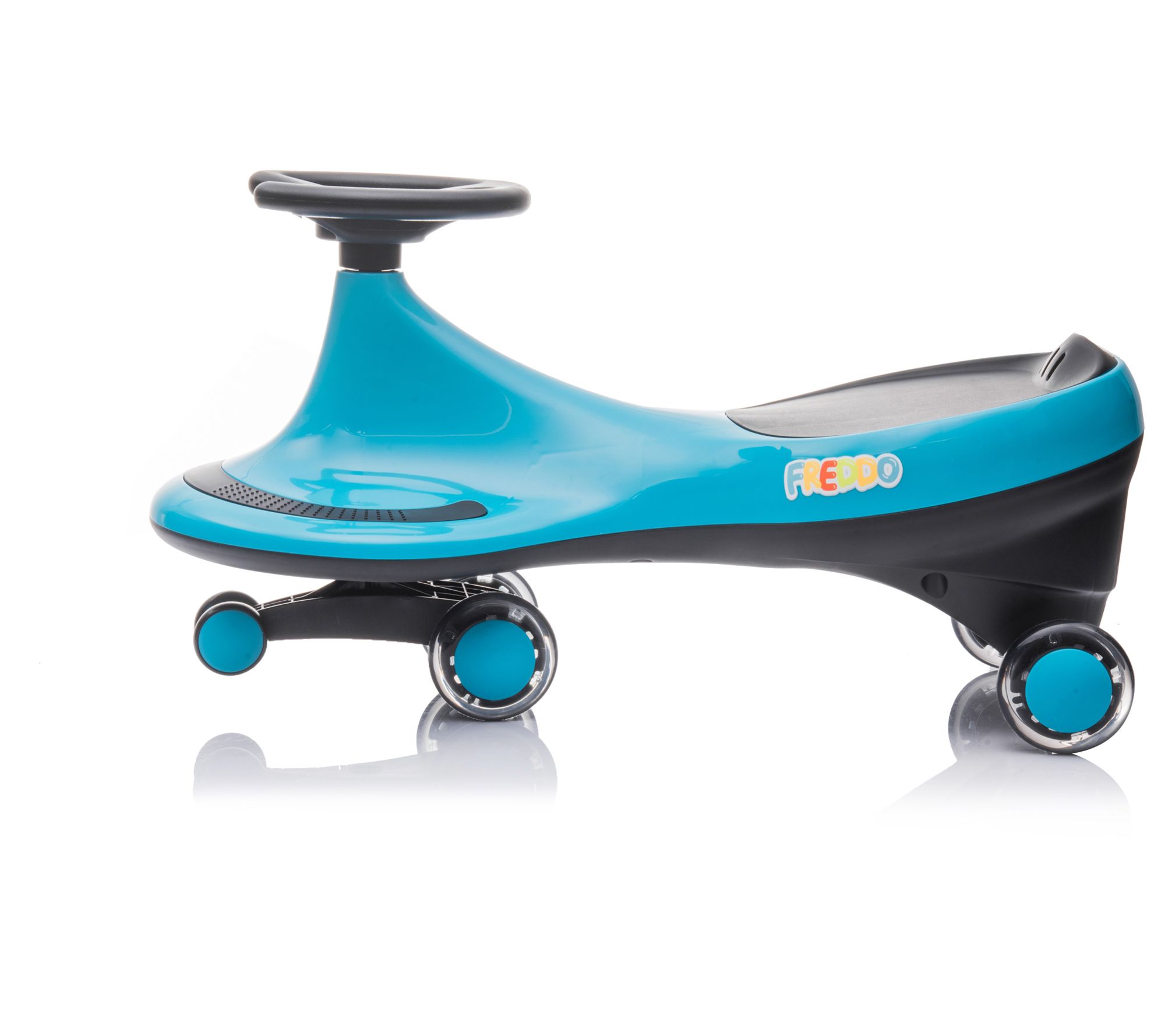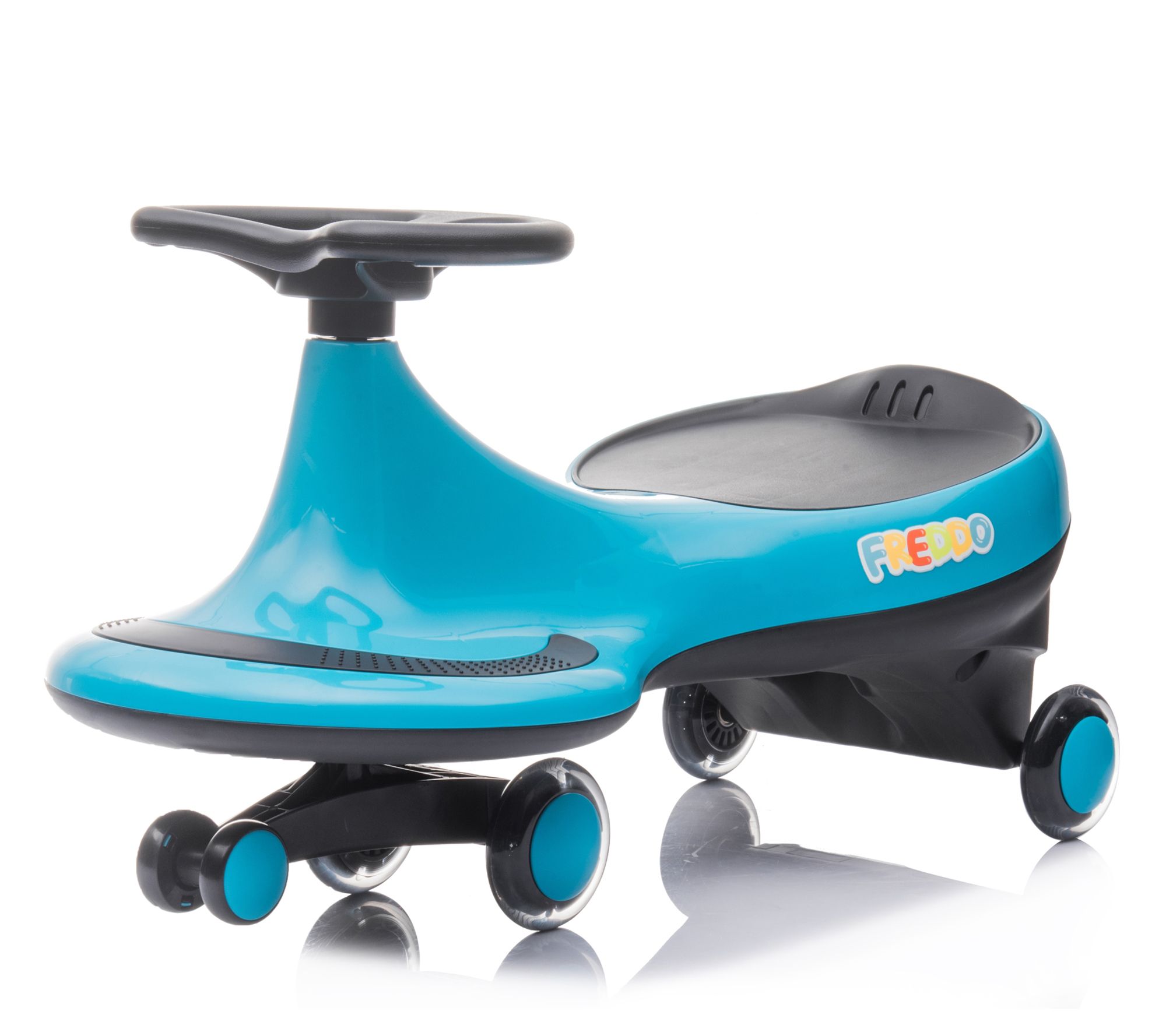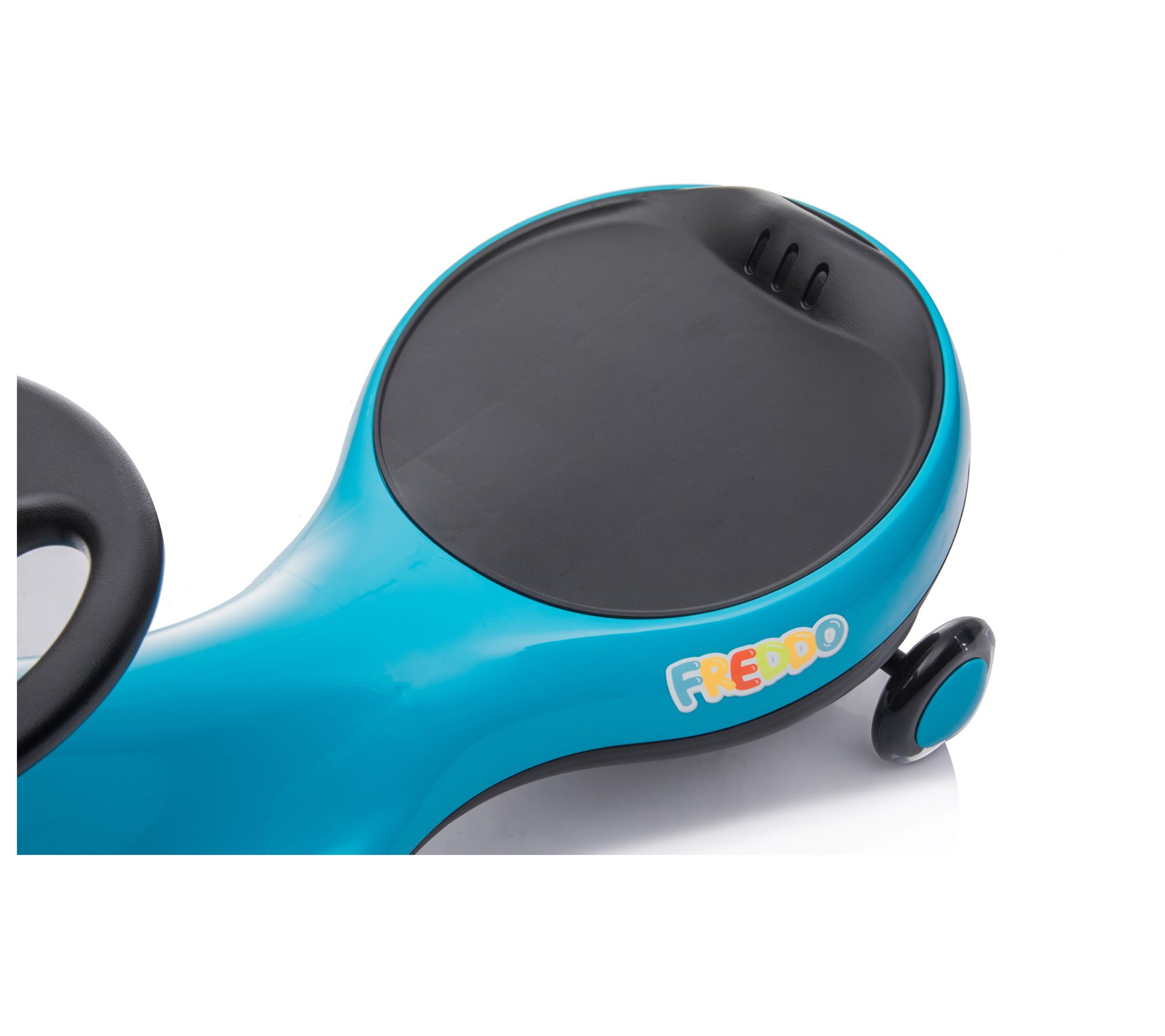 No batteries, gears or pedals. Freddo Swing Car is kid friendly and kid approved. A sleek design with a safety seat by Freddo is great forchildren 3 years and up, and it's easy to use - just prop your feet upon the footrests and turn the steering wheel to get moving. The maximumspeed is 10 km/h and can be used both indoors and outdoors. It holdsup to 110 lbs. and meets US, Canadian and European quality and safetystandards. Features One of the first features that catches the eye isits design. This fun and original toy has organic shapes that adapt;Sw;S;Swing Car