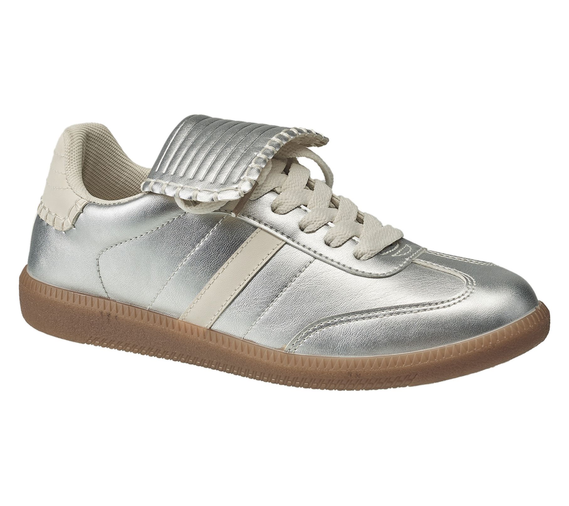 • Oversized tongue, lace-up design