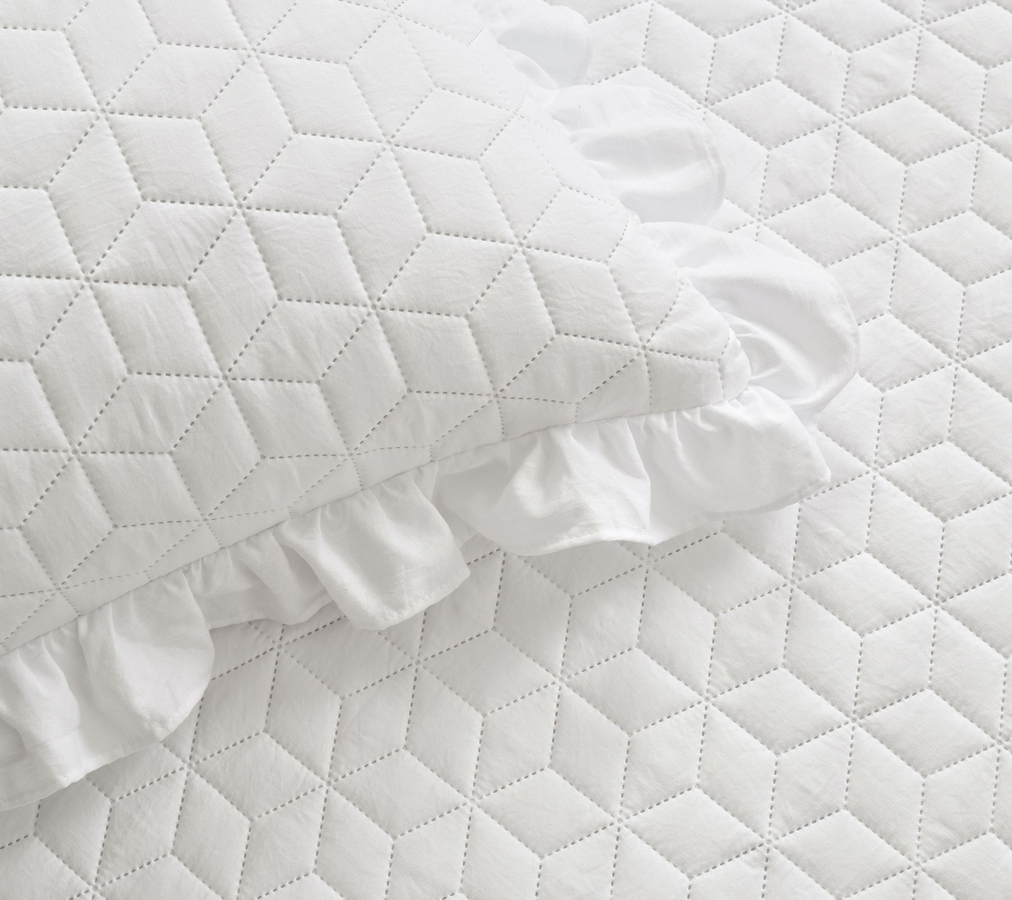 Refresh your bedroom with this bedspread set featuring an embossed geometric quilting detail and fitted ruffle skirt that kisses the floor. From Lush Decor.